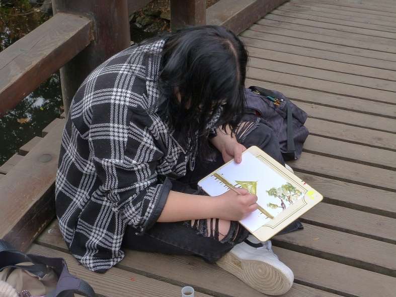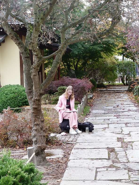 W planie wycieczki nalazła się również plener rysunkowo-malarski w Ogrodzie Japońskim, wyjątkowo pięknym o tej porze roku. Podczas pleneru powstały pracę w technice akwareli oraz łączące rysunek cienkopisem z lawunkiem akwarelowym.