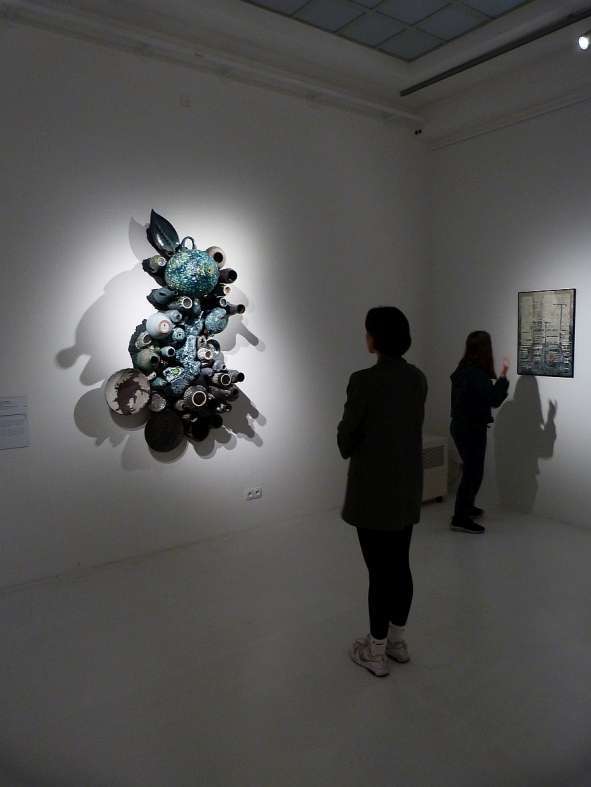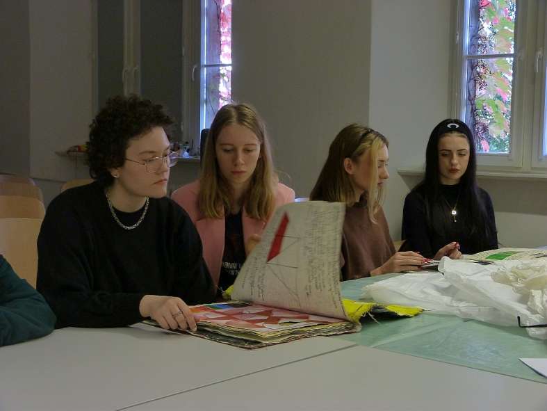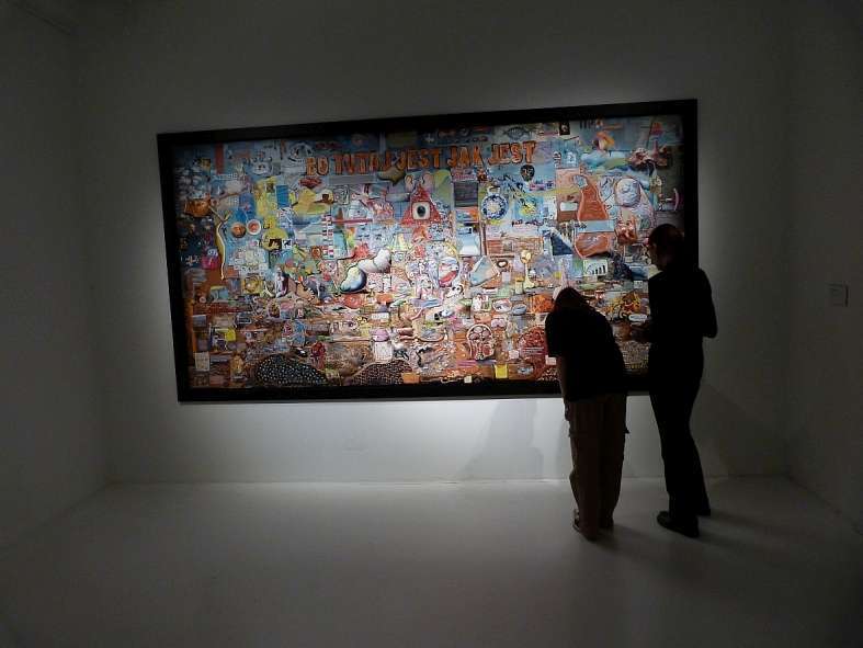 Ostatnim punktem programu była wizyta w Pawilonie Czterech Kopuł, oddziale Muzeum Narodowego, w którym prezentowane są zbiory polskiej sztuki współczesnej XX- wieku oraz wystawy czasowe. Obejrzeliśmy tam stałą kolekcję prezentującą najważniejsze trendy w sztuce polskiej do lat 80-tych XX wieku oraz wystawę czasową “Collage – klejone światy” przedstawiającą różne przykłady dzieł z wykorzystaniem techniki kolażu. Wśród prezentowanych prac znalazły się kolaże Kurta Schwitersa, Kazimierza Mikulskiego, Mariana Warzechy, ale również wyklejanki noblistki Wisławy Szymborskiej.