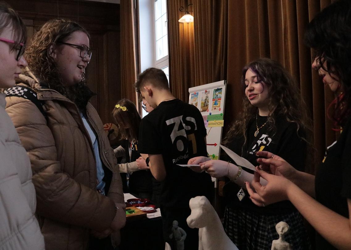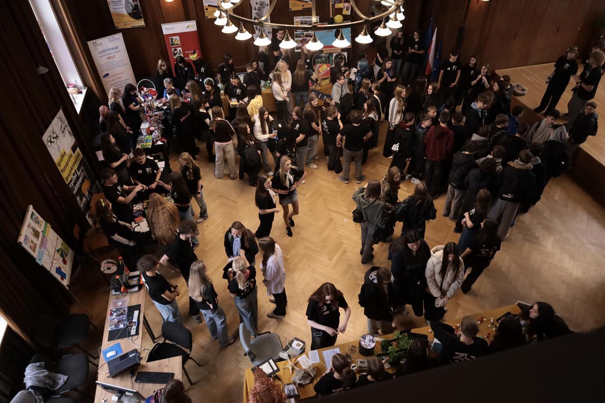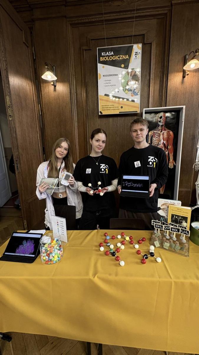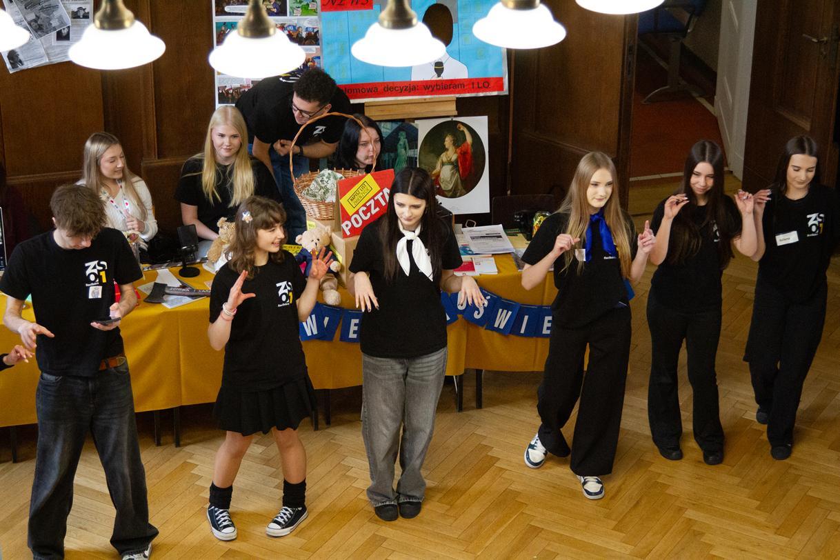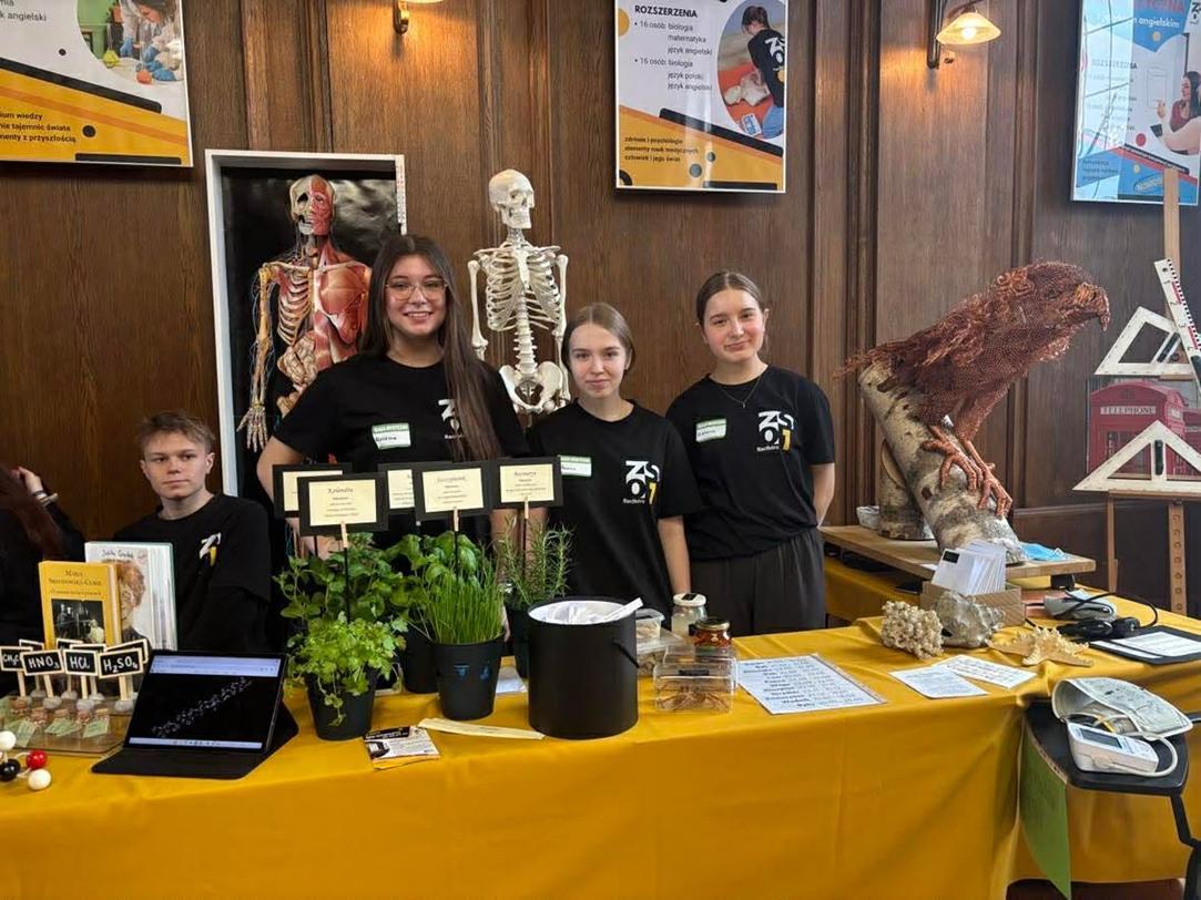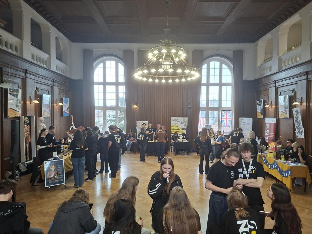 Przez dwa dni (25 i 26 marca 2026) staraliśmy się wielkim nakładem pracy i zaangażowania zachęcić ich do podjęcia nauki w naszej szkole. Wymyśliliśmy dla nich wiele atrakcji. Był turniej Rummikuba, pokazy brył obrotowych i siatek wielościanów, programowanie robotów z klocków Lego, lądowanie na planecie z Małym Księciem, a także gry i zabawy językowe. Kroiliśmy oko, badaliśmy stan gleby, wody i powietrza w Zielonej Pracowni, szkoliliśmy w pierwszej pomocy przedmedycznej, tańczyliśmy w rytmie Just dance. Była też wirtualna podróż śladem naszych dotychczasowych wycieczek i projektów Erasmus oraz matematyka po angielsku. Mieliśmy wrażenie, że kandydaci do I LO naprawdę dobrze się bawili.