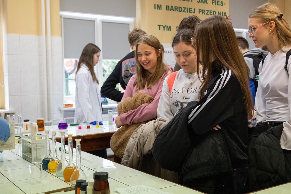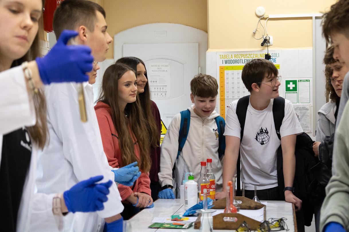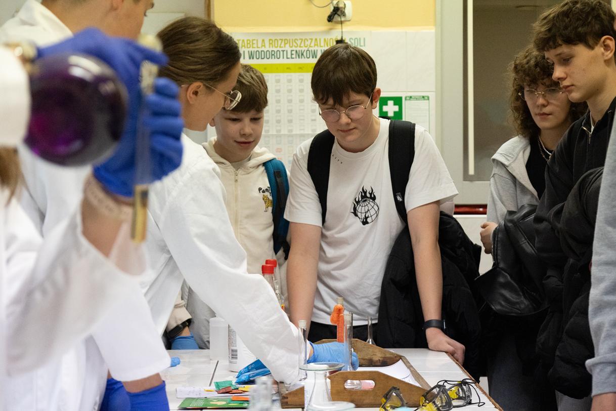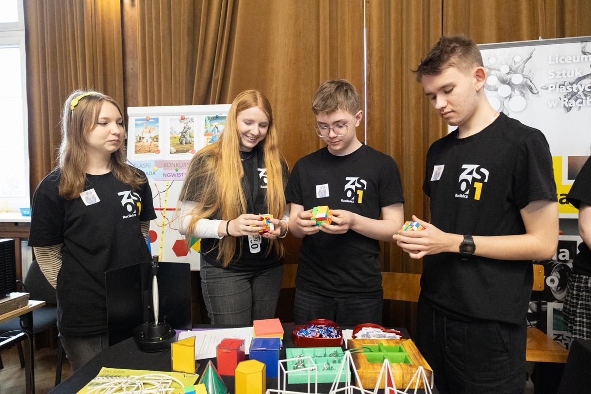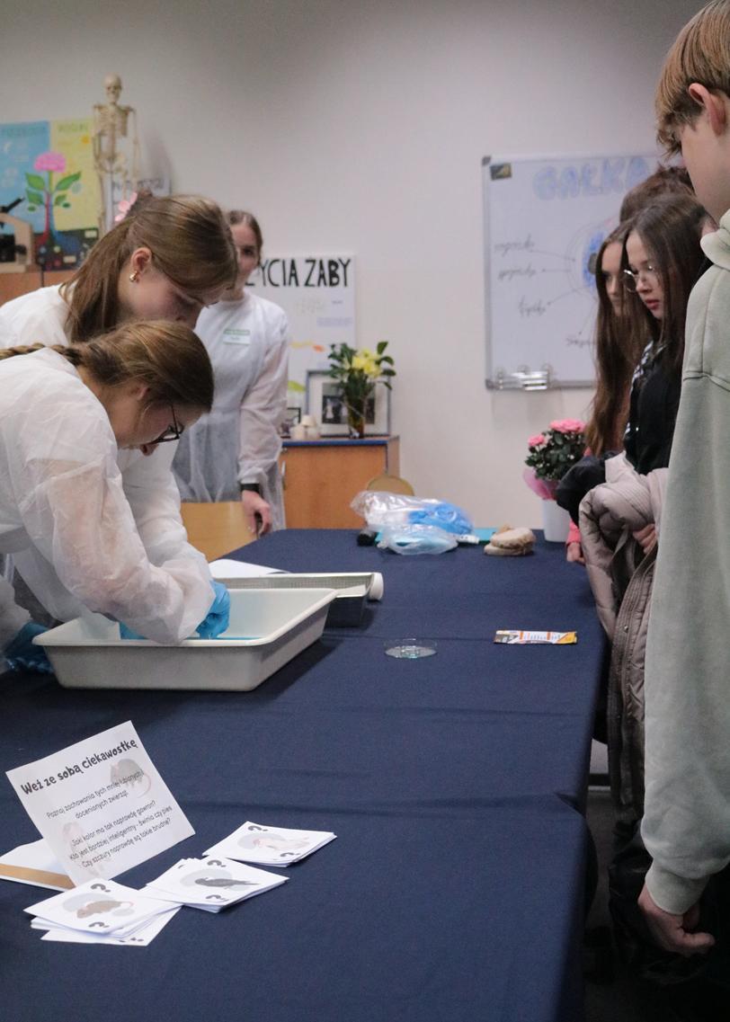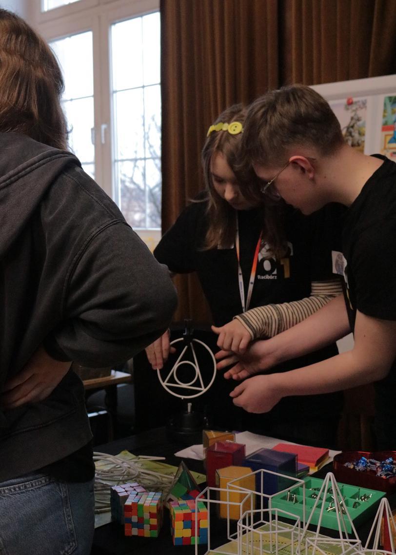 Przez dwa dni (25 i 26 marca 2026) staraliśmy się wielkim nakładem pracy i zaangażowania zachęcić ich do podjęcia nauki w naszej szkole. Wymyśliliśmy dla nich wiele atrakcji. Był turniej Rummikuba, pokazy brył obrotowych i siatek wielościanów, programowanie robotów z klocków Lego, lądowanie na planecie z Małym Księciem, a także gry i zabawy językowe. Kroiliśmy oko, badaliśmy stan gleby, wody i powietrza w Zielonej Pracowni, szkoliliśmy w pierwszej pomocy przedmedycznej, tańczyliśmy w rytmie Just dance. Była też wirtualna podróż śladem naszych dotychczasowych wycieczek i projektów Erasmus oraz matematyka po angielsku. Mieliśmy wrażenie, że kandydaci do I LO naprawdę dobrze się bawili.