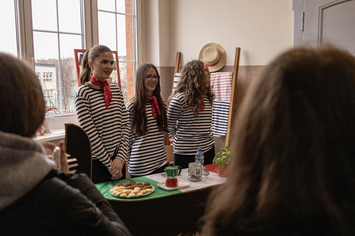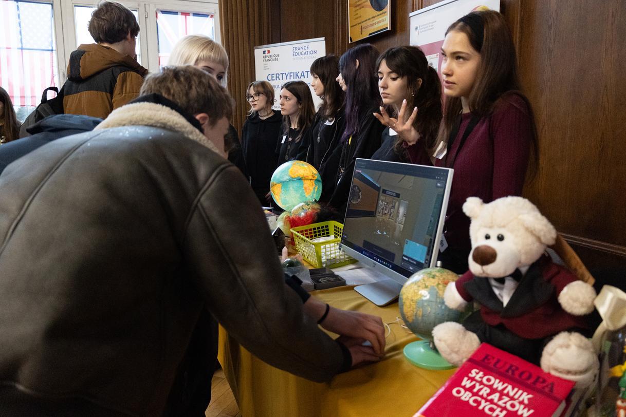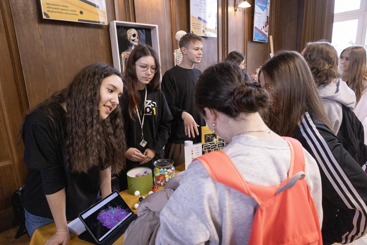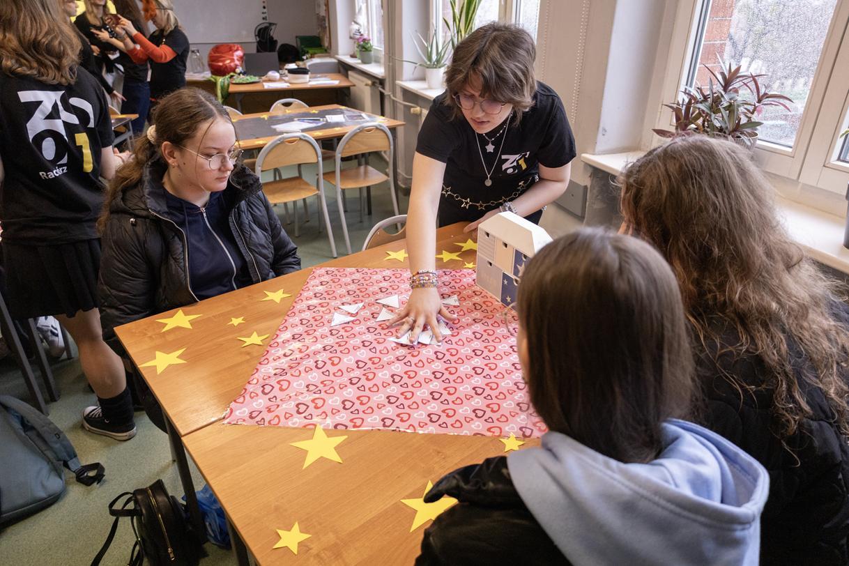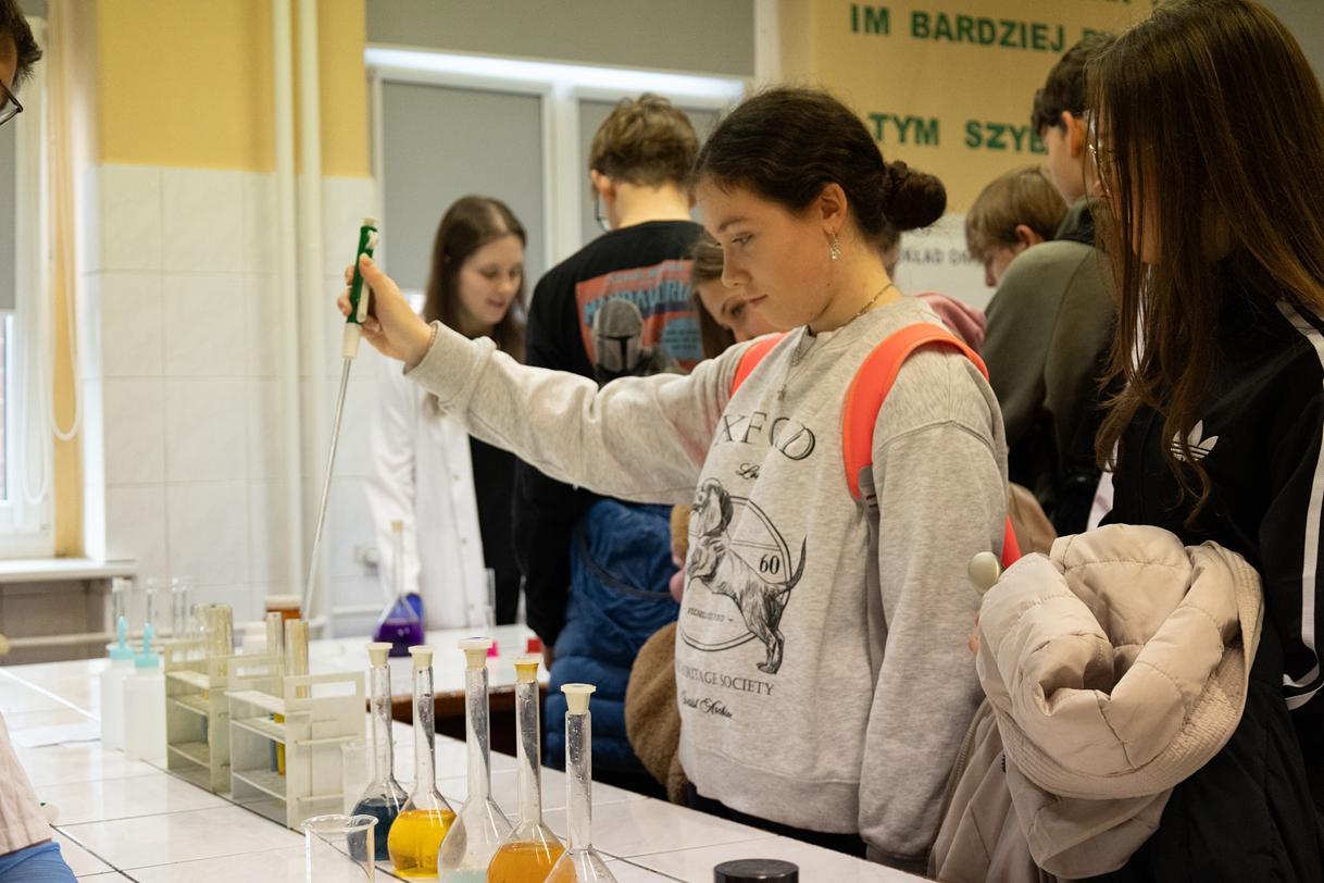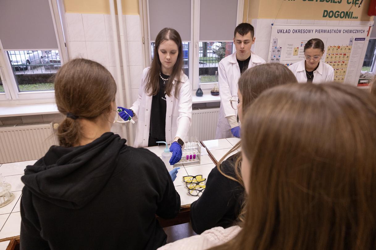 Przez dwa dni (25 i 26 marca 2026) staraliśmy się wielkim nakładem pracy i zaangażowania zachęcić ich do podjęcia nauki w naszej szkole. Wymyśliliśmy dla nich wiele atrakcji. Był turniej Rummikuba, pokazy brył obrotowych i siatek wielościanów, programowanie robotów z klocków Lego, lądowanie na planecie z Małym Księciem, a także gry i zabawy językowe. Kroiliśmy oko, badaliśmy stan gleby, wody i powietrza w Zielonej Pracowni, szkoliliśmy w pierwszej pomocy przedmedycznej, tańczyliśmy w rytmie Just dance. Była też wirtualna podróż śladem naszych dotychczasowych wycieczek i projektów Erasmus oraz matematyka po angielsku. Mieliśmy wrażenie, że kandydaci do I LO naprawdę dobrze się bawili.