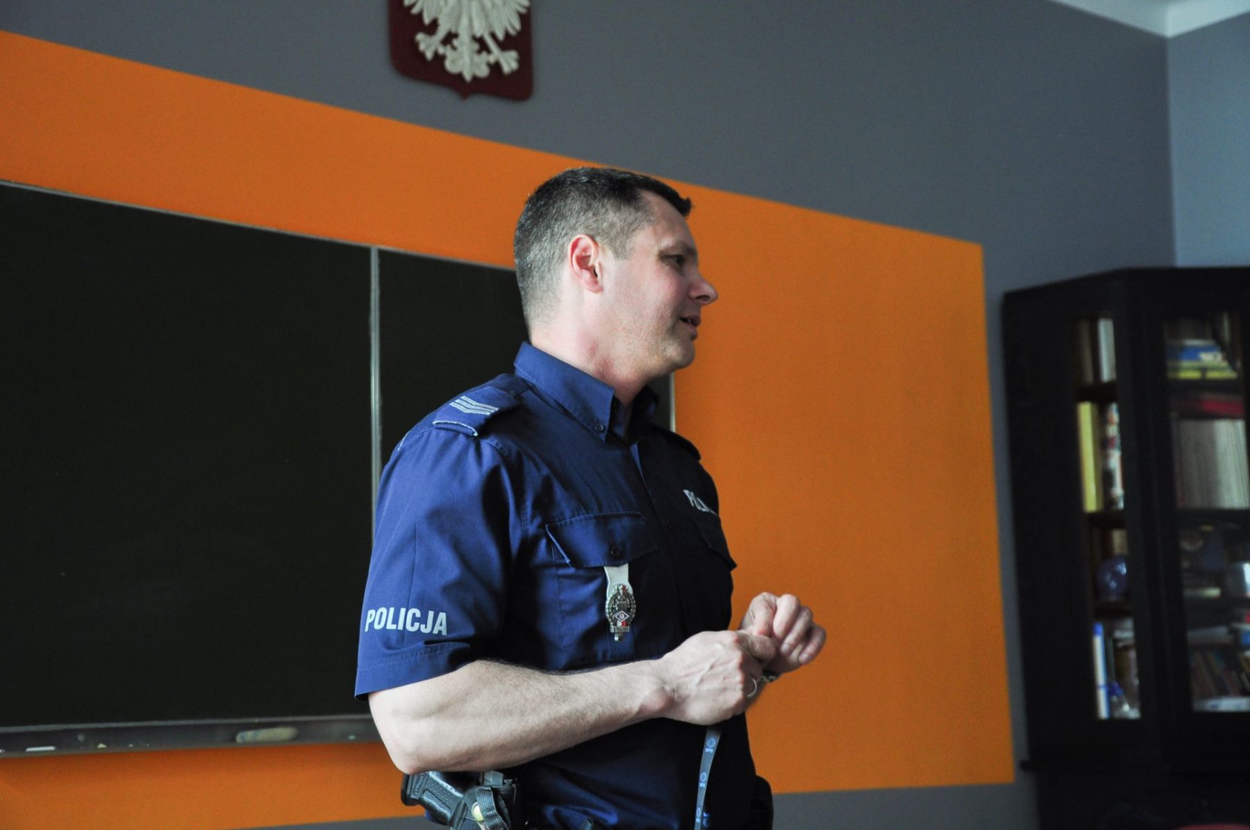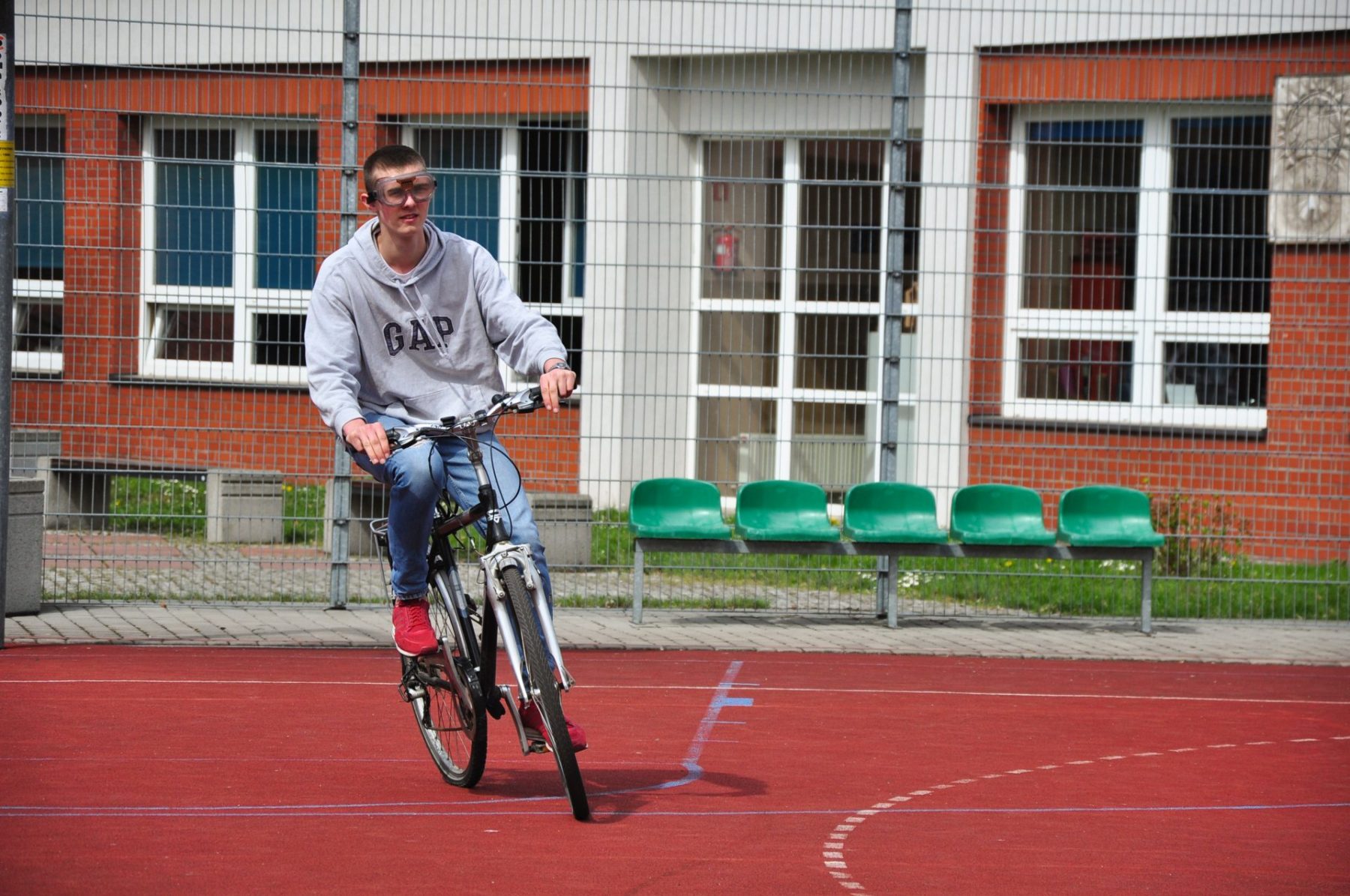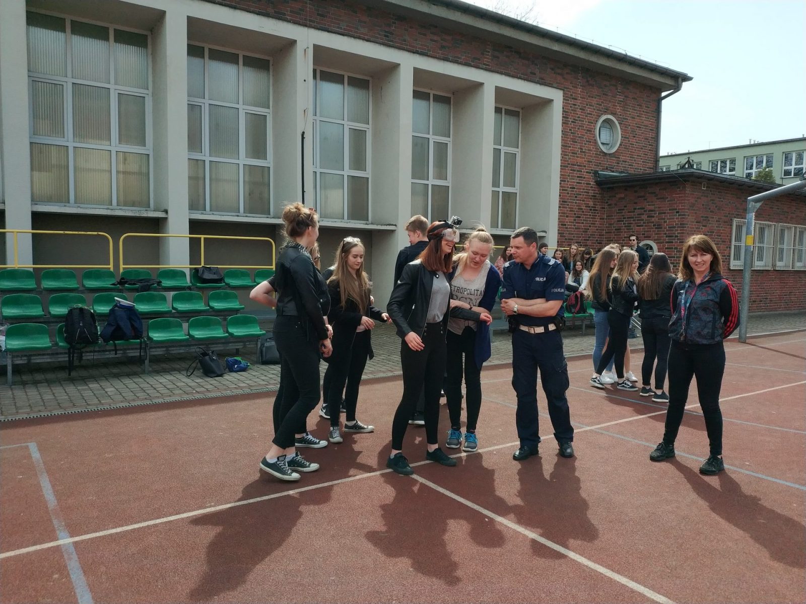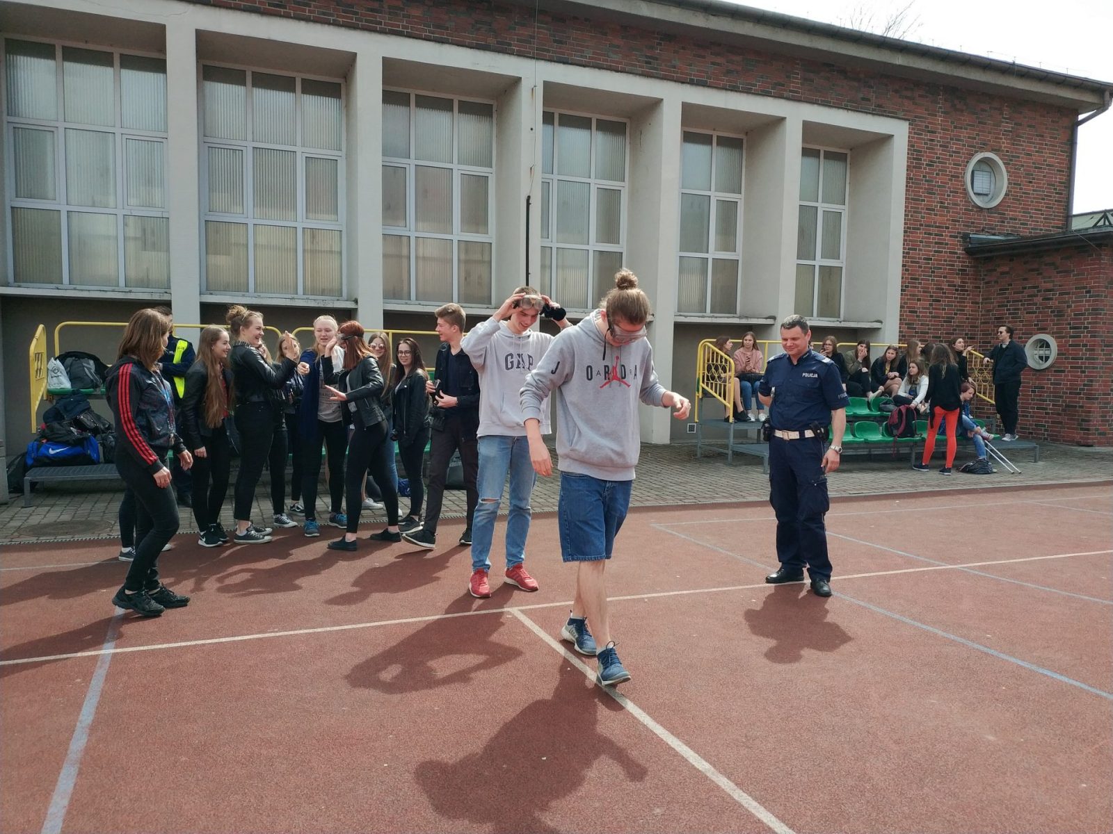 Jeden promil na głowę, legalnie w szkole, zorganizowane przez nauczycieli – Annę Strojny i Bożenę Dworak, w obecności policjanta…! To nie opis patologii, lecz niezwykle interesujących zajęć profilaktycznych przeprowadzonych w ramach ogólnopolskiego konkursu „Szkoła wolna od używek”. Uczniowie mieli okazje przekonać się, jakie niebezpieczeństwo niesie poruszanie się w sytuacji identycznej jak po spożyciu alkoholu lub środka działającego podobnie do niego. Oczywiście alkoholu i innych środków nie było, a błędnik uczniów oszukany został przez użyte w trakcie zajęć alkogogle, czyli specjalne okulary umożliwiające widzenie w sposób charakterystyczny dla osoby nietrzeźwej. Były konkurencje sprawnościowe, jazda na rowerze, a wszystko w warunkach bezpiecznych, w przeciwieństwie do prowadzenia pojazdów na podwójnym gazie w sytuacjach realnych. Skutki i konsekwencje takich zachowań zazwyczaj są tragiczne, o czym opowiedział nasz gość – sierż.sztab.Piotr Bednarski z Wydziału Ruchu Drogowego raciborskiej Policji.