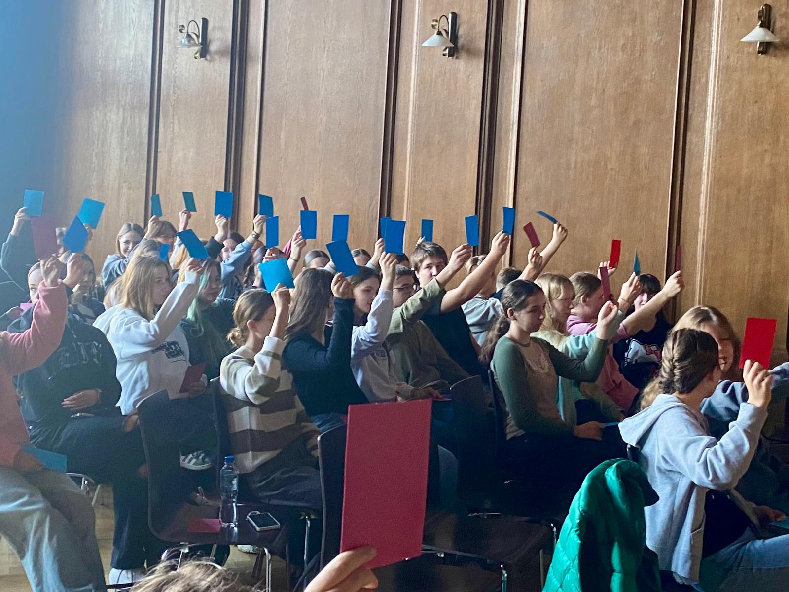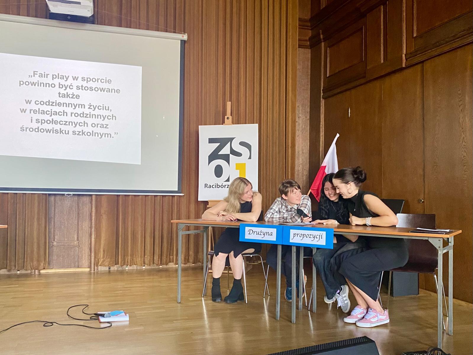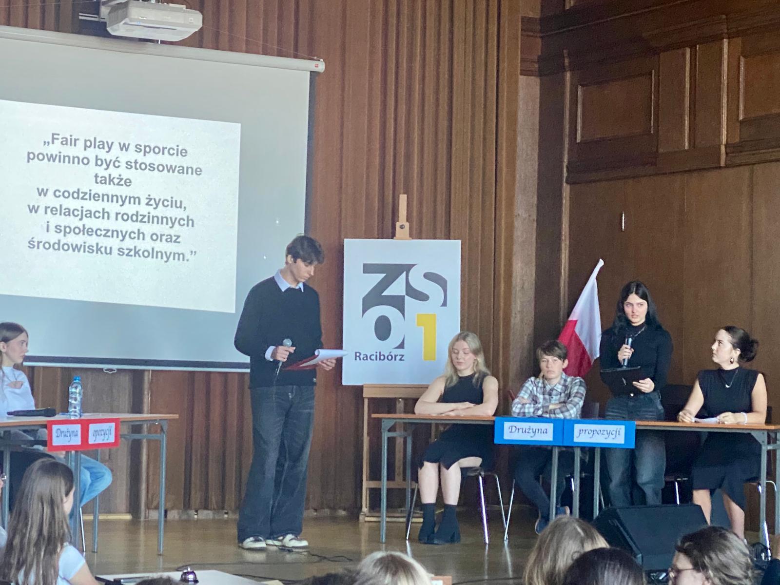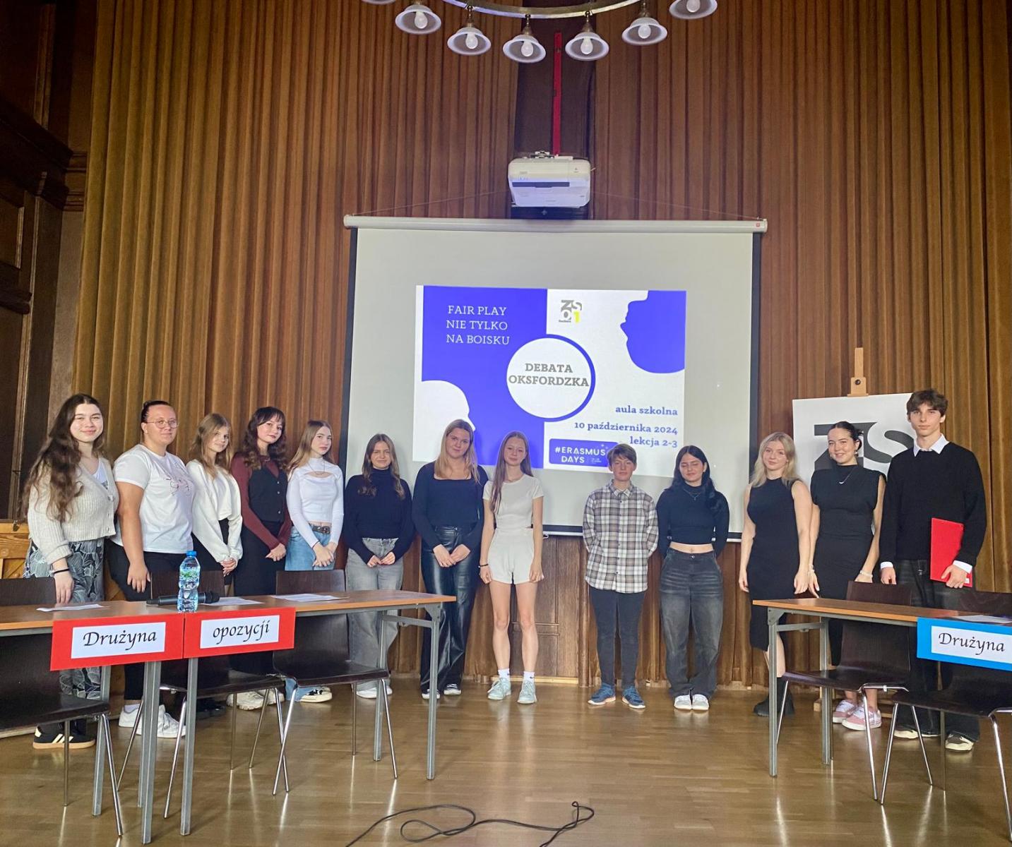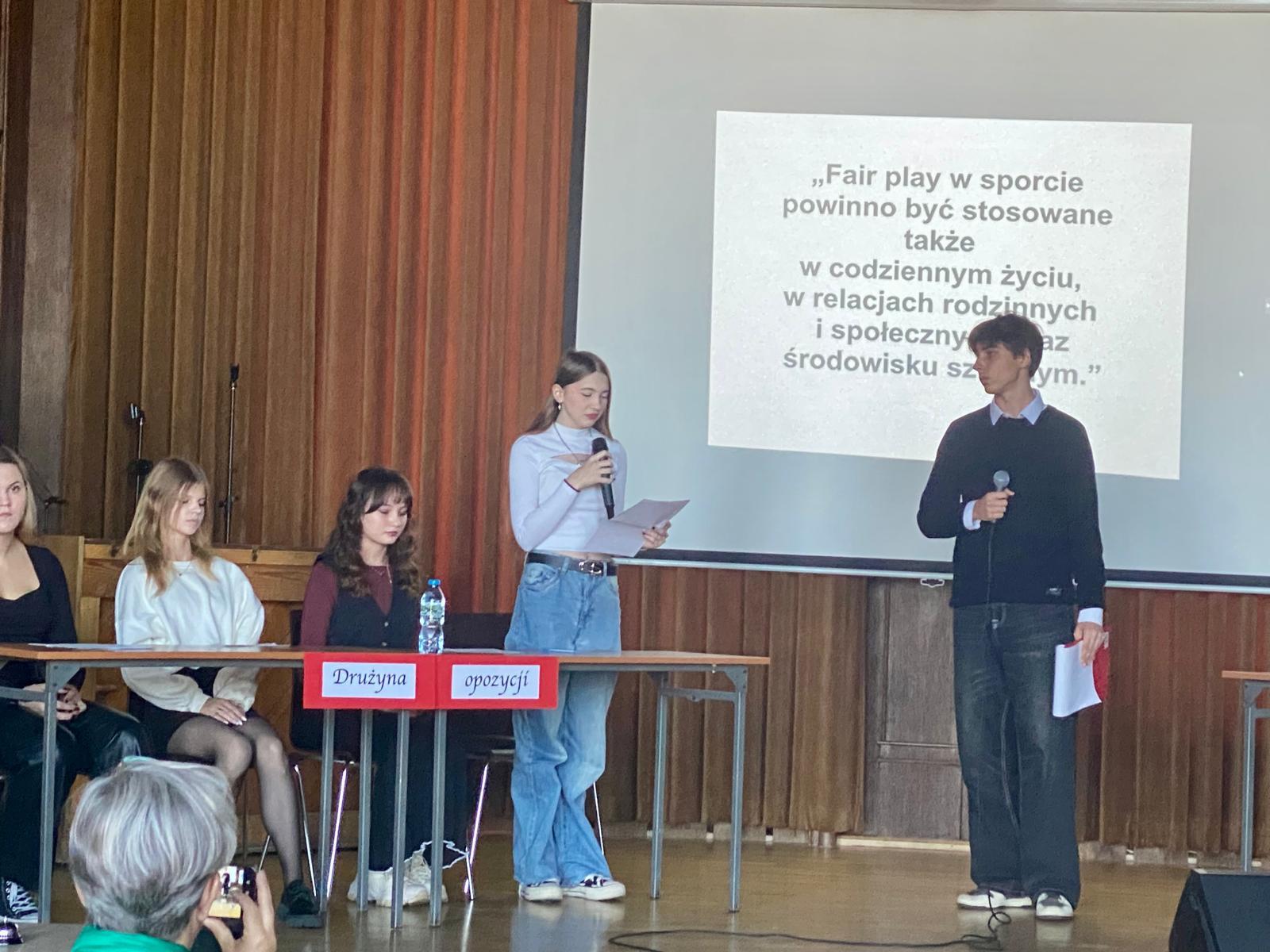 10.10.2024 r. w auli szkolnej odbyło się pierwsze z nich – debata oksfordzka “Fair play nie tylko na boisku”. W rolę mówców, marszałka i sekretarzy debaty wcielili się uczniowie klasy 3HB, przygotowani przez Panią Katarzynę Koczy. Ta publiczna i niełatwa wymiana zdań udowodniła, że młodzi ludzie potrafią bronić swoich racji oraz prowadzić dyskusje pełne szacunku i tolerancji dla opinii opozycji.