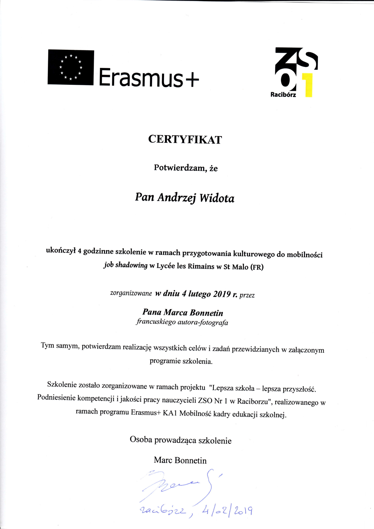 Szczególną uwagę prowadzący szkolenie poświęcił Bretanii. Właśnie ten nadmorski region na północy kraju odwiedzą nasi nauczyciele języka angielskiego: Pani Ewa Dorobisz i Pan Andrzej Widota, którzy z początkiem marca udadzą się do Lycée les Rimains w Saint Malo. Wizyta w tej renomowanej szkole ma posłużyć nawiązaniu współpracy, obserwacji pracy pedagogicznej oraz szczegółowej wymianie doświadczeń nauczycieli języków obcych.