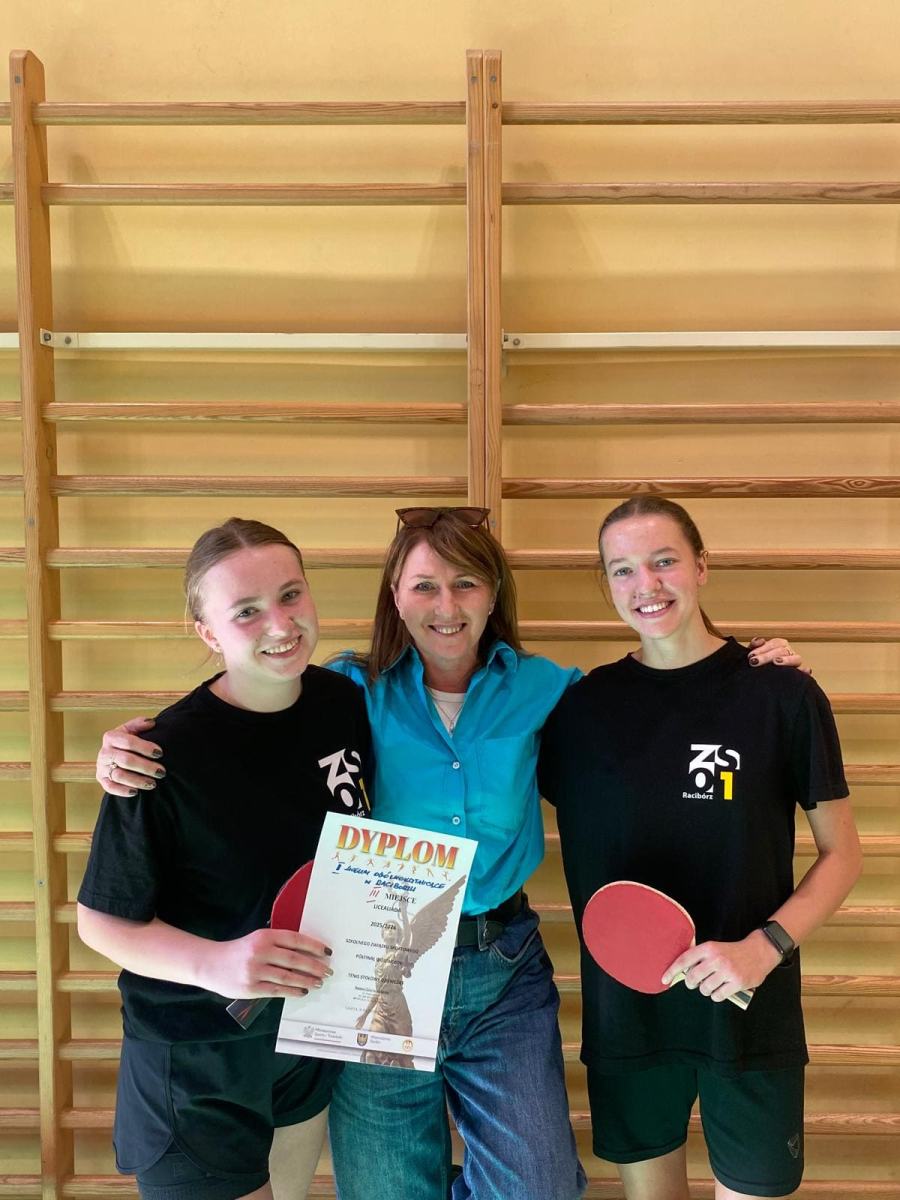 Nasza szkolna drużyna dziewcząt w tenisie stołowym reprezentowała ZSO nr 1 w Raciborzu oraz cały nasz rejon podczas rozgrywek półfinałowych województwa śląskiego. Zawody, które zostały rozegrane w Ligocie stały na bardzo wysokim poziomie. Wystarczy wspomnieć, że brała w nich udział drużyna z Czechowic Dziedzic, będąca aktualnym Mistrzem Polski. Nasze dziewczęta w składzie Kamila Wojtaszek i Marta Ściborski, mimo bardzo wymagających rywalek, przy tenisowym stole spisywały się znakomicie, zagrały dobre mecze i ostatecznie zajęły III miejsce