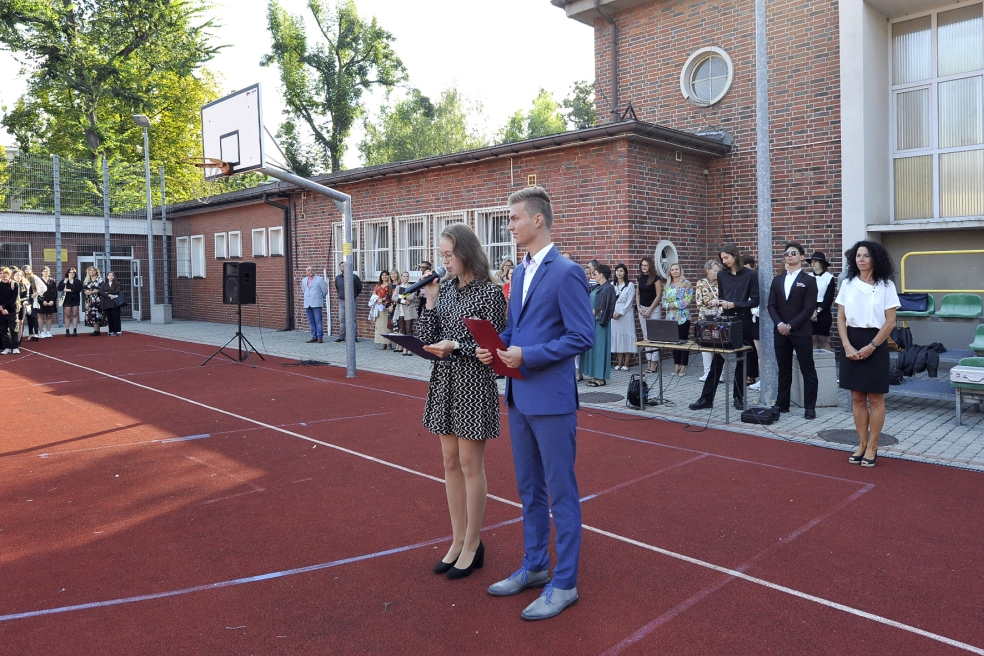 Inauguracja roku szkolnego 2022/2023 w ZSO nr 1 odbyła się na boisku szkolnym, akademię poprowadzili uczniowie klasy maturalnej – Amelia Mandera oraz Paweł Tomaszewski, którzy przywitali całą społeczność szkolną.