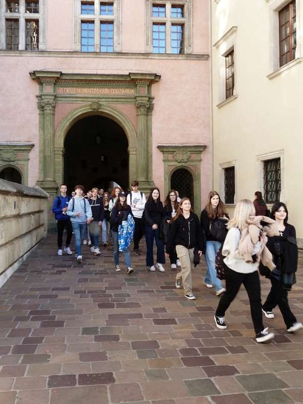 8 listopada klasy 3 J oraz 1 HB odwiedziły Kraków, by odbyć lekcję sztuki w terenie. Była to wycieczka przedmiotowa z plastyki, więc sztuki piękne zdominowały program tego dnia. Wizyta w mieście Kraka rozpoczęła się od zwiedzenia wystaw w Muzeum Sztuki Japońskiej „Manggha”, w którym uczniowie obejrzeli dwie ekspozycje czasowe: „Imaginarium natury” z pracami dziewiętnastowiecznego artysty Watanabe Seitei oraz „Z japońskiej kolekcji Feliksa „Mangghi” Jasieńskiego” prezentującą wybrane dzieła z kolekcji patrona muzeum.