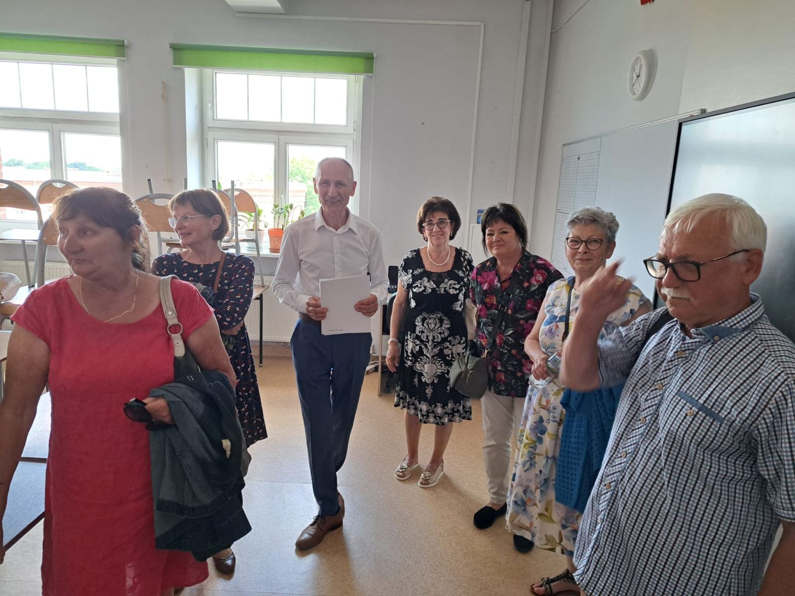 Absolwenci „Kasprowicza” mają wielki sentyment do swojej szkoły. Tym razem, w gorące sobotnie południe 28 czerwca 2025 roku, odwiedzili nas jubilaci świętujący 50 lat po maturze. Wychowankowie legendarnego historyka Benedykta Motyki z wielką estymą wspominali swojego wychowawcę, choć niejednokrotnie drżeli przed lekcjami historii, to darzyli swojego profesora wielkim zaufaniem. Spacerując po korytarzach opowiadali o szkolnych przygodach, wycieczkach, wydarzeniach. Poszukiwali śladów swojej obecności w latach siedemdziesiątych, no i udało się – tablo, które mieści się na drugim piętrze wzbudziło wielki entuzjazm. Nie inaczej było podczas przeglądania pamiątkowych kronik i ksiąg. Kiedy w 1975 roku zdawali maturę wszystko było