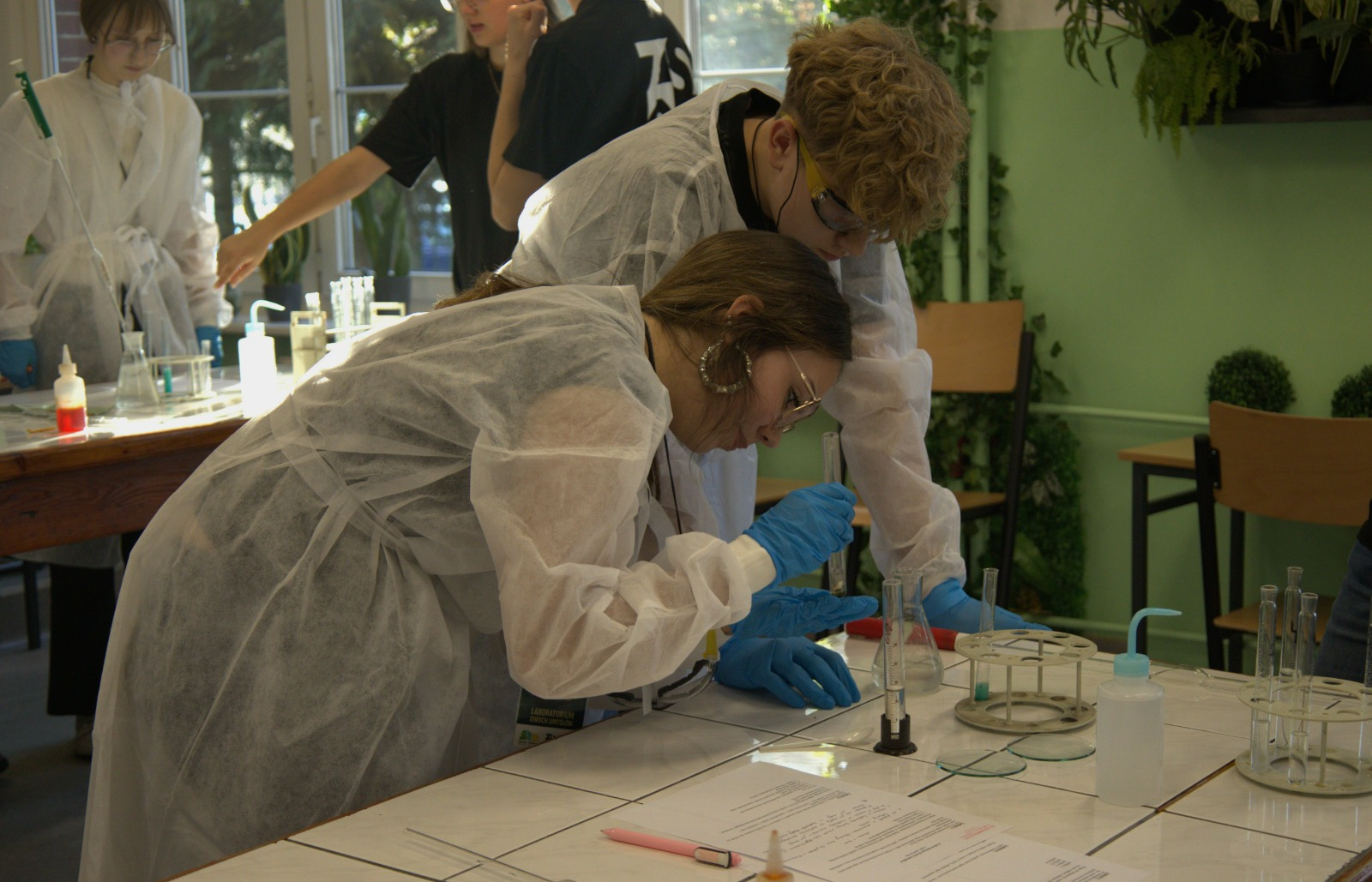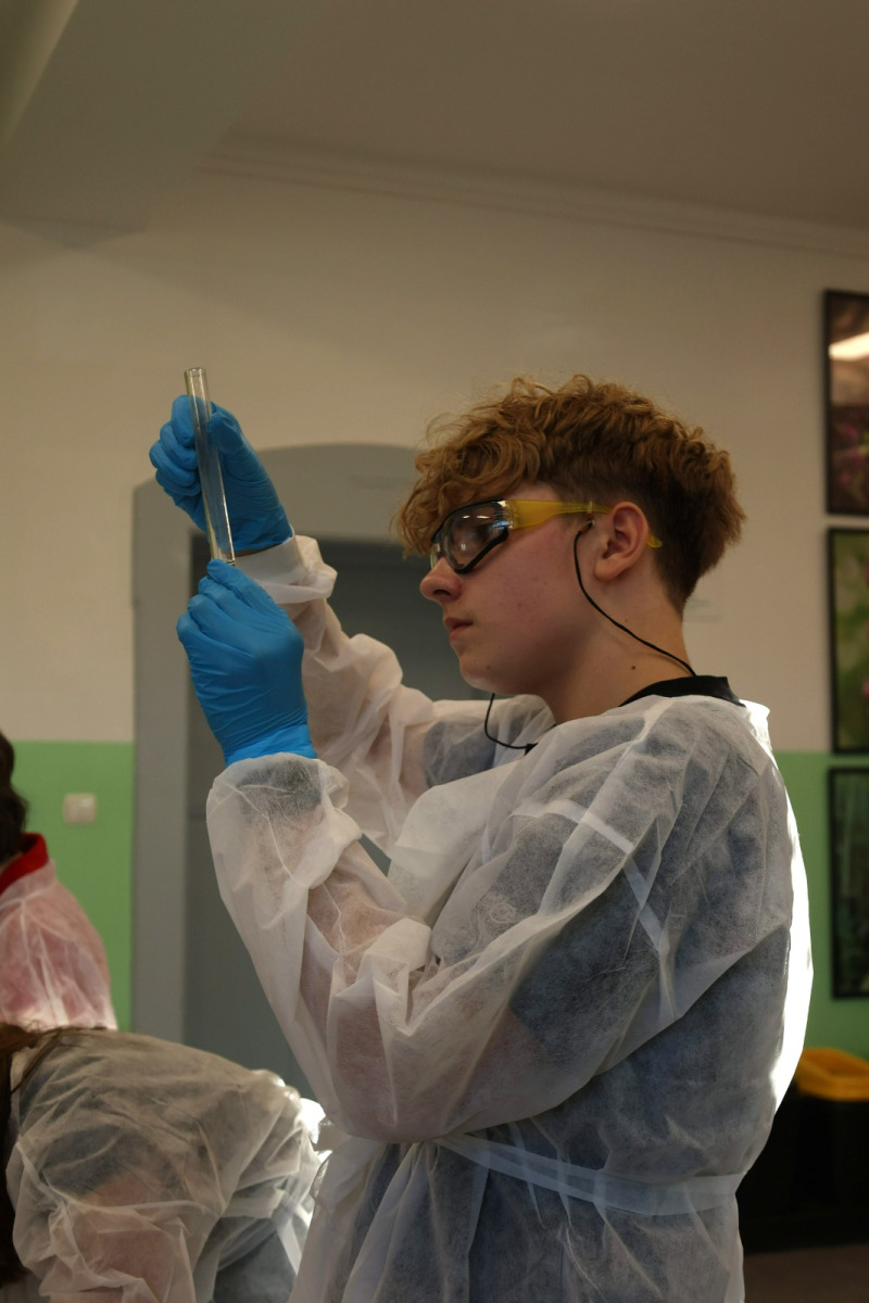 Do części praktycznej, która odbyła się w Zielonej Pracowni – miejscu stworzonym z myślą o bezpiecznym i inspirującym eksperymentowaniu – mogło awansować tylko sześć najlepszych drużyn. Zakwalifikowane zespoły stanęły przed prawdziwym wyzwaniem: chemią laboratoryjną – wymagającą precyzji, uważności i umiejętności praktycznego wykorzystania wiedzy.