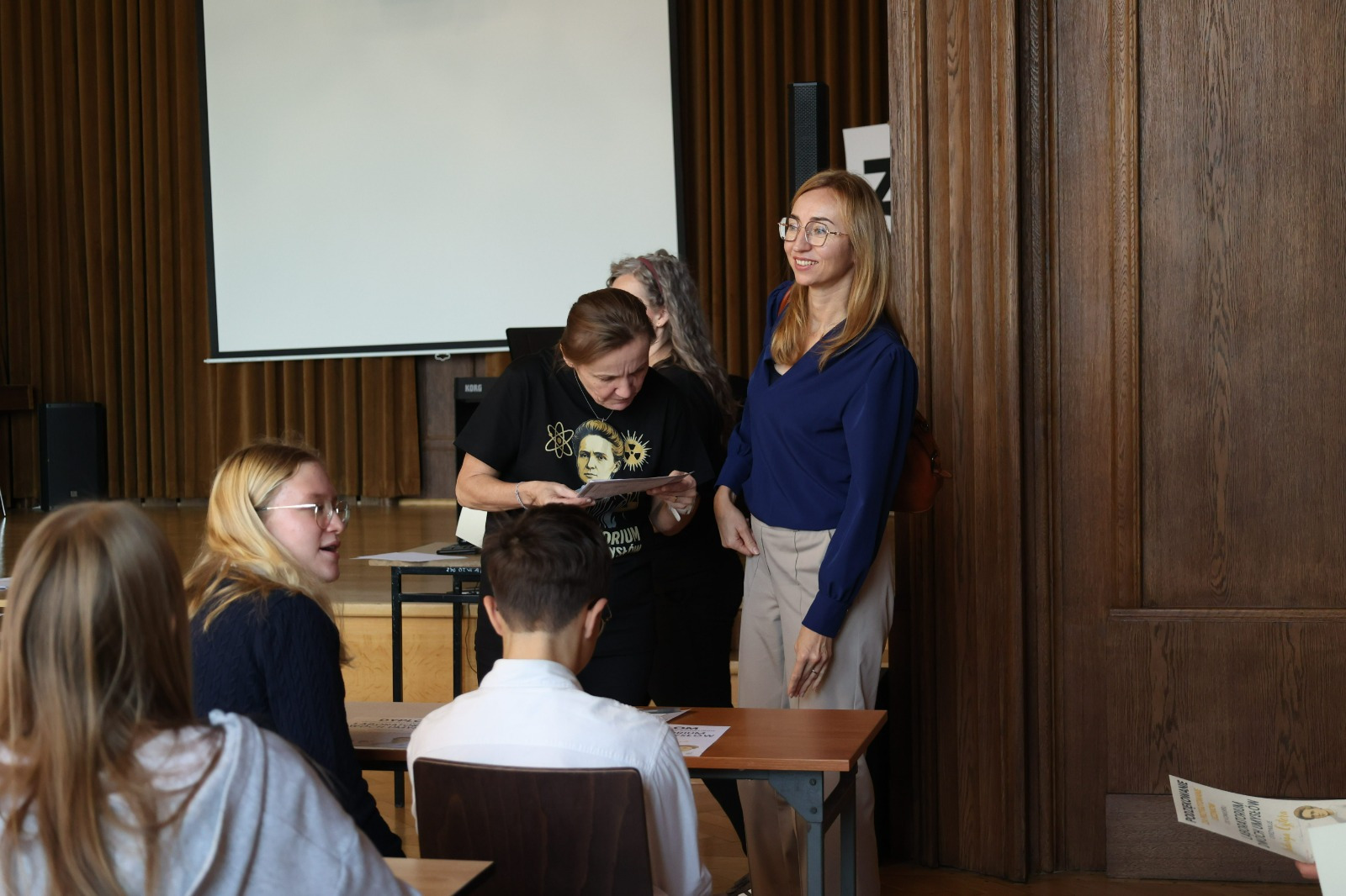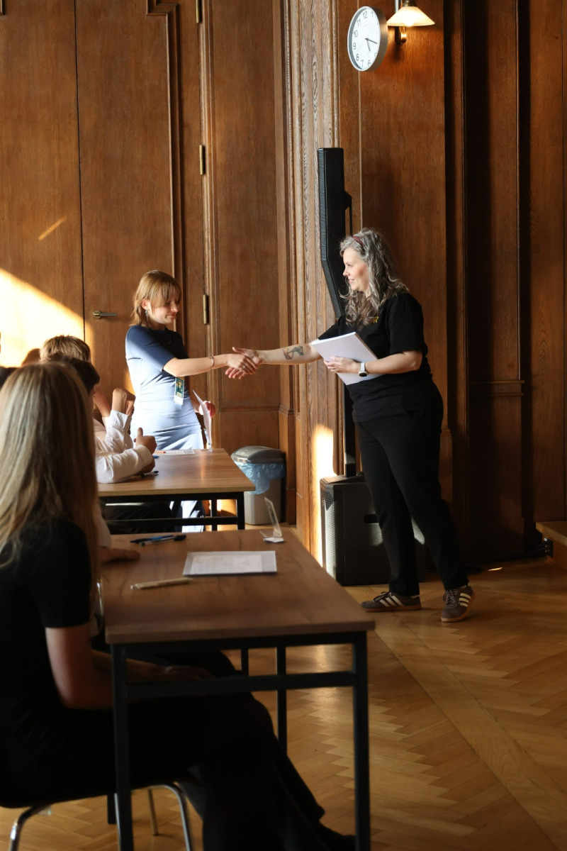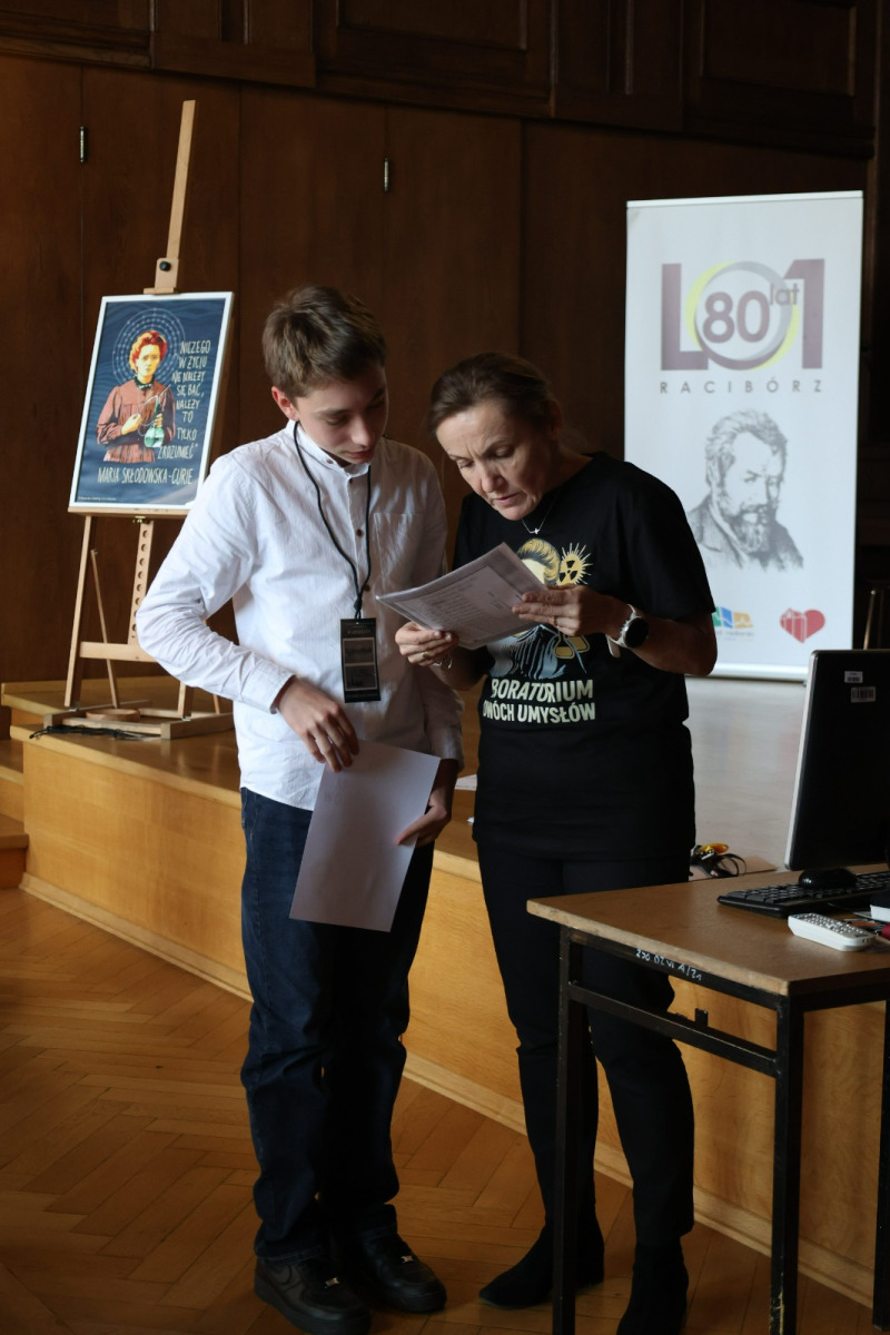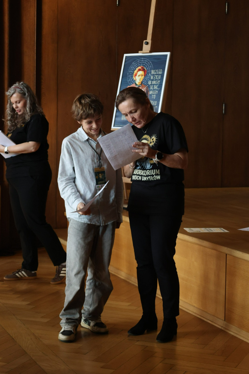 W przerwie między etapami na uczniów czekały warsztaty z języka francuskiego i matematyki. Zajęcia językowe w formie gry przeniosły uczestników w paryski świat Marii Skłodowskiej-Curie, pozwalając im poczuć klimat epoki, w której żyła noblistka. Równolegle odbywała się pełna emocji matematyczna rywalizacja w grze Rummikub, wymagająca logicznego myślenia, refleksu i współpracy. Obie formy aktywności pozwoliły na chwilę oddechu, zabawę i integrację uczestników z różnych szkół.