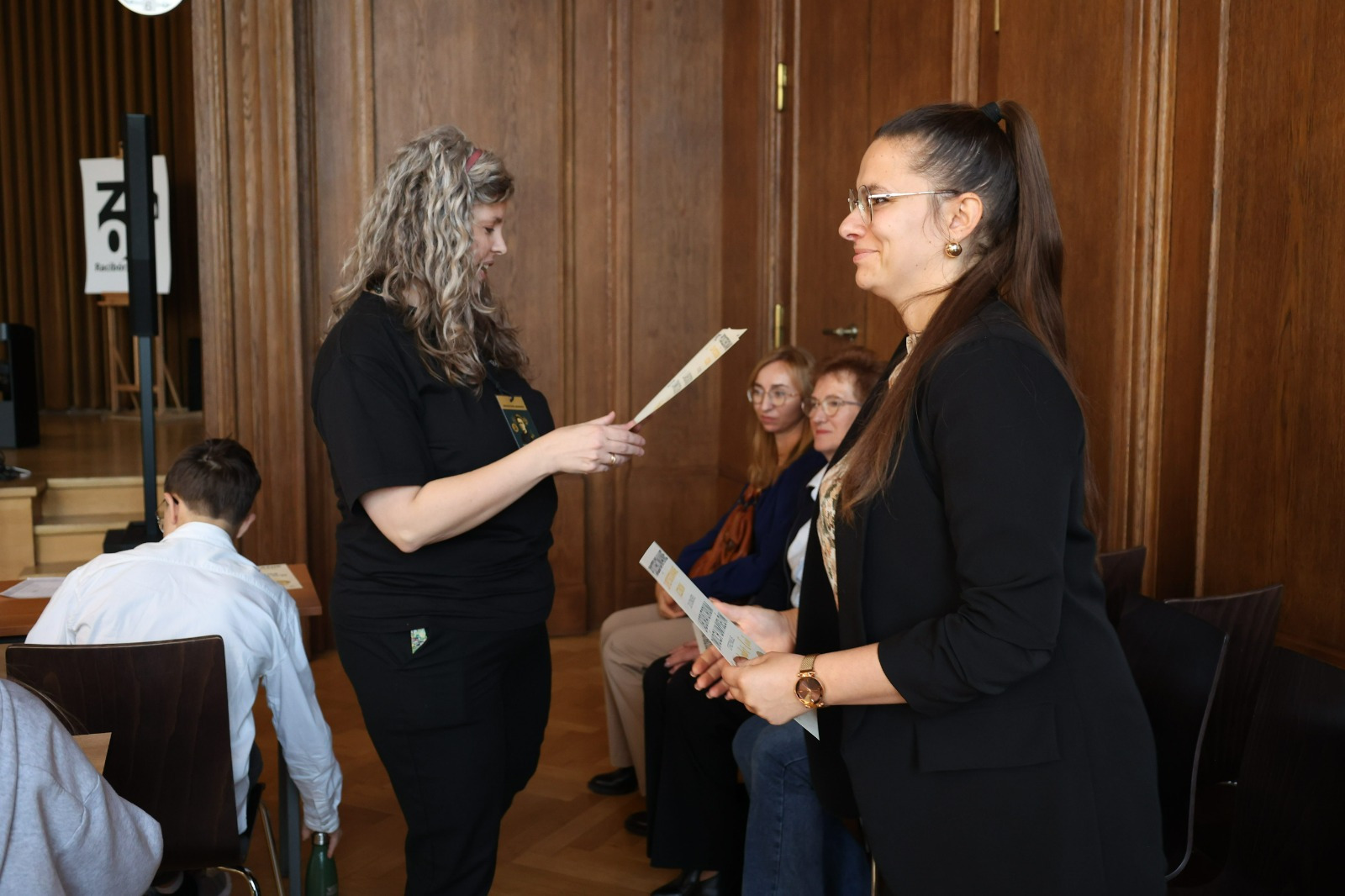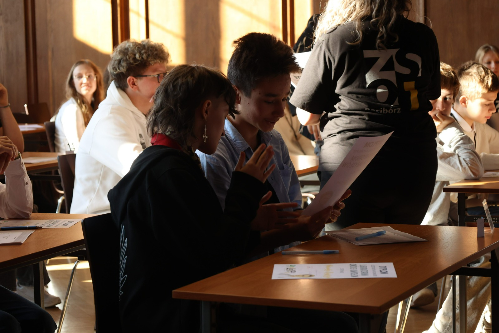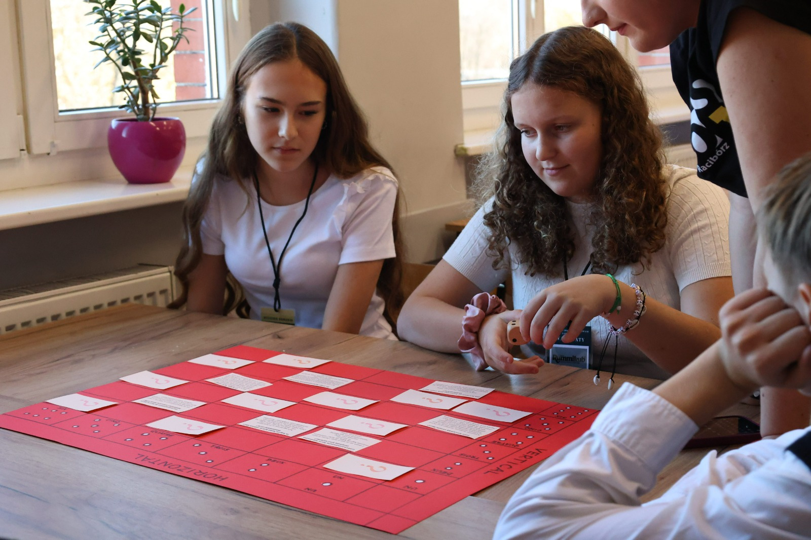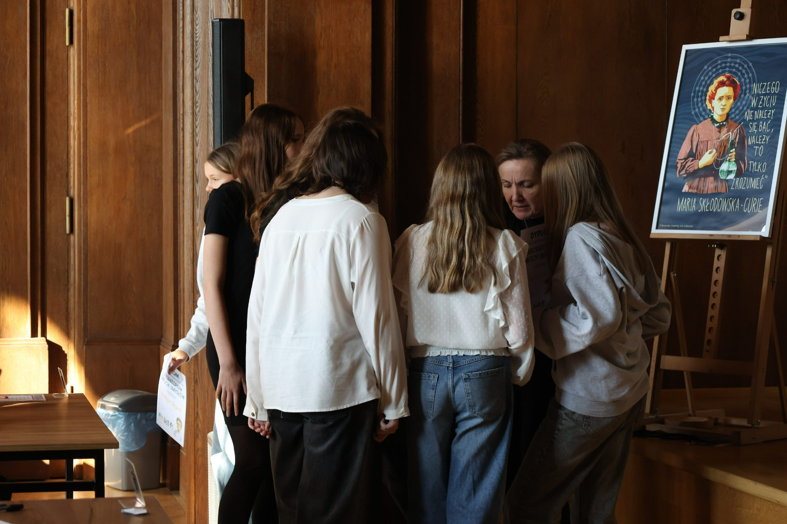 W przerwie między etapami na uczniów czekały warsztaty z języka francuskiego i matematyki. Zajęcia językowe w formie gry przeniosły uczestników w paryski świat Marii Skłodowskiej-Curie, pozwalając im poczuć klimat epoki, w której żyła noblistka. Równolegle odbywała się pełna emocji matematyczna rywalizacja w grze Rummikub, wymagająca logicznego myślenia, refleksu i współpracy. Obie formy aktywności pozwoliły na chwilę oddechu, zabawę i integrację uczestników z różnych szkół.
