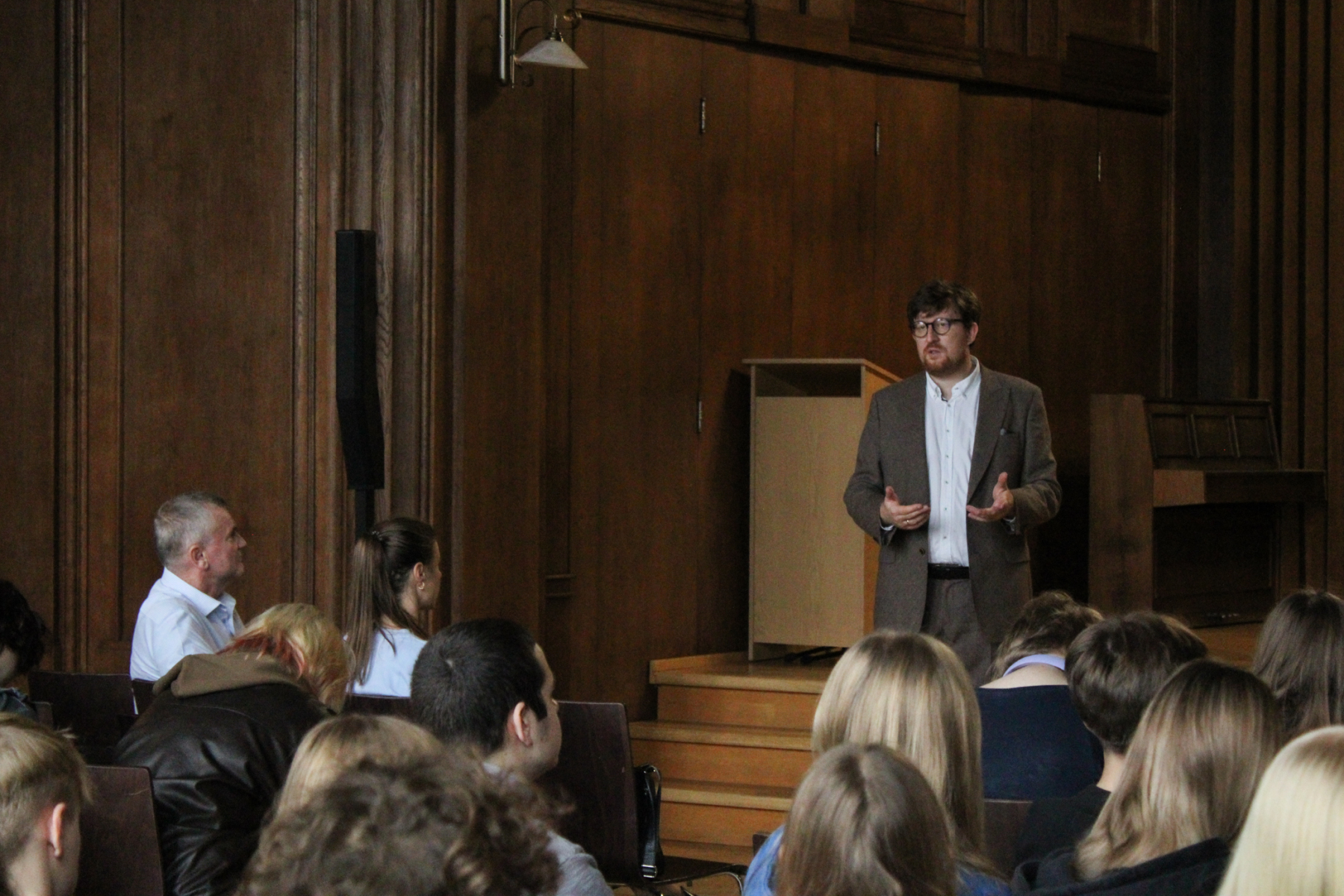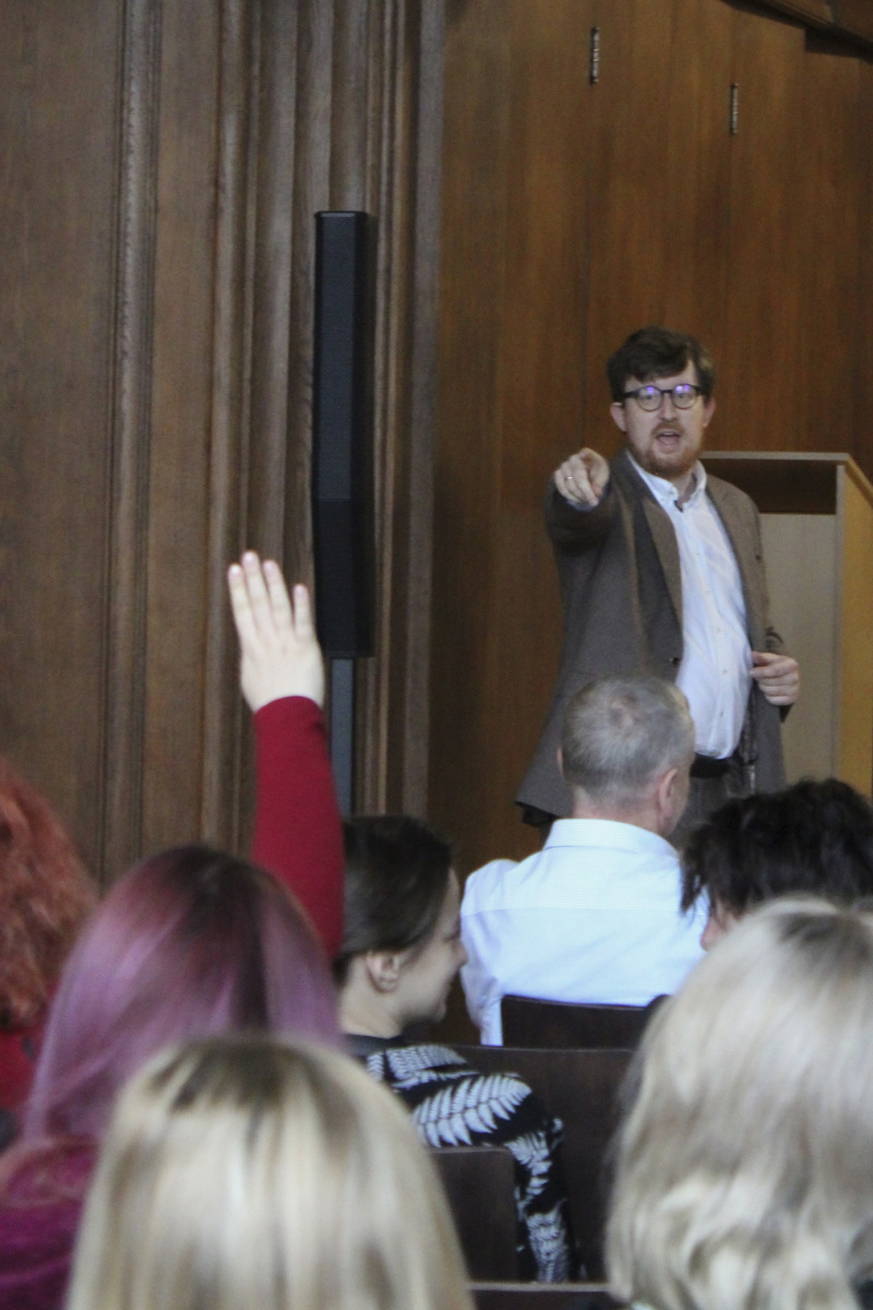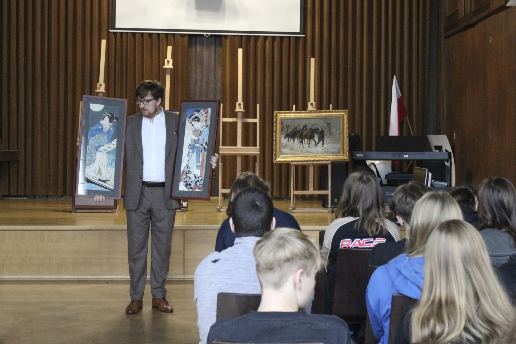 12 listopada w ramach cyklu “Spotkań z Absolwentem” naszą szkołę odwiedził Michał Pikul. W spotkaniu wzięli udział zarówno uczniowie I LO, którego zaproszony gość jest absolwentem, jak i Liceum Sztuk Plastycznych, ponieważ swoje życie zawodowe związał właśnie ze sztuką. Po ukończeniu nauki w raciborskim “Kasprowiczu”, Michał podjął studia na kierunku kulturoznawstwo w Krakowie, w którym mieszka do dziś. Po kilku latach pracy w domu aukcyjnym, założył własną galerię: Galeria 26 Michał Pikul Handel sztuką, w której organizuje aukcje, cykliczne wystawy i spotkania z artystami, a przede wszystkim sprzedaje prace z zakresu malarstwa, grafiki i rzeźby autorstwa zarówno dawnych, jak i współczesnych, artystów. Podczas wizyty w szkole Michał ze wzruszeniem wspominał licealne czasy oraz z wielką pasją i entuzjazmem opowiadał młodym słuchaczom o swojej pracy, cierpliwie odpowiadając na liczne pytania.