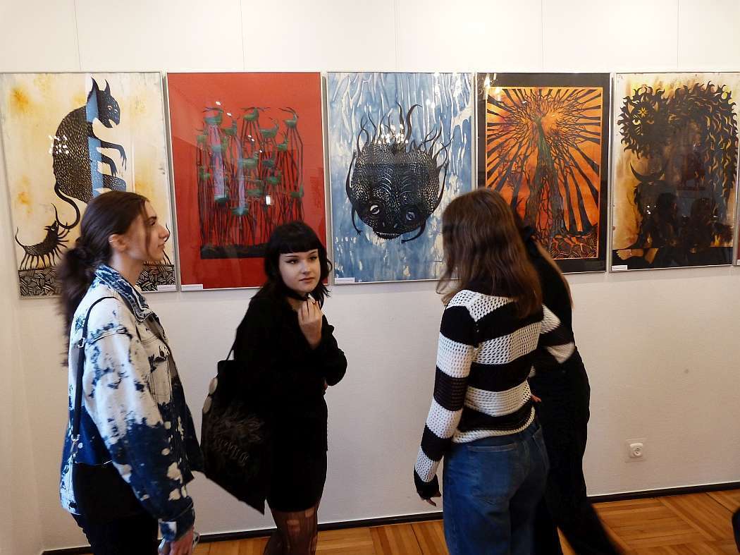 Zakończenie zwiedzania muzealnych wystaw miało miejsce w przestrzeni prezentującej wycinanki dwóch ukraińskich artystek Julii Datchenko i Liubov Datchenko. Technika wycinanki kojarzona z dekoracyjną sztuką ludową została przez obie panie podniesiona do rangi pełnoprawnej dziedziny pozwalającej na przedstawienie autorskich wizji artystycznych.