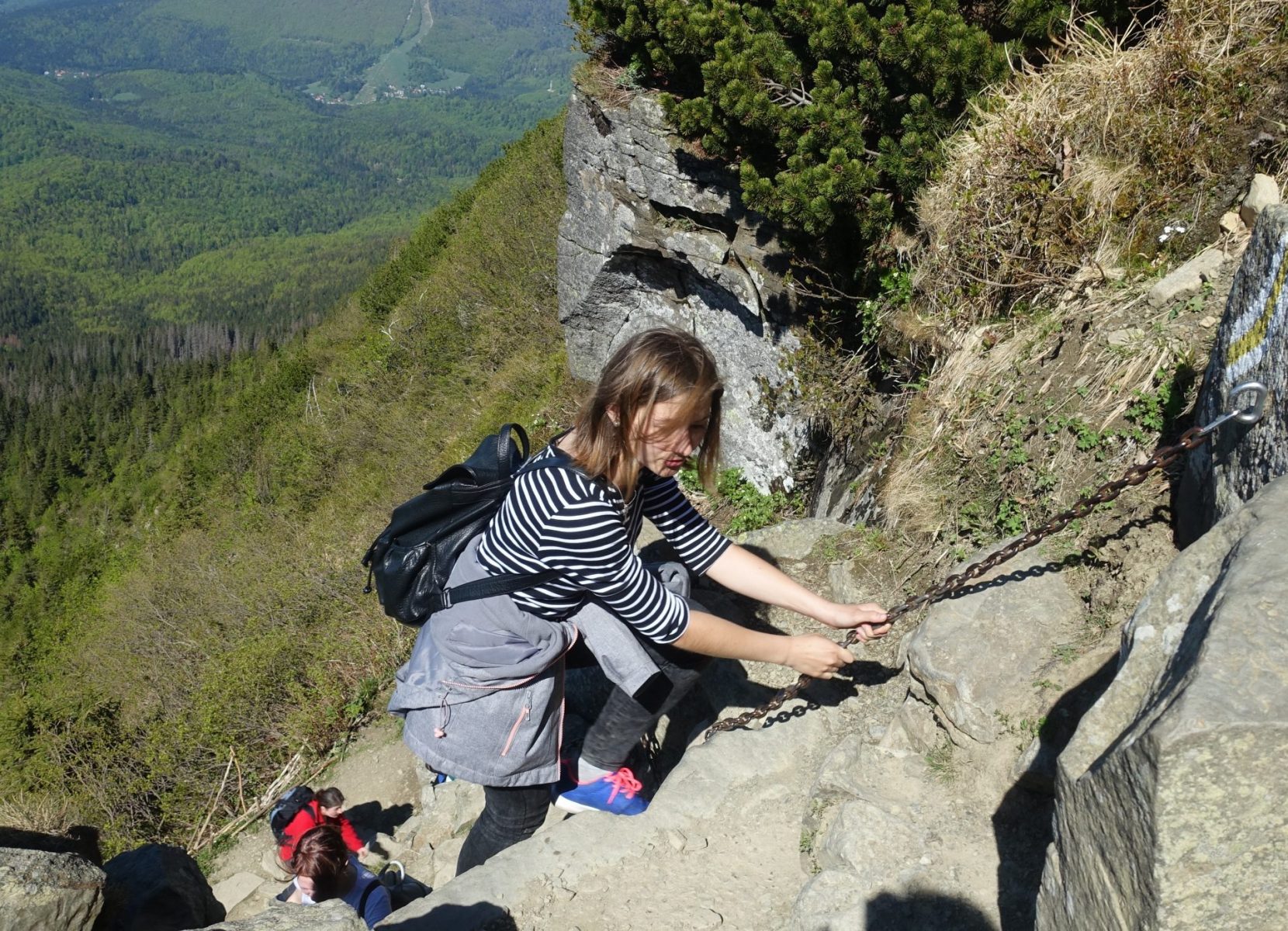 Tym razem celem naszej wędrówki było zdobycie najwyższych szczytów Beskidu Żywieckiego. Wyruszyliśmy niebieskim szlakiem, tzw. Górnym Płajem z Przełęczy Krowiarki. Po dotarciu do Schroniska na Markowych Szczawinach i krótkim odpoczynku zdecydowaliśmy się na przejście żółtym szlakiem, tzw. Percią Akademików na szczyt Babiej Góry. Perć Akademików zyskała sobie sławę najpiękniejszej, ale też najbardziej wymagającej drogi na szczyt Babiej Góry. W niektórych miejscach, dla ułatwienia wejścia trasa zabezpieczona jest łańcuchami i klamrami.