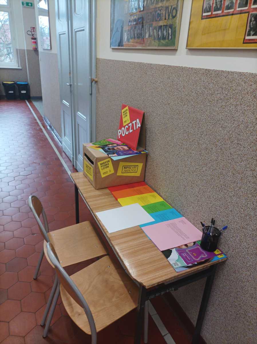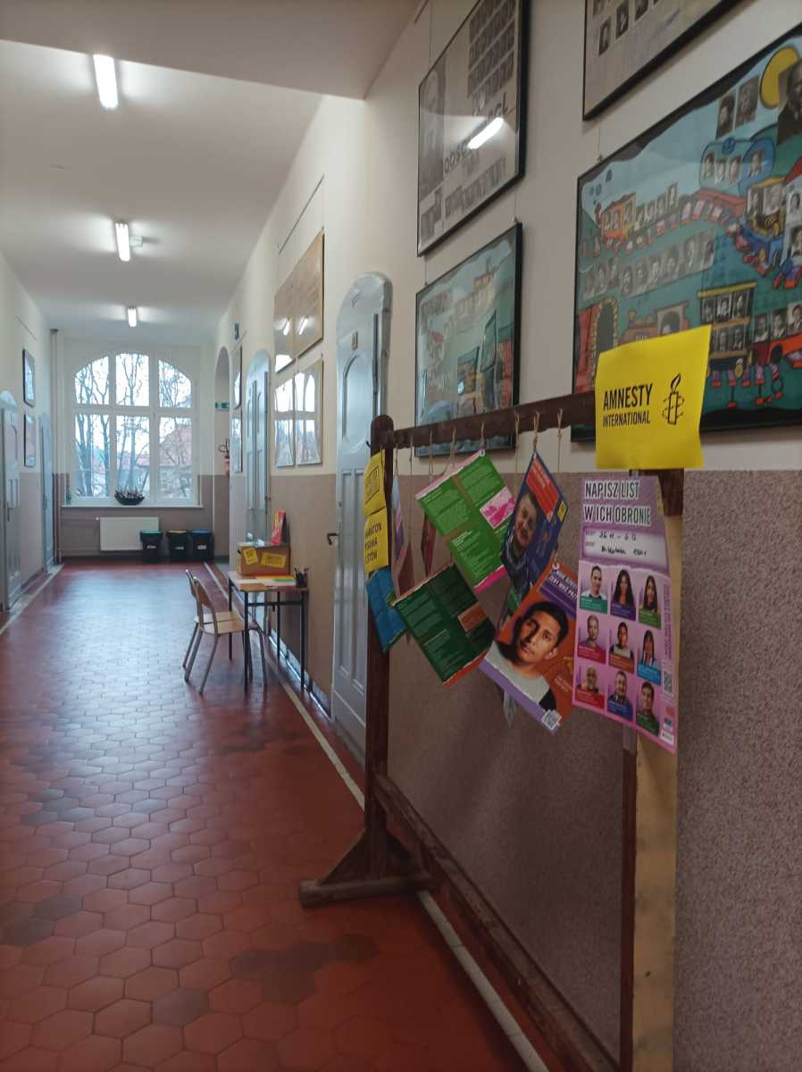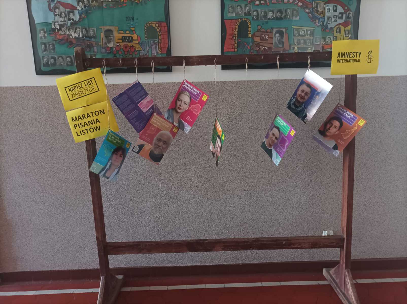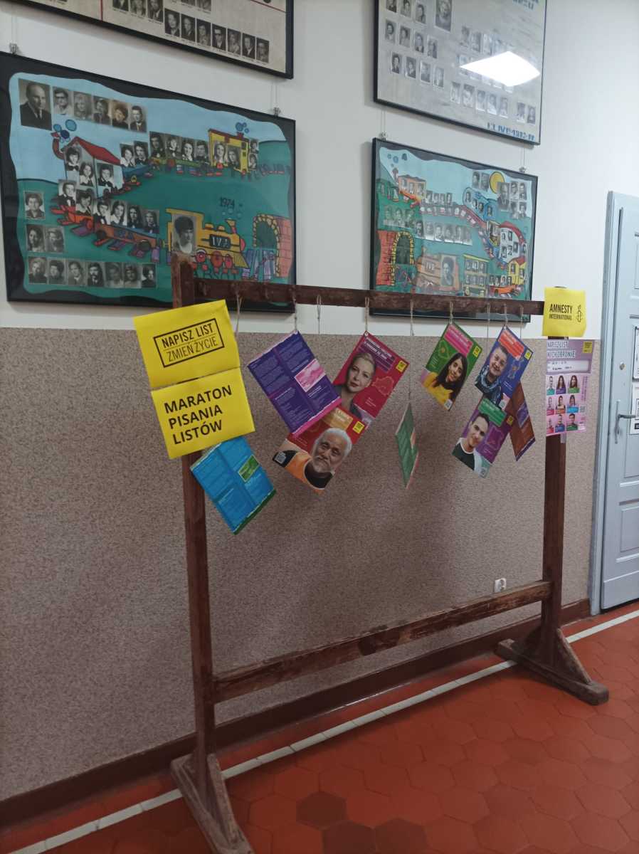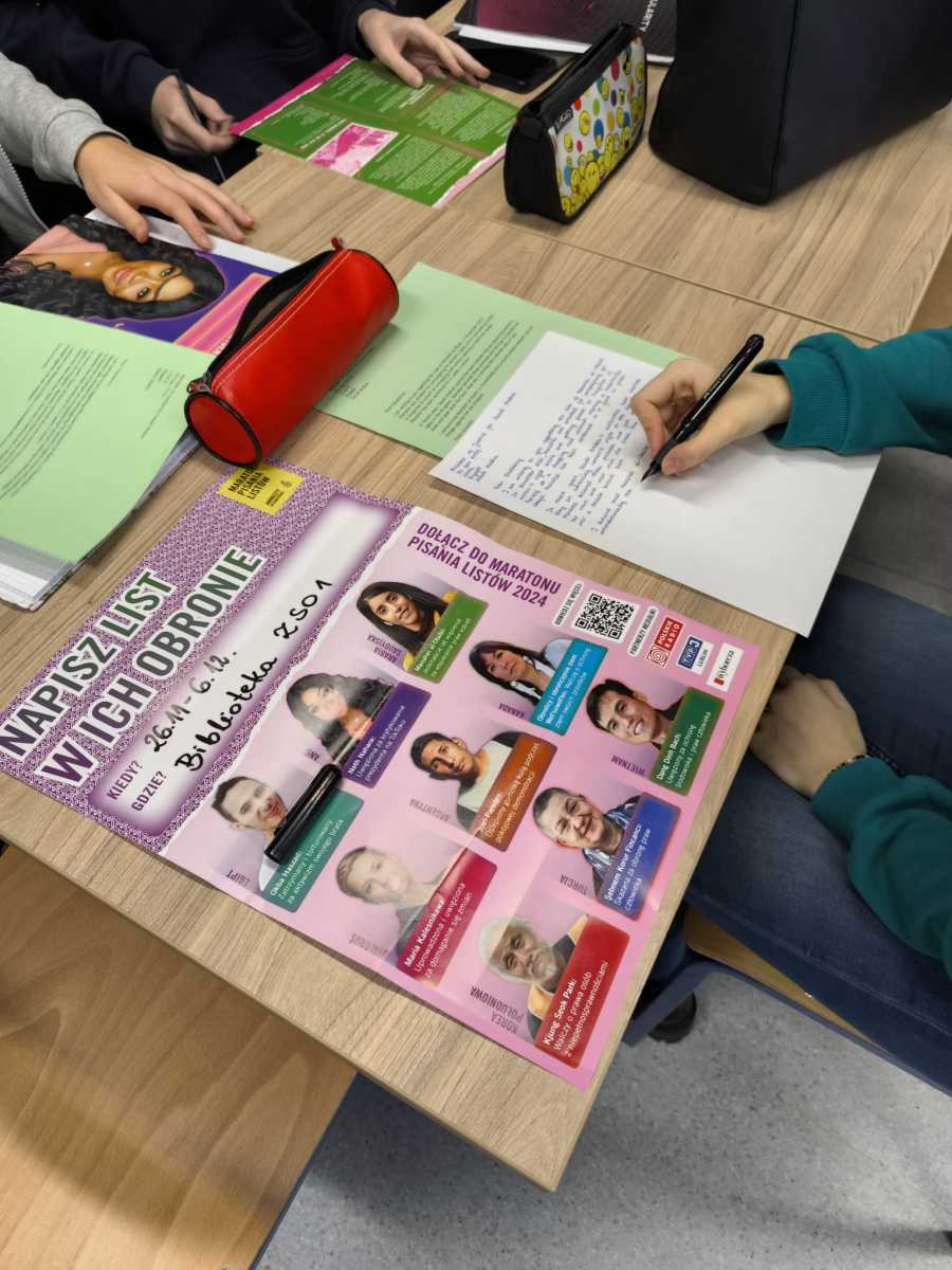Nasza szkoła w dniach od 25 listopada do 20 grudnia 2024 roku ponownie przystąpiła do akcji Amnesty International ,,Maraton pisania listów’‘. To największa na świecie akcja na rzecz praw człowieka. Jednoczy siły ludzi z całego świata, żeby upomnieć się o konkretne osoby, których prawa są łamane i odmienić ich los. W tym celu pisane są listy do decydentów, którzy mają konkretny wpływ na życie prześladowanych obrońców praw człowieka lub bezpośrednio do osób pokrzywdzonych, aby dodać im sił. W tym roku wskazano dziewięć historii. Nasze listy mogą wpłynąć na zmianę ich sytuacji życiowej. Wśród nich są m.in. Maria Kalesnikawa, skazana na jedenaście lat więzienia przez reżim Łukaszenki pod zarzutem „naruszenia bezpieczeństwa narodowego” i „ekstremizmu” jakim miało być zaangażowanie w wybory prezydenckie w sierpniu 2020 roku. Dołączyła ona do kampanii niezależnej kandydatki Swiatłany Cichanouskiej. Akcja była dla naszych uczniów okazją do przybliżenia tematyki praw człowieka. Pomogła również kształtować postawy prospołeczne. Zrealizowaliśmy kilka aktywności w celu popularyzacji maratonu: na terenie szkoły pojawiły się plakaty i ulotki informacyjne, a także odbyły się zajęcia w klasach dotyczące praw człowieka.
