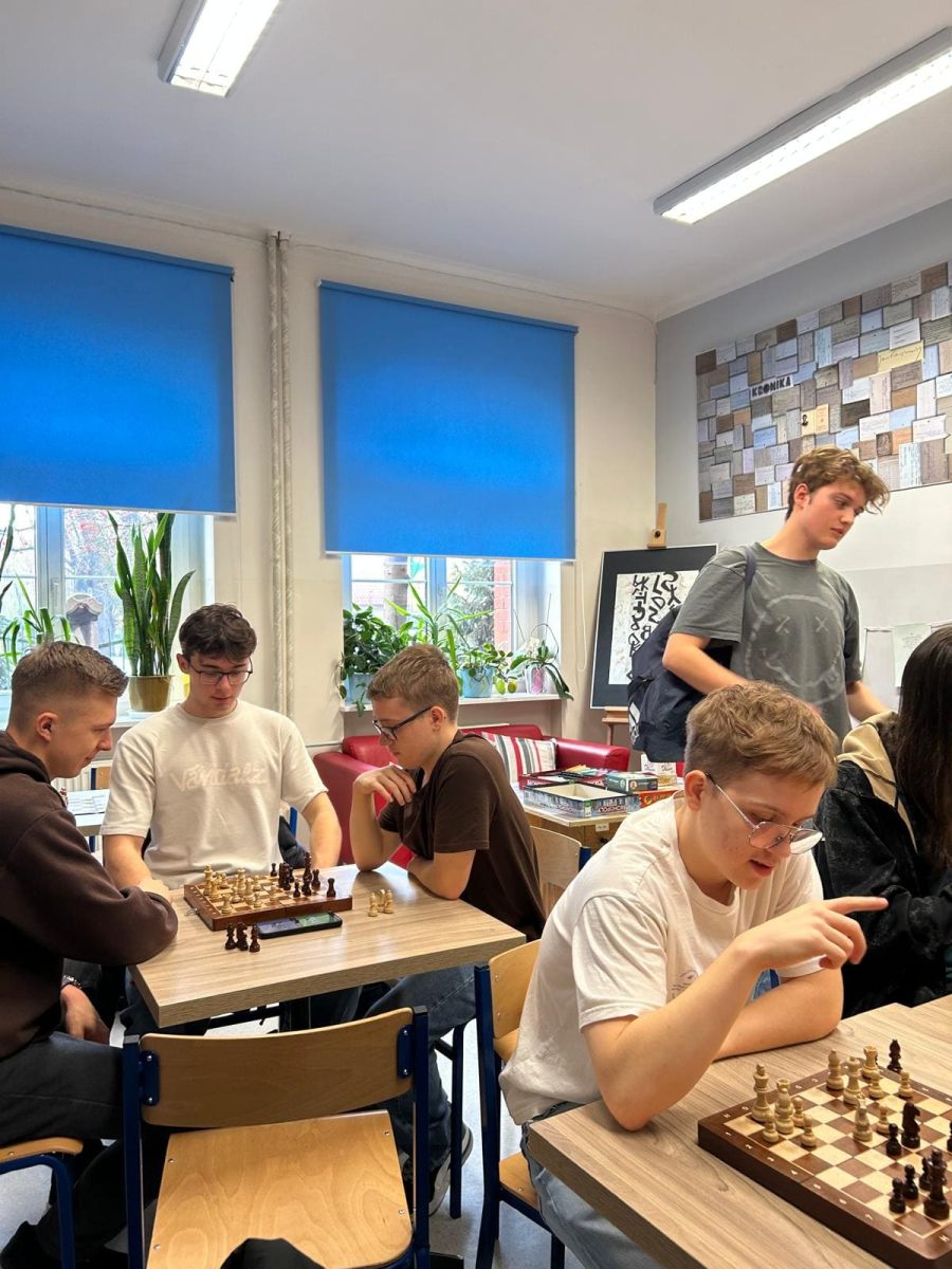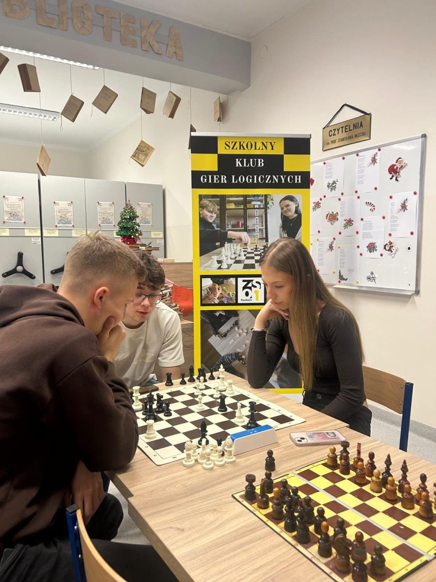 4 grudnia w bibliotece szkolnej odbył się „Mikołajkowy turniej szachowy i gier planszowych”, który zgromadził uczniów pasjonujących się zarówno klasycznymi szachami, jak i różnorodnymi grami planszowymi. Wydarzenie przebiegło w wyjątkowo świątecznej atmosferze, wypełnionej dobrym humorem, rywalizacją i mikołajkowymi akcentami.