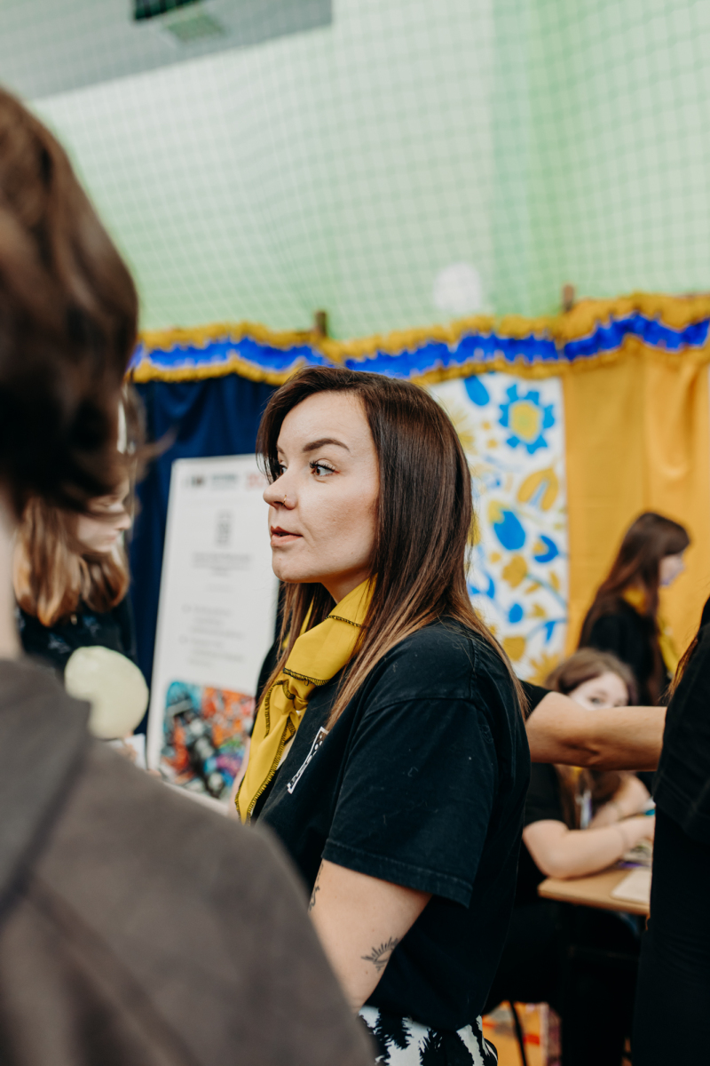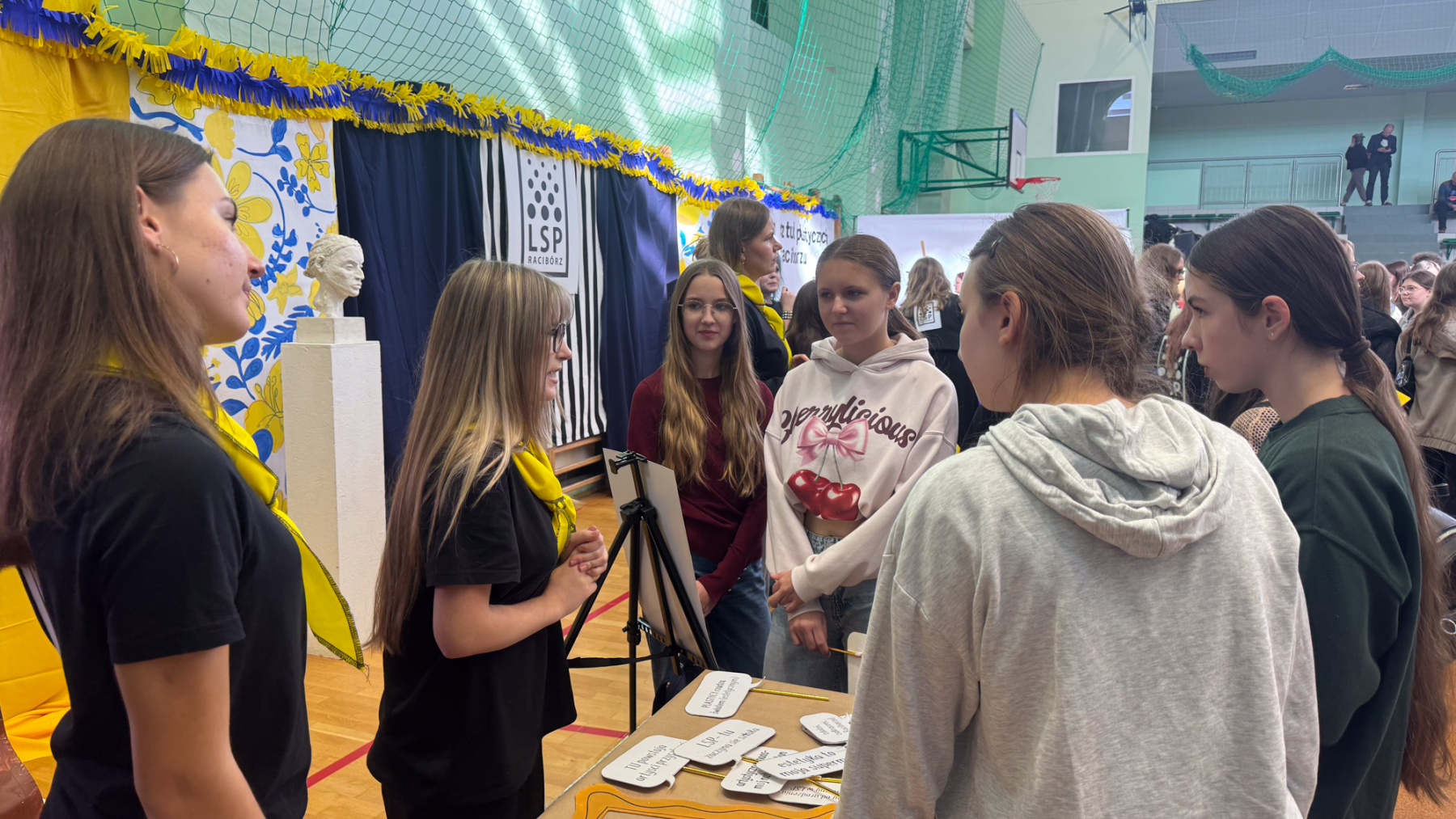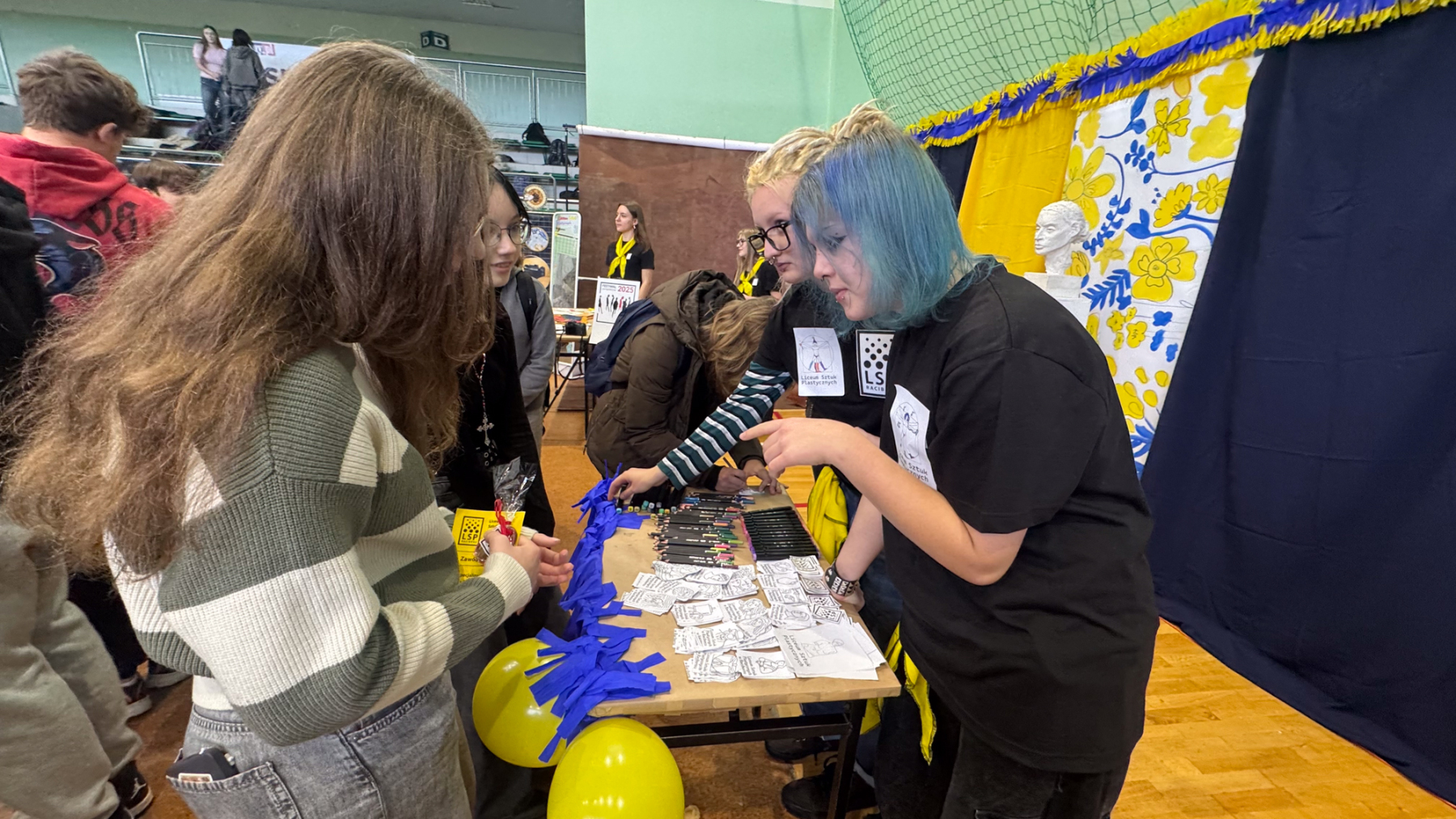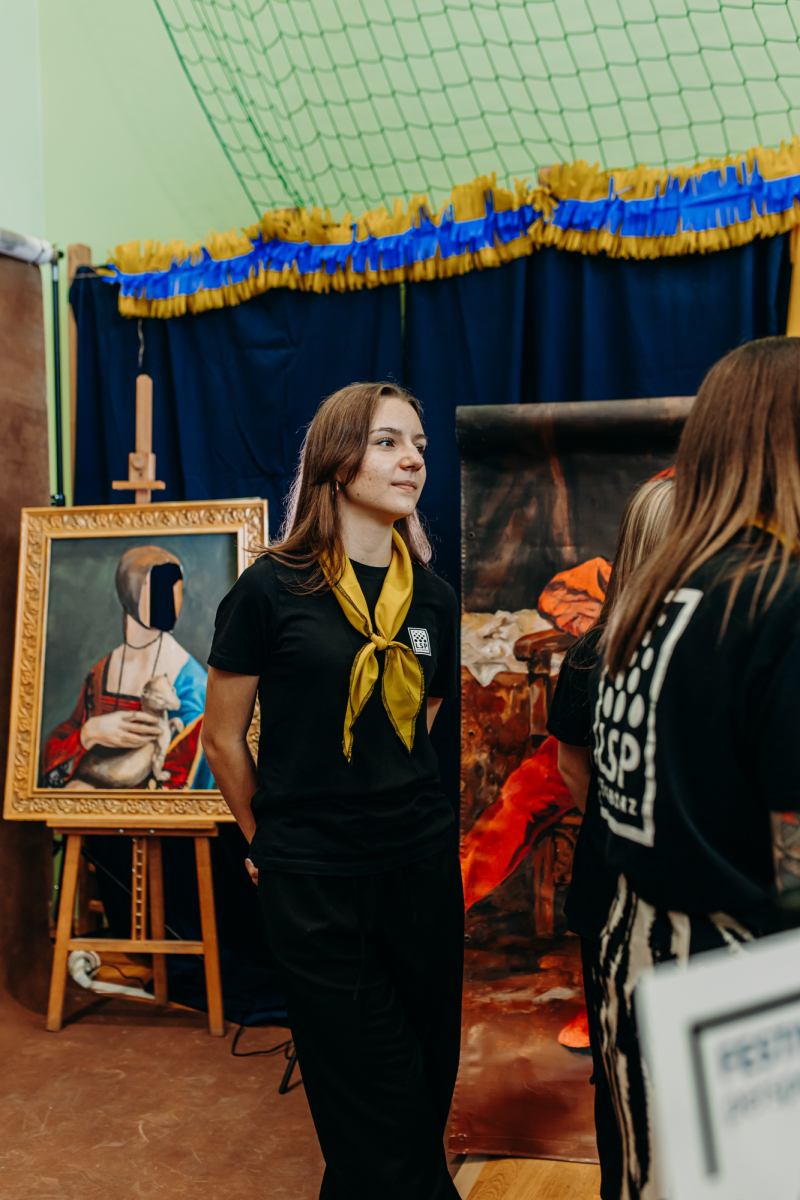 Podczas tegorocznego Festiwalu Perspektyw nasi uczniowie i nauczyciele zaprosili uczestników do świata sztuki — można było wziąć udział w mini warsztatach graficznych i własnoręcznie wykonać linoryt, zrobić sobie artystyczne zdjęcie w foto-budce lub z szablonami znanych obrazów, takich jak Dama z łasiczką czy Stańczyk.