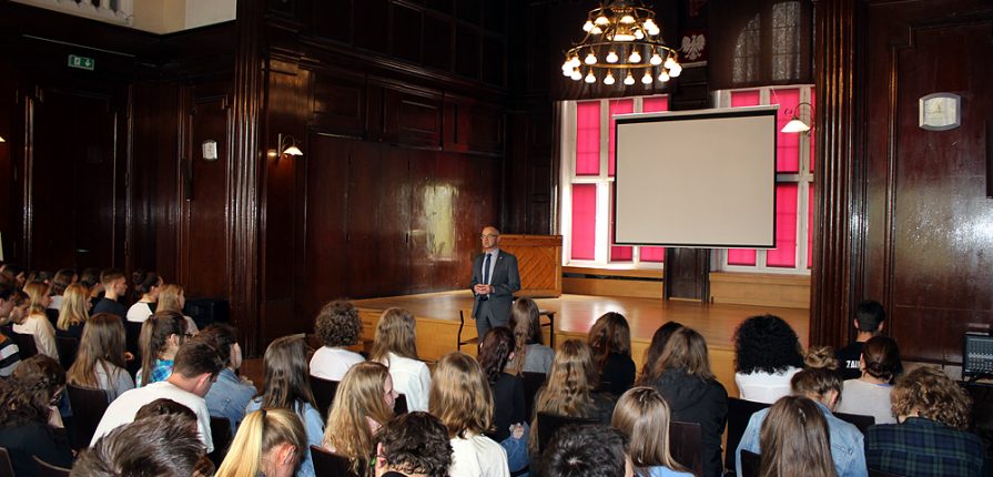 W poniedziałek 16 kwietnia odbyło się spotkanie klas maturalnych z wicestarostą Panem Markiem Kurpisem. Opowiadał on zgromadzonym na auli uczniom o pracy samorządowców, roli powiatu, możliwościach czekających na absolwentów liceum w Raciborzu. Wicestarosta odpowiedział na wszystkie pytania maturzystów zainteresowanych konkretnymi drogami kształceni. Pan Kurpis wytłumaczył, co studiować by zaistnieć na dzisiejszym rynku pracy. Zachęcał do związania swojej przyszłości z miastem Racibórz, które coraz bardziej otwiera się na młodych ludzi. Na zakończenie wicestarosta poprosił uczniów o wypełnienie ankiet dotyczących przyszłych wyborów kształcenia.