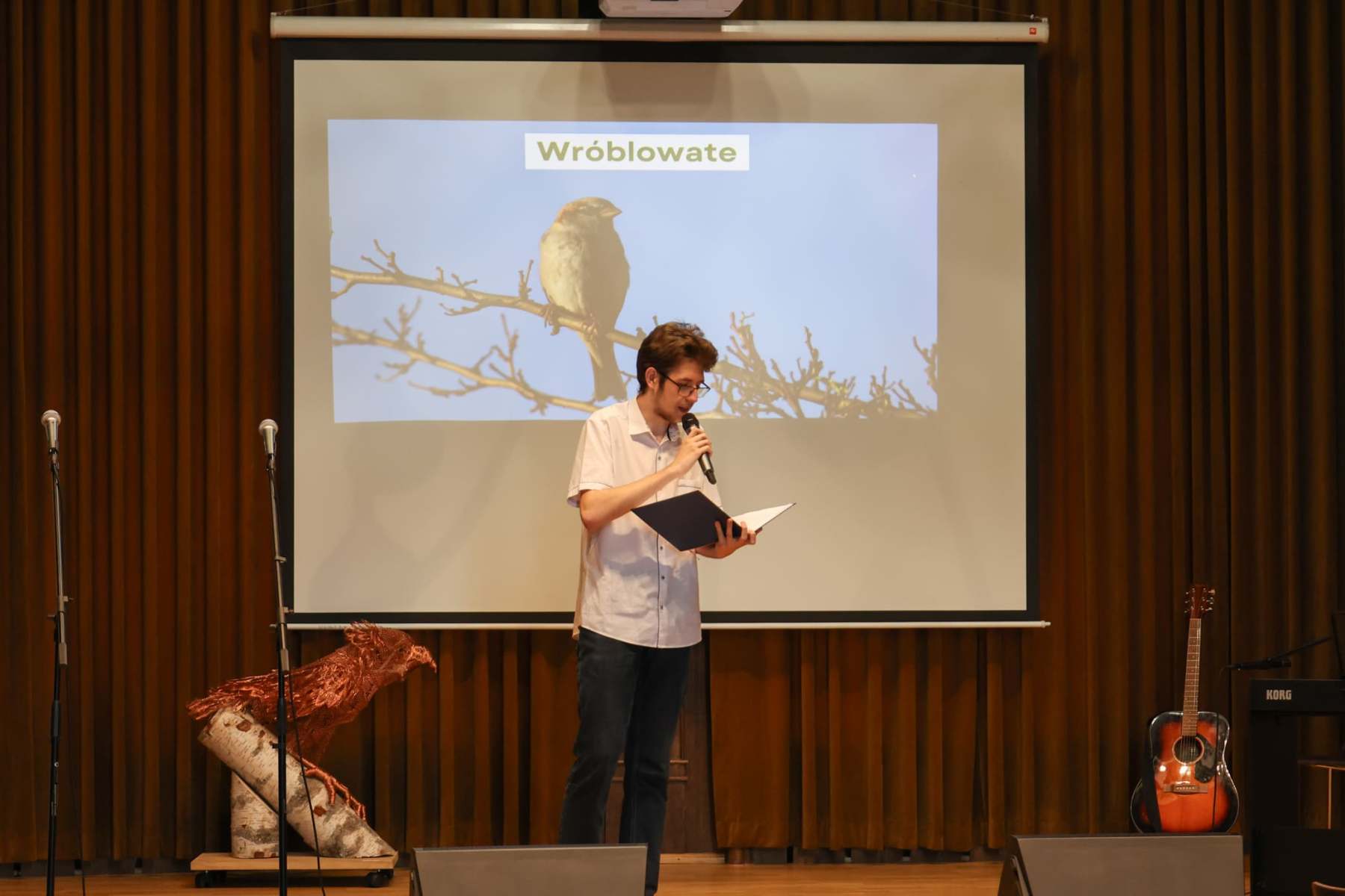 • Szczególną uwagę zwrócił głos młodzieży – prezentacja poświęcona ptakom regionu, będąca świadectwem pasji łączącej wiedzę z wrażliwością. Sławomir Jakubus, uczeń klasy matematyczno-fizycznej, przygotował prezentacje, w której przybliżył lokalne gatunki ptaków, udowadniając, że badawcza dociekliwość nie tylko harmonijnie współistnieje z artystyczną wrażliwością, ale także wzajemnie się uzupełnia.