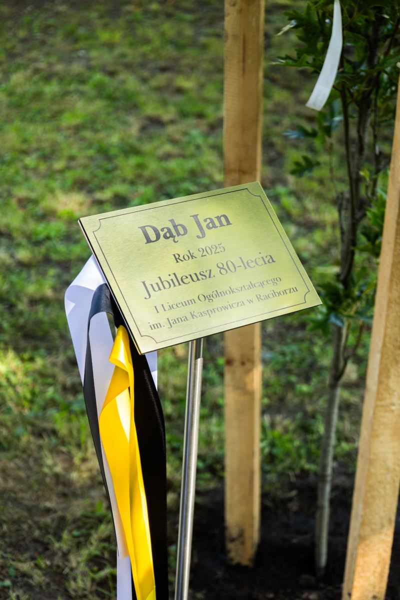 W przeddzień rocznicy powołania szkoły, przypadającej na 15 czerwca, w szkolnym ogrodzie zasadzono Dąb Jubileuszowy. Drzewo otrzymało imię Jan, które nawiązuje zarówno do patrona szkoły, jak i do idei długowieczności oraz zakorzenienia. Aktu posadzenia dokonali: Etatowy Członek Zarządu Powiatu Raciborskiego Marek Kurpis, dyrektor szkoły Marzena Kacprowicz oraz Danuta Solich z Zarządu Stowarzyszenia Absolwentów i Przyjaciół I LO – podkreślając tym samym trwałość więzi łączących kolejne pokolenia społeczności „Kasprowicza”.