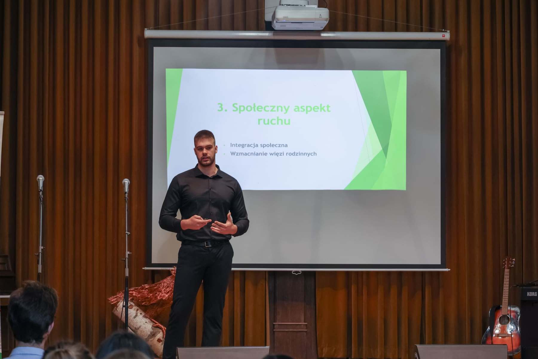 • Karol Staniewicz, student Akademii Nauk Stosowanych w Raciborzu i trener personalny, w prezentacji przygotowanej pod kierunkiem dr Anieszki Kosmol-Żok z Instytutu Kultury Fizycznej i Zdrowia, przedstawił znaczenie aktywności fizycznej w kontekście zdrowia człowieka. Zachęcał młodych ludzi do regularnego ruchu, szczególnie w naturalnym otoczeniu, podkreślając jego dobroczynny wpływ nie tylko na ciało, ale i na równowagę psychiczną.
