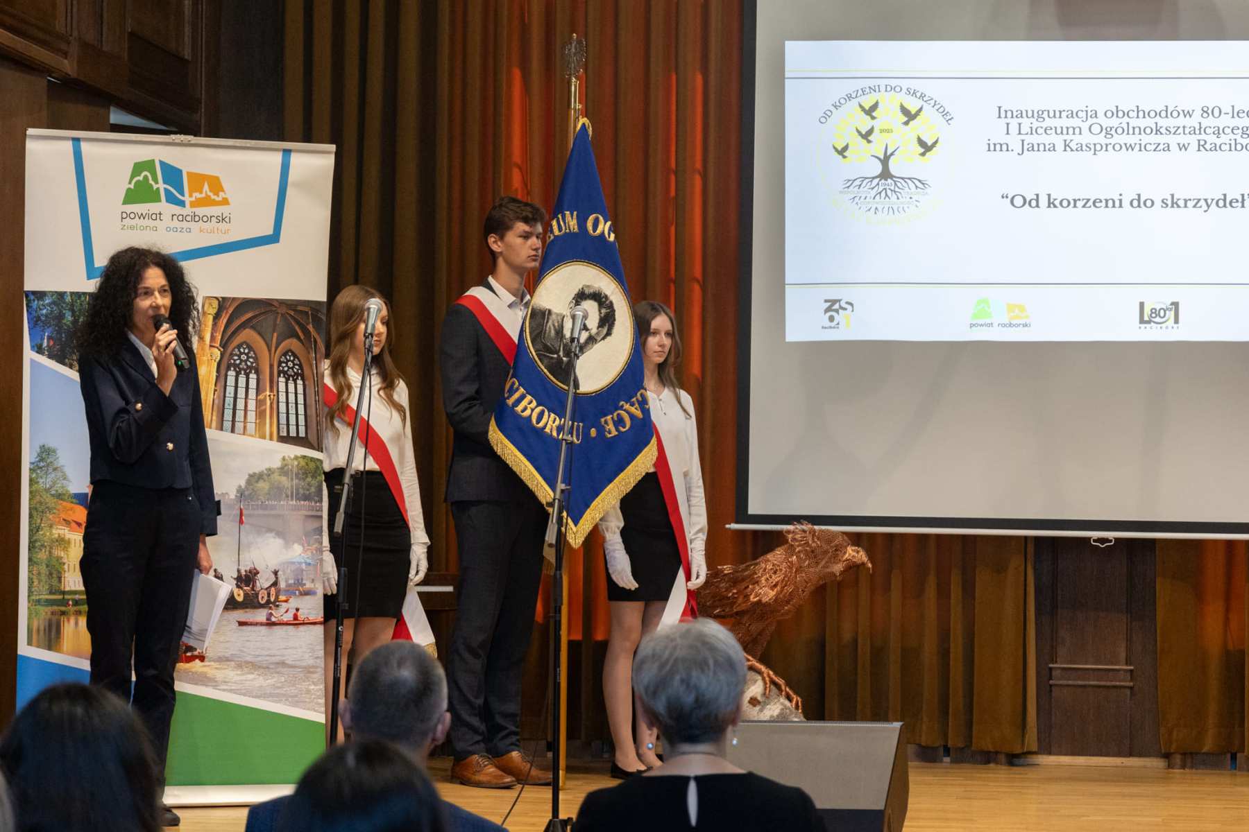 Marek Kurpis, Etatowy Członek Zarządu Powiatu Raciborskiego, zwrócił uwagę na szczególną rolę, jaką „Kasprowicz” odgrywa w przestrzeni miasta – zarówno jako instytucja z bogatym dorobkiem, jak i miejsce kształtowania kolejnych pokoleń. Podkreślił, że jubileusz szkoły wpisuje się w szerszy kontekst tegorocznych obchodów rocznic innych placówek edukacyjnych, co dodaje mu dodatkowego znaczenia i czyni częścią regionalnego święta. W duchu przewodniego hasła „Od korzeni do skrzydeł”, złożył w imieniu władz samorządowych życzenia nieustannego rozwoju i licznych sukcesów całej społeczności liceum.