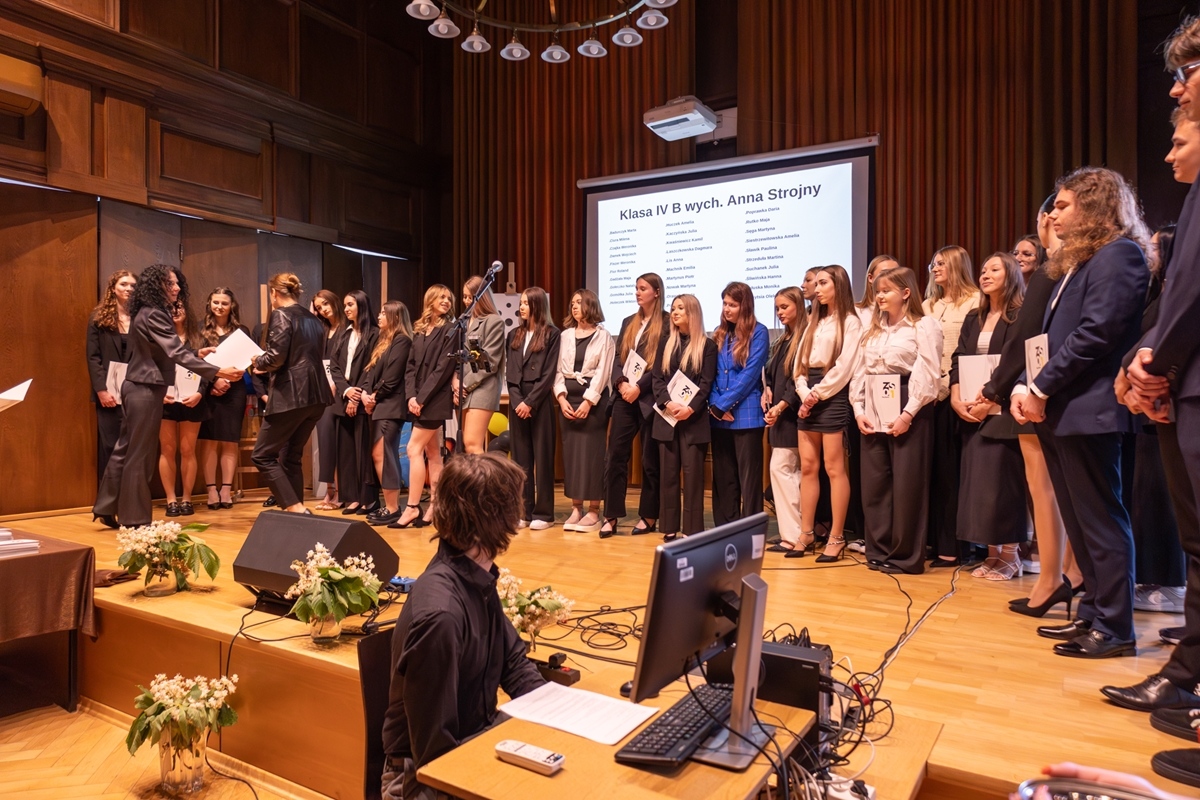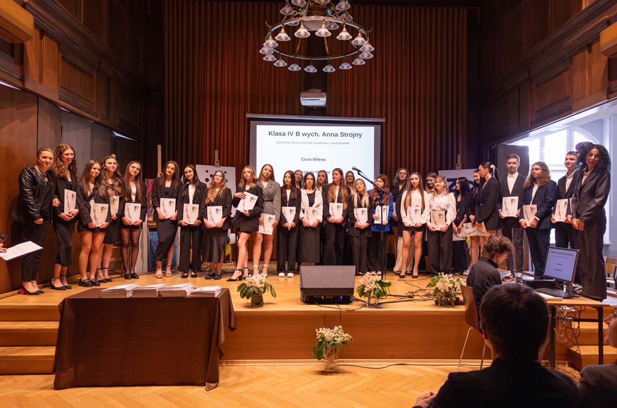 Doroczna uroczystość wręczenia świadectw odbyła się w pięknej auli szkolnej.