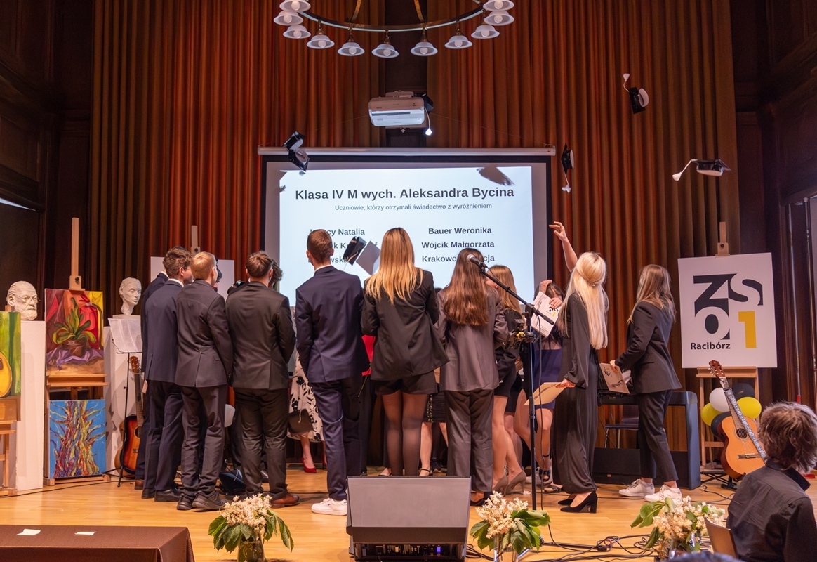 Uczniowie klas I Liceum Ogólnokształcącego – klasy: 4H – wych. p. Anna Leśniak – Stęc, 4M – wych. p. Aleksandra Bycina, 4J – wych. p. Andrzej Widota, 4B – wych. p. Anna Strojny oraz Liceum Sztuk Plastycznych 5LSP – wych. p. Katarzyna Kwiotek – Ostapowicz – w obecności zaproszonych gości, przedstawicieli Starostwa Powiatu Raciborskiego, rodziców i nauczycieli otrzymali upragnione świadectwa ukończenia szkoły średniej.
