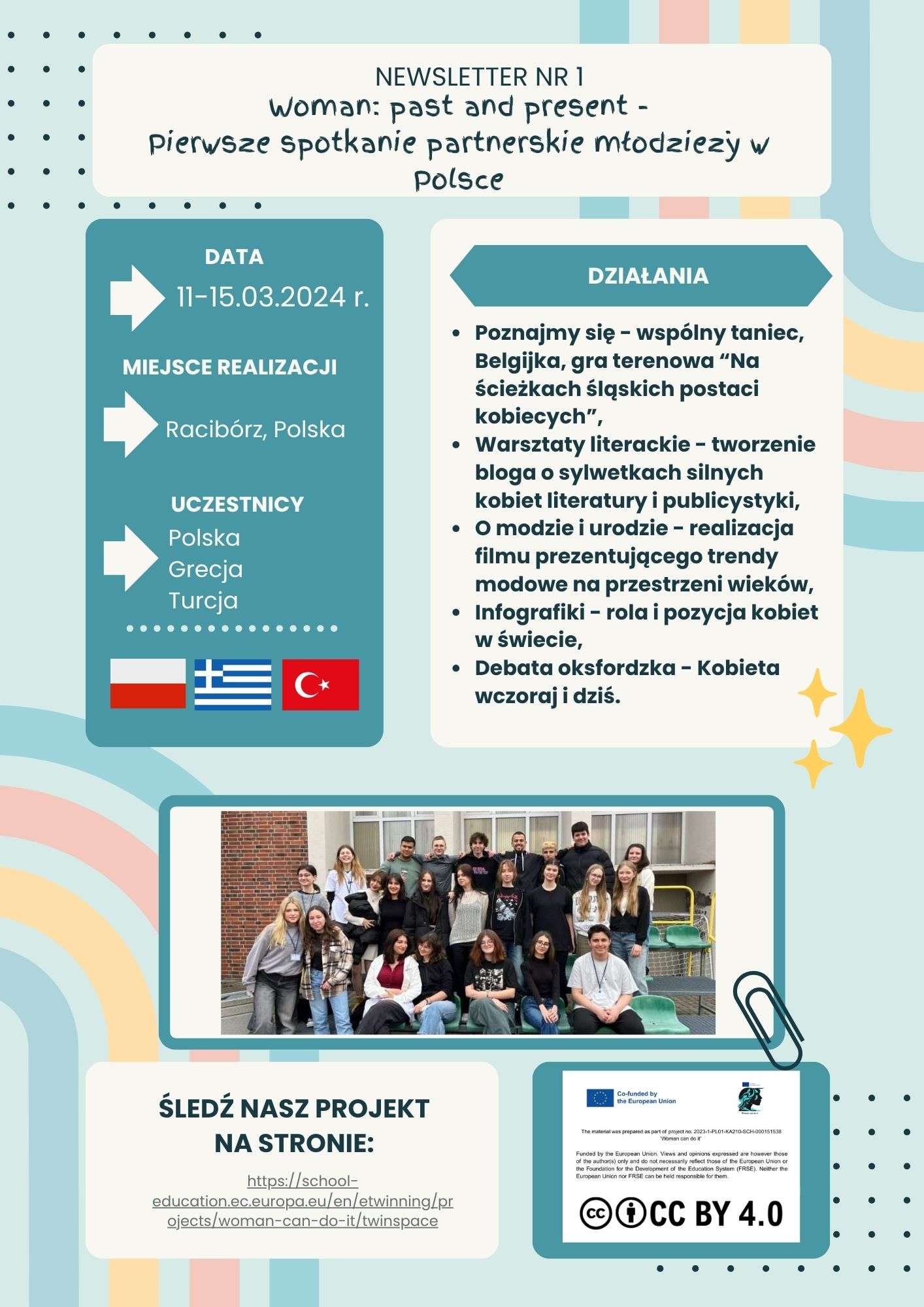 Projekt “Woman can do it” jest realizowany przez ZSO nr 1 w Raciborzu w ramach programu Erasmus+, sektor Edukacja szkolna, akcja 2 Współpraca organizacji i instytucji – Partnerstwa na małą skalę (KA210) w okresie 01.09.2023 – 30.06.2025 r.