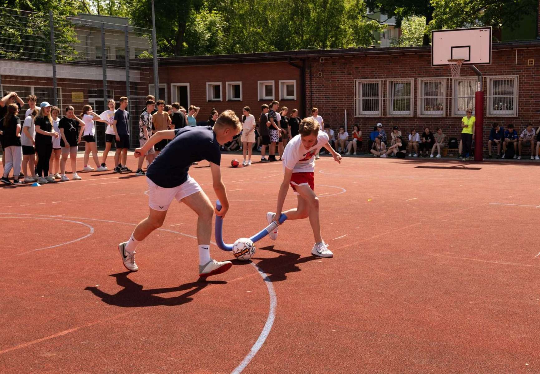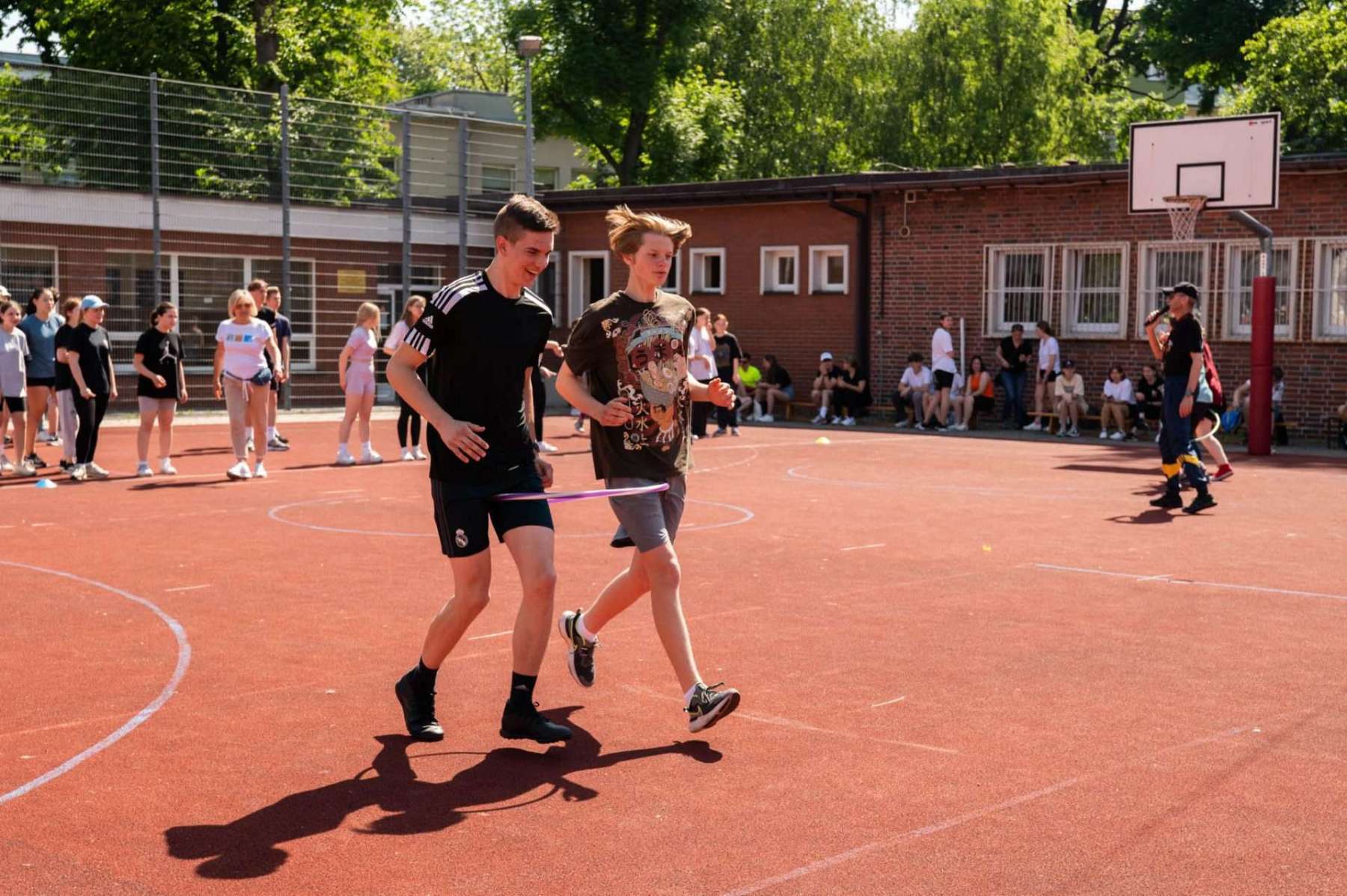 Czwartkowy poranek na Kasprowicza w Raciborzu był szczególnie gorący i radosny. Czerwcowe słońce bardzo dobrze wpisało się w kolorową zabawę z okazji Dnia Dziecka. Tego dnia zarówno młodzież z naszego liceum, jak i dzieciaki z SP4 mogli odczuć, że dzieciństwo to stan, który trzeba w sobie pielęgnować całe życie.