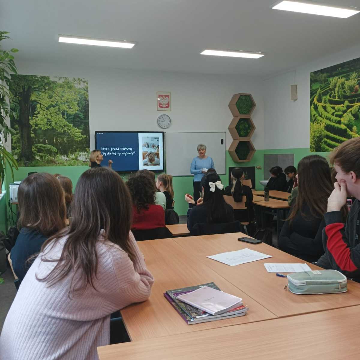Absolwentka spotkała się z maturzystami, żeby przeprowadzić z nimi warsztaty związane z technikami radzenia sobie ze stresem egzaminacyjnym.
