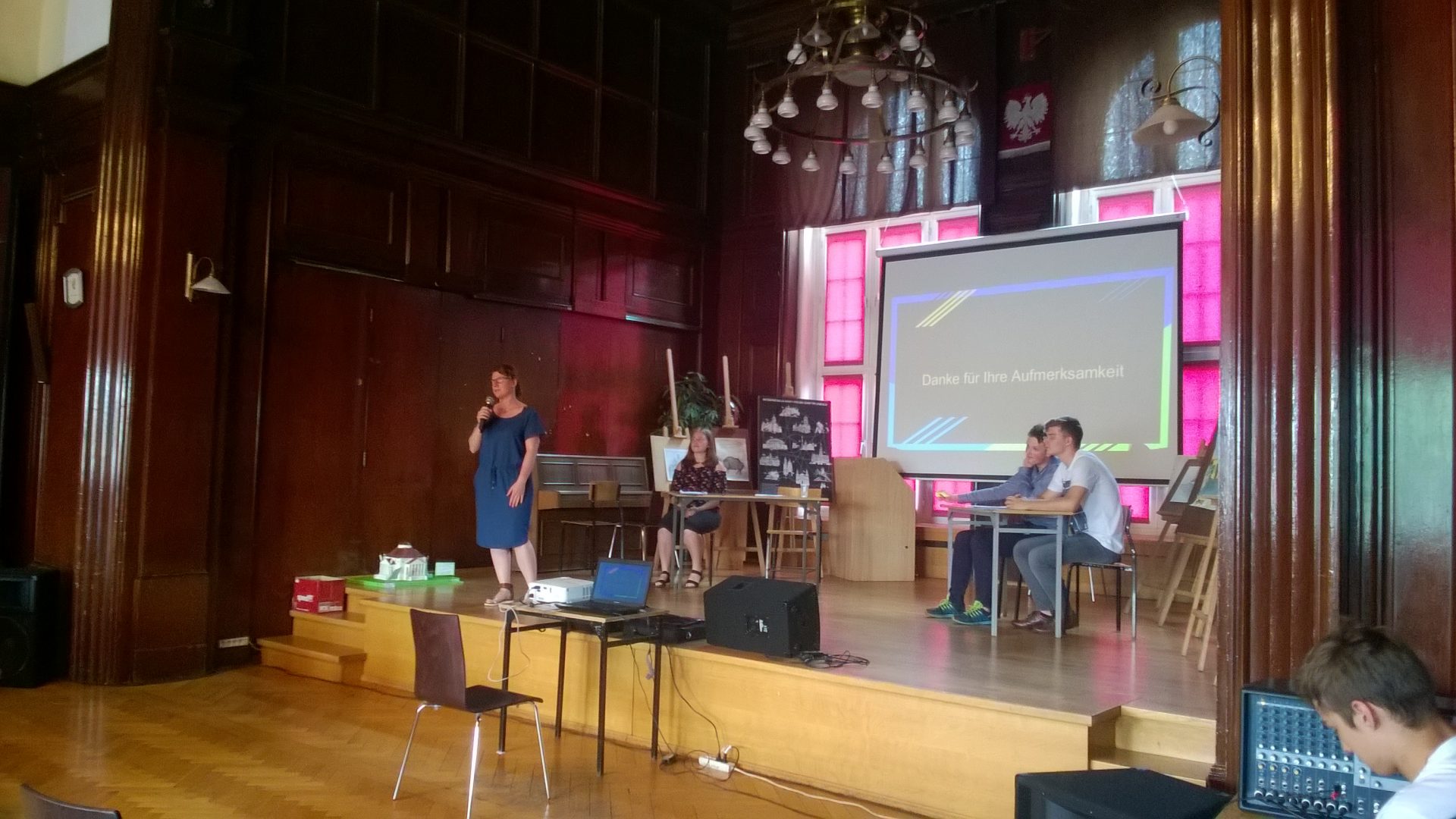 5 czerwca 2018 r. uczniowie ZSO nr 1 w Raciborzu spotkali się z nauczycielką z Niemiec, panią Niną Diehl. Młodzież przedstawiła krótką prezentację na temat nauki i historii języka niemieckiego w naszej szkole na przestrzeni lat. Uczestnicy spotkania rozmawiali na temat stereotypów, różnic i podobieństw kulturowych Polaków i Niemców. Nina Diehl opowiedziała o swoich obawach, wyobrażeniach i doświadczeniach związanych z pobytem oraz pracą zawodową w Polsce.