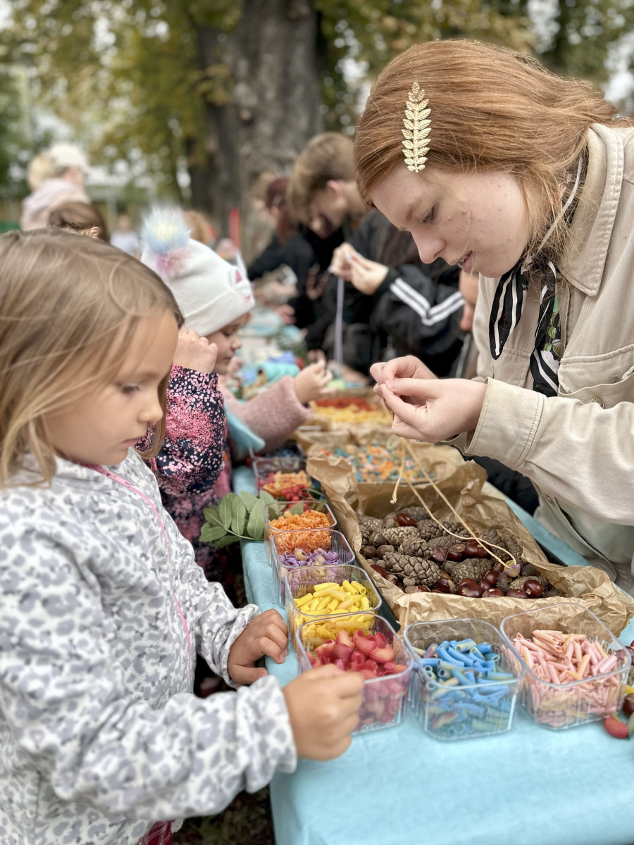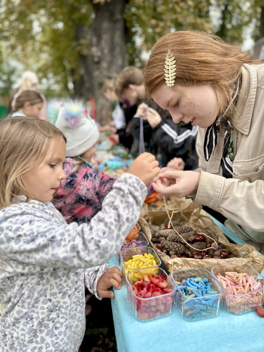 Dzieci mogły dać upust swojej wyobraźni, tworząc mini jesienne kompozycje – zwierzątka i roślinność w ciepłych barwach jesieni, z wykorzystaniem naturalnych materiałów. Ogromnym zainteresowaniem cieszyło się także wykonywanie kolorowej biżuterii z szyszek, żołędzi, kasztanów i makaronu.