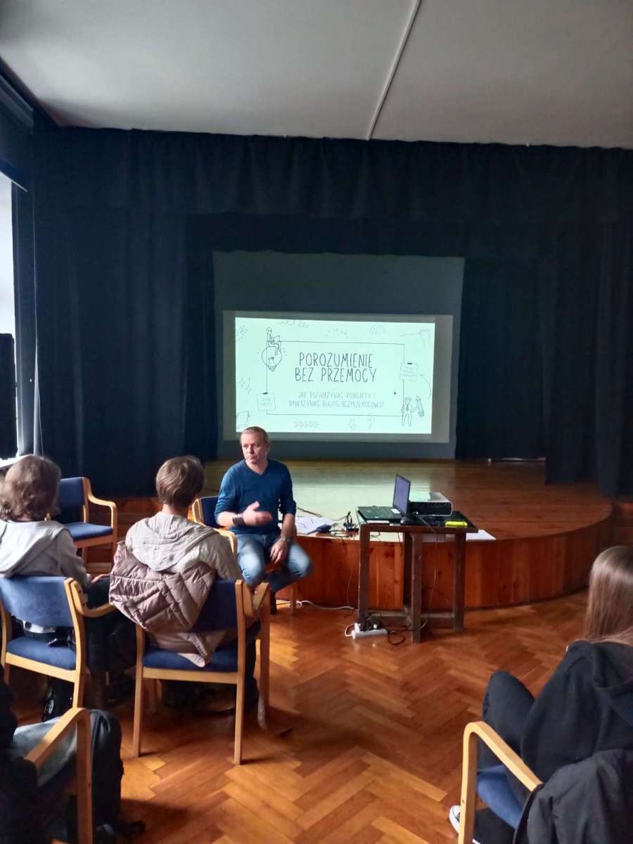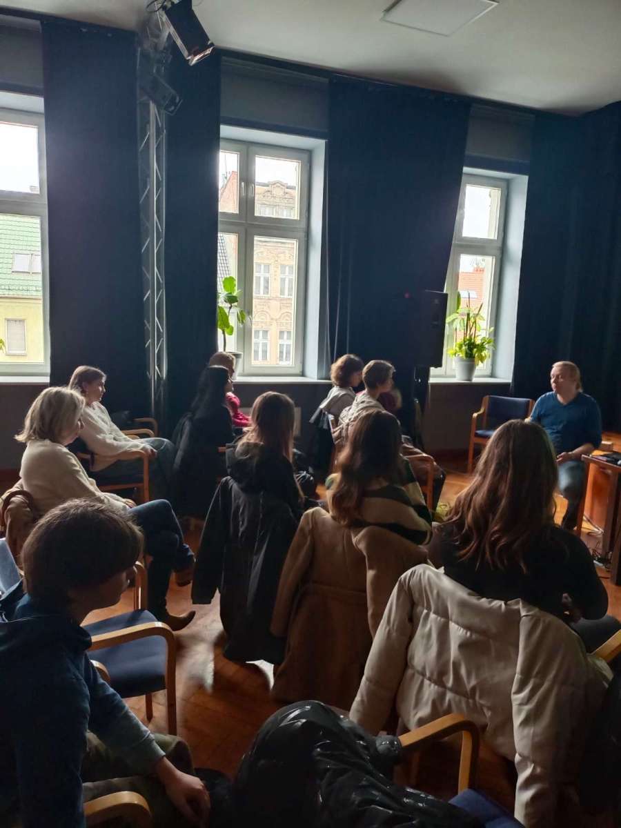 W ramach projektu Teatr Polska, który realizowany jest w Raciborskim Centrum Kultury, w dniu 20 listopada br., uczniowie klas 1LSP, 2J, 2HB i 3B obejrzeli spektakl ,,Symulator” w wykonaniu Białostockiego Teatru Lalek. Po spektaklu grupa uczniów z klasy 2H uczestniczyła w warsztatach pt. ,,Teatr jako wehikuł – zagadnienie przemocy w relacjach społecznych”.