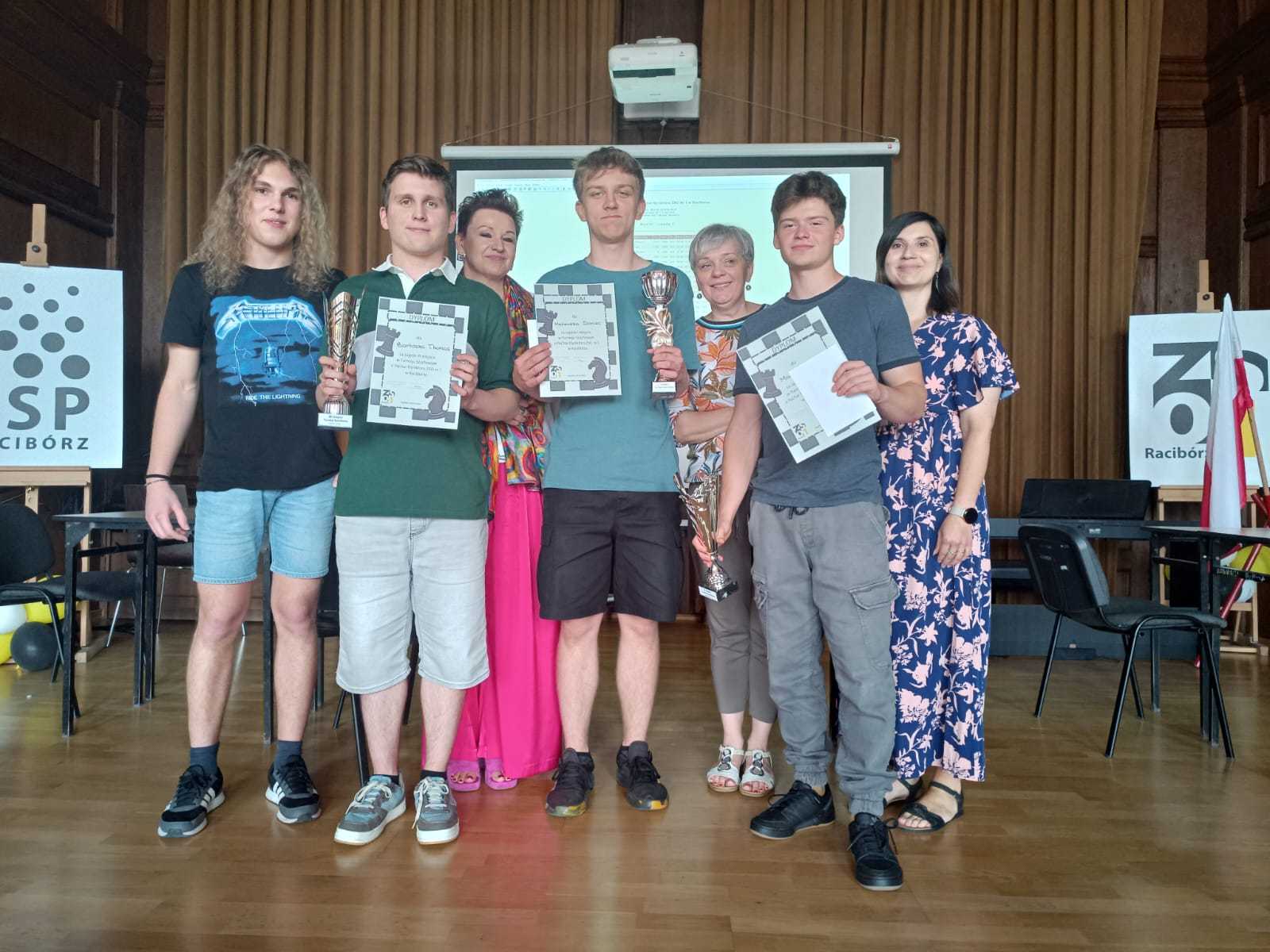 Gra w szachy nie należy do łatwych. Wymaga opracowania strategii, które trzeba modyfikować na bieżąco, ciągłego podejmowania decyzji, a także systematyczności. Angażuje jednocześnie często przeciwstawne umiejętności intelektualne po to, żeby zaplanować zwycięską taktykę. Rozwija umysł i wyobraźnię, i być może właśnie dlatego, zdobywa coraz większe rzesze zwolenników wśród dzieci i młodzieży. Dowodem na to był Turniej Szachowy o Puchar Dyrektora ZSO nr 1 w Raciborzu, który odbył się 28 maja 2024 roku w auli naszej szkoły, wzięło w nim udział 50 uczniów. Gościliśmy przedstawicieli Zespołu Szkół Ekonomicznych w Raciborzu, Centrum Kształcenia Zawodowego i Ustawicznego nr 1 w Raciborzu, II LO im. Adama Mickiewicza w Raciborzu, Centrum Kształcenia Zawodowego i Ustawicznego nr 2 ,,Mechanik” oraz uczniów klas siódmych i ósmych ZSP nr 1 i ZSP nr 3 w Raciborzu. Na podium stanęli: I miejsce – Mateusz Doniec uczeń ZSO nr 1 w Raciborzu, II miejsce – Marek Grab uczeń ZSO nr 1 w Raciborzu, III miejsce – Bartosz Thomas uczeń II LO w Raciborzu. Gratulujemy zwycięzcom oraz wszystkim uczestnikom!!!
