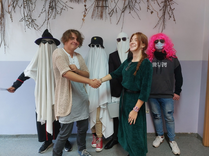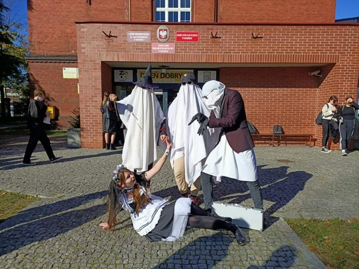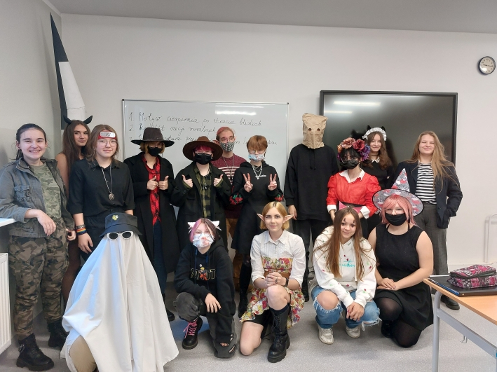 29 października w naszej szkole odbyło się upiorne Halloween zorganizowane przez Samorząd Uczniowski. Na pamiątkę wykonano zdjęcia klasowe osób przebranych. Zwieńczeniem dnia było zaproszenie wszystkich osób biorących udział w zabawie do grupowego zdjęcia. Dziękujemy za miło spędzony dzień i kreatywność w wymyślaniu strojów.