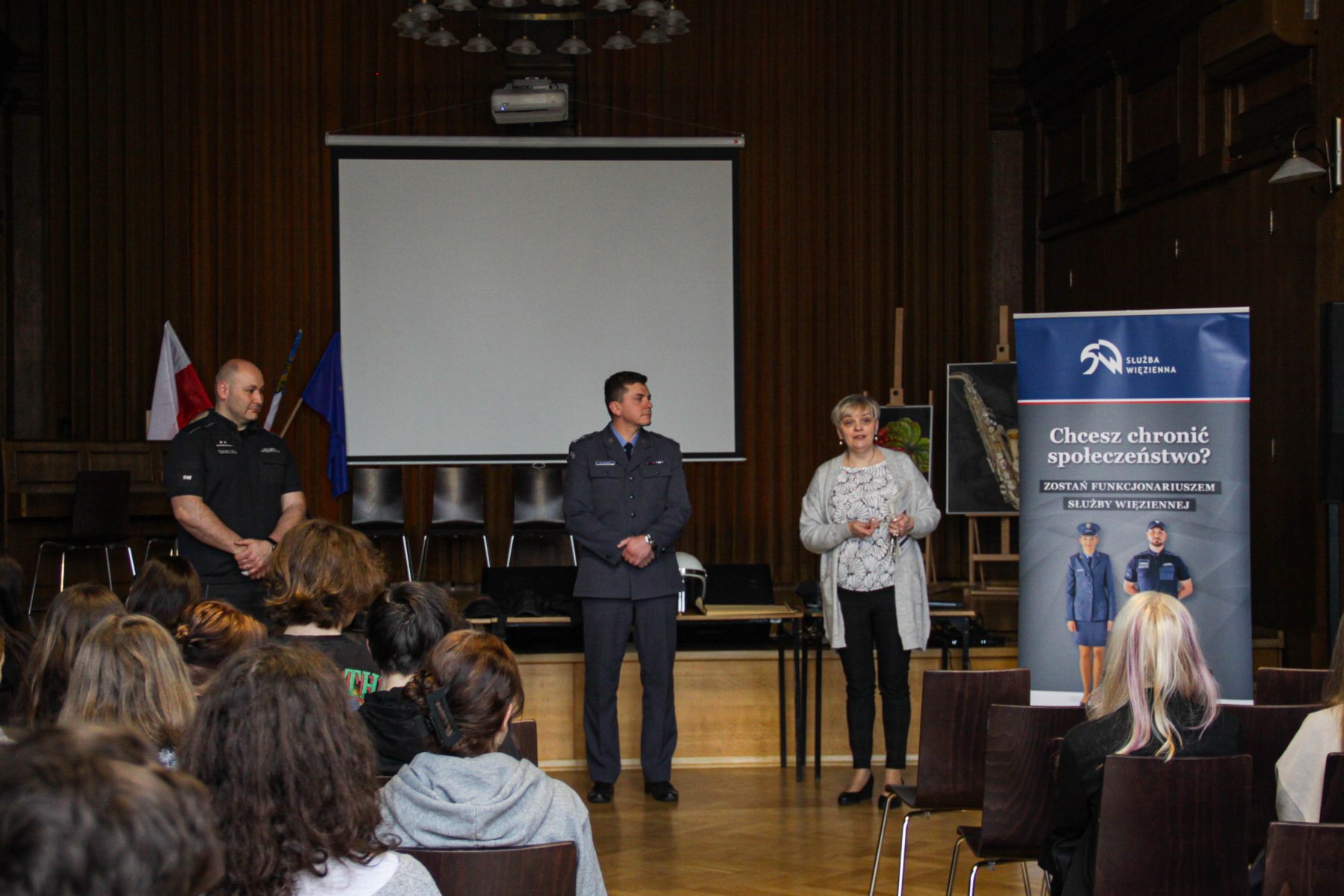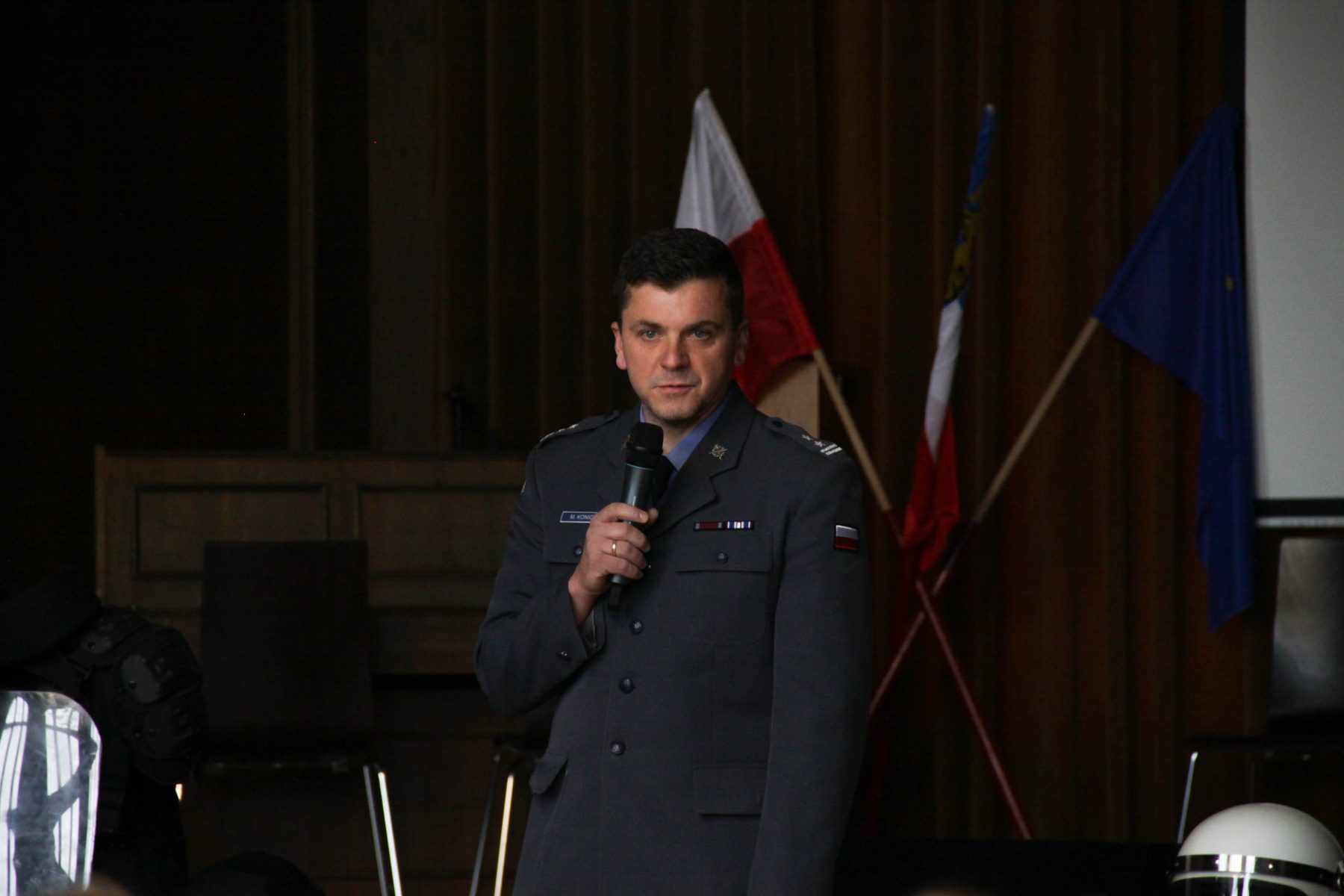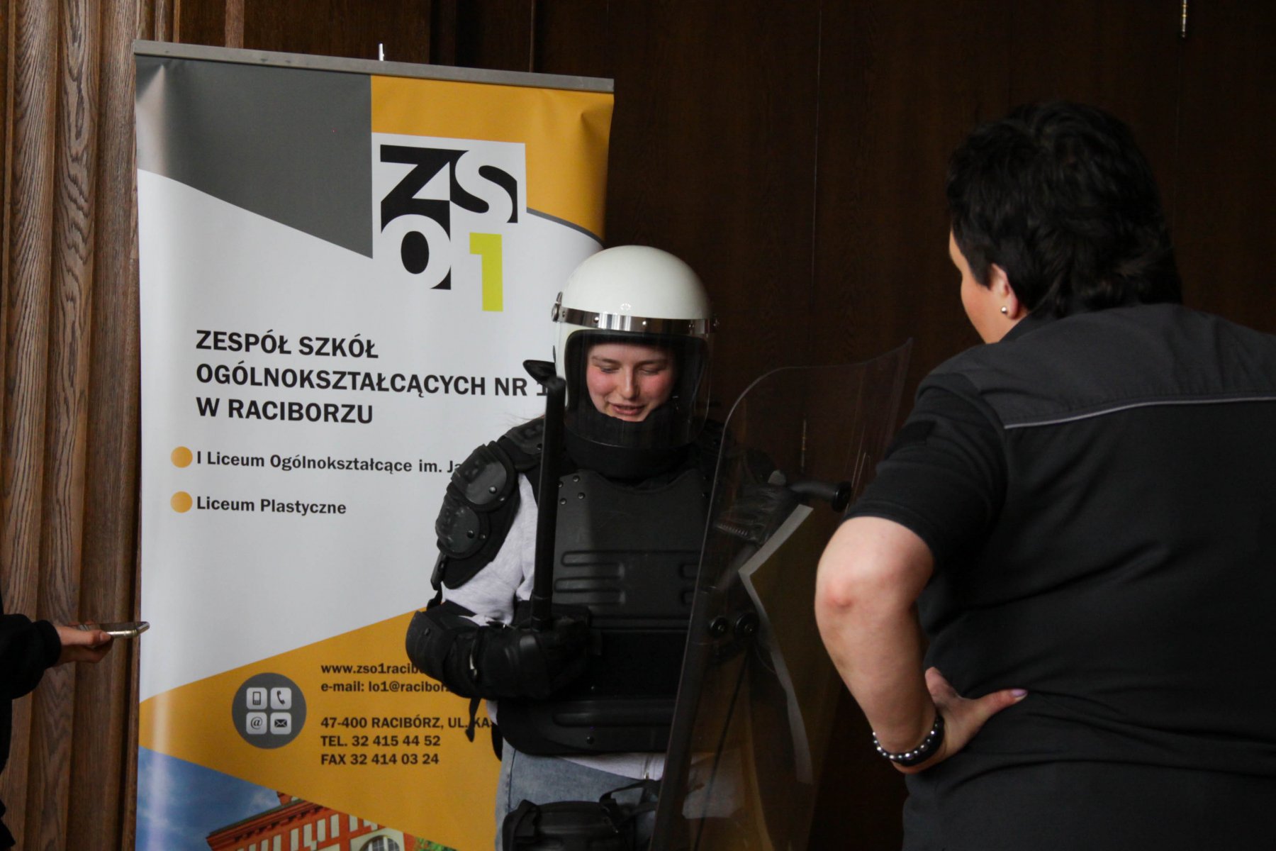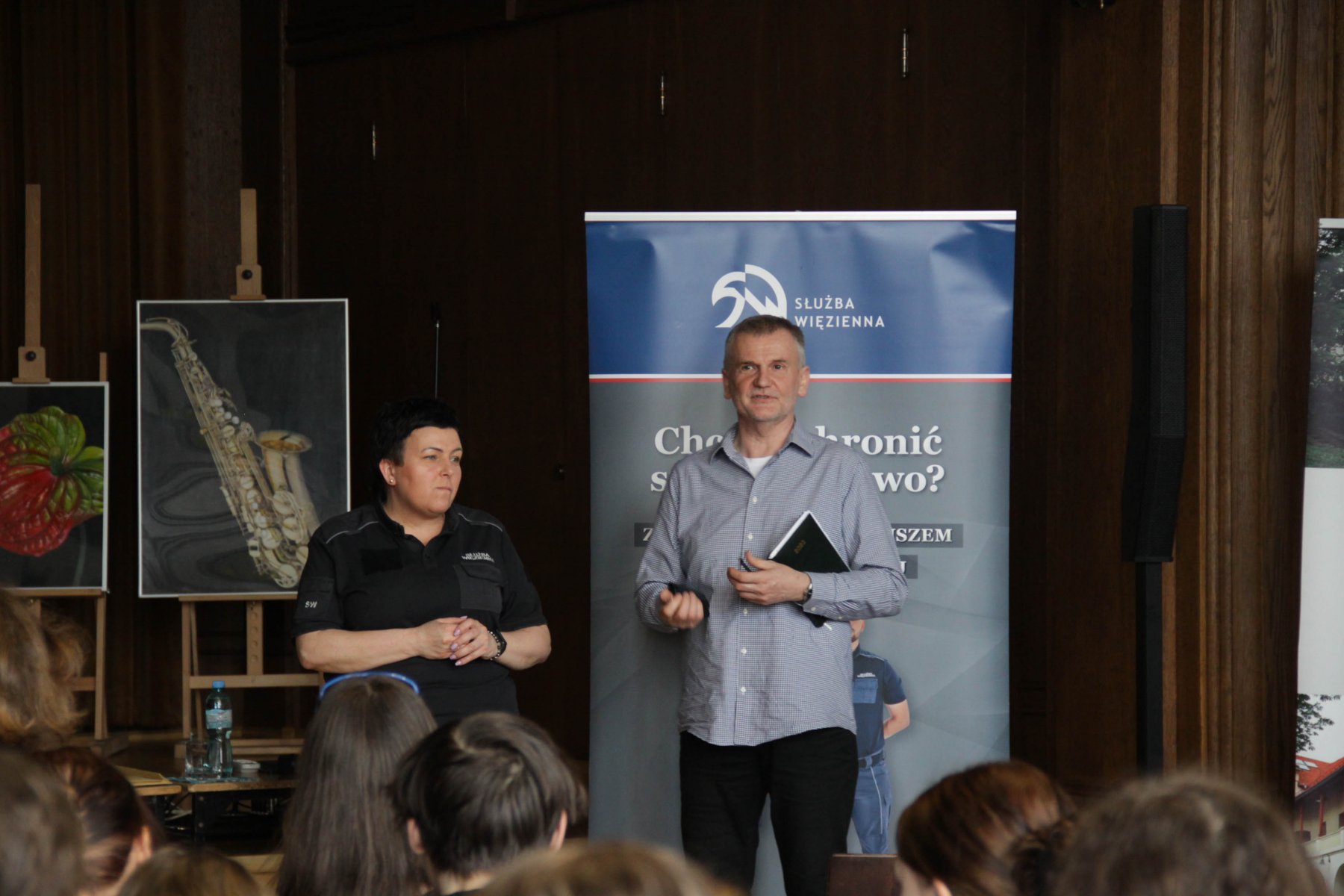 Dzisiaj 17 kwietnia 2023 r. gościliśmy pana Macieja Koniora dyrektora Okręgowej Służby Więziennej w Katowicach. Pan Konior bardzo ciekawie opowiadał o swojej pracy, zaprezentował różne akcesoria potrzebne w służbach mundurowych. Uczniowie mieli okazję założyć ochraniacze, kajdanki, kaski. Była to wciągająca zabawa, ale i nauka.