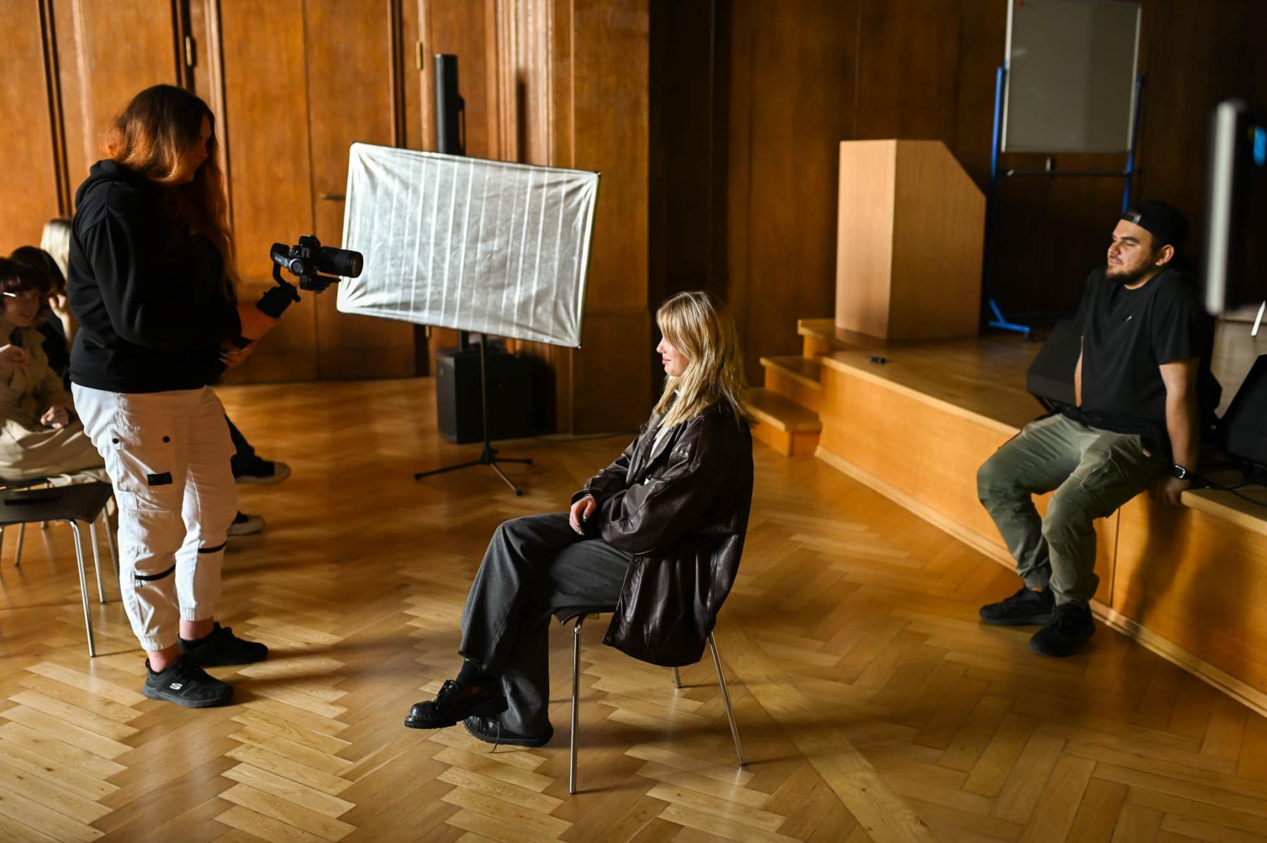 Uczestnicy warsztatów, podczas praktycznych ćwiczeń, dowiedzieli się jak od podstaw zrealizować swój własny film, jak przygotować oświetlenie pod wywiad, w jaki sposób wykorzystać sprzęt i jego możliwości. Przybliżone zostały m.in. pojęcia kolor korekcji, oświetlenia low i high key oraz nocy amerykańskiej. Dla uczniów zostało przygotowane też zadanie praktyczne.