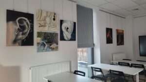 Druga część wystawy prezentowana jest w “Stacji Młodych” na dworcu PKP w Raciborzu, gdzie oglądać można wybrane prace z rysunku i malarstwa.