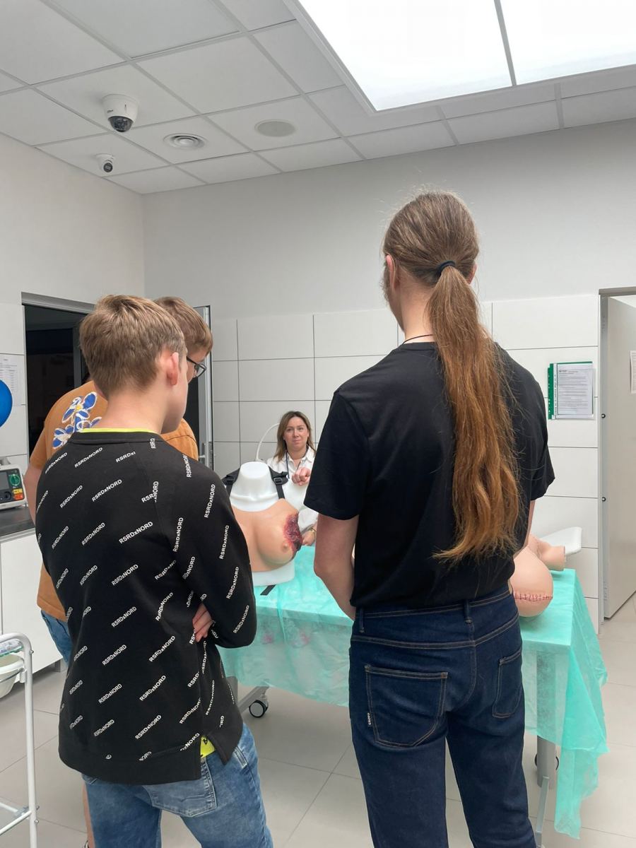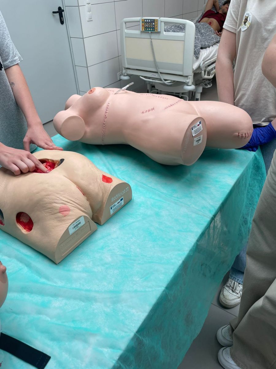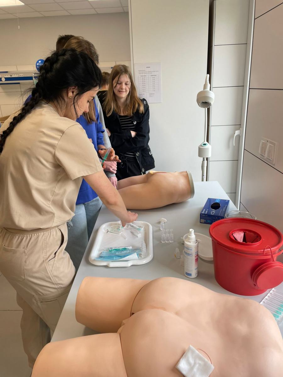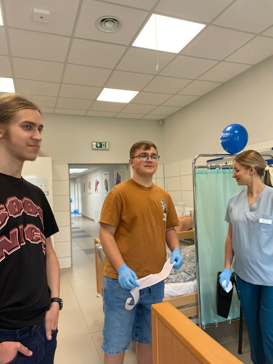 W dniu 10 maja 2024 roku uczniowie klasy 1BM uczestniczyli w warsztatach zorganizowanych przez studentów kierunku Pielęgniarstwo na ANS w Raciborzu. Zajęcia odbyły się w Monoprofilowym Centrum Symulacji Medycznej. Młodzież poznała jak czynności i procedury, które wcześniej studenci ćwiczyli na sobie lub na pacjentach, teraz można przeprowadzać w warunkach wiernej symulacji na maszynach. Urządzenia i fantomy są bowiem w stanie odwzorować zmieniające się procesy życiowe człowieka. Warsztaty miały na celu zapoznać uczniów z pracą pielęgniarza czy pielęgniarki, a także zachęcić do studiowania na ANS w Raciborzu.