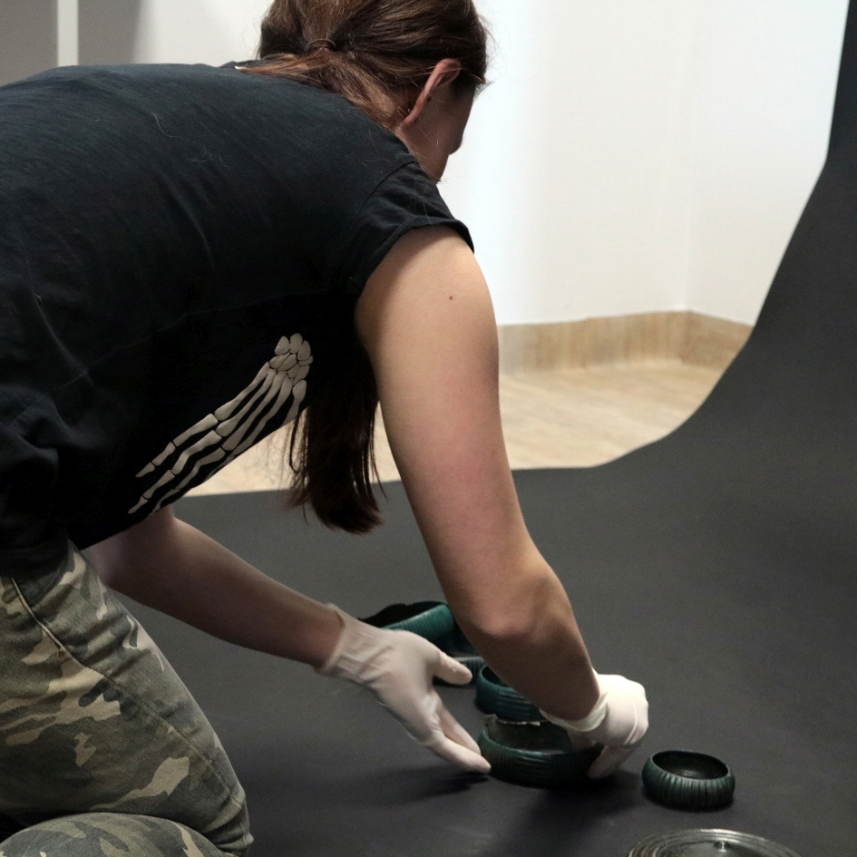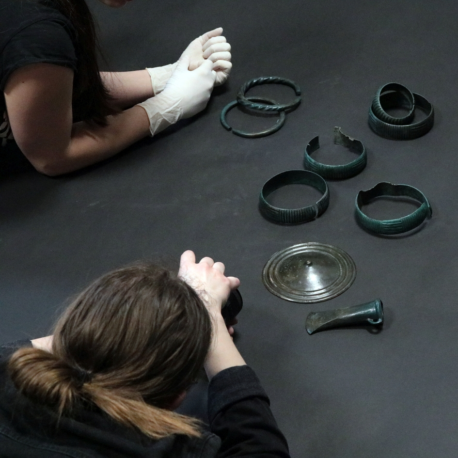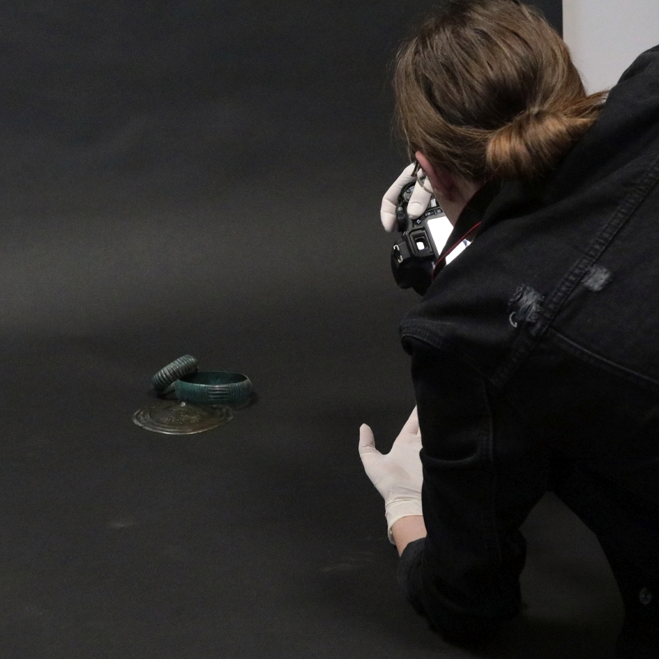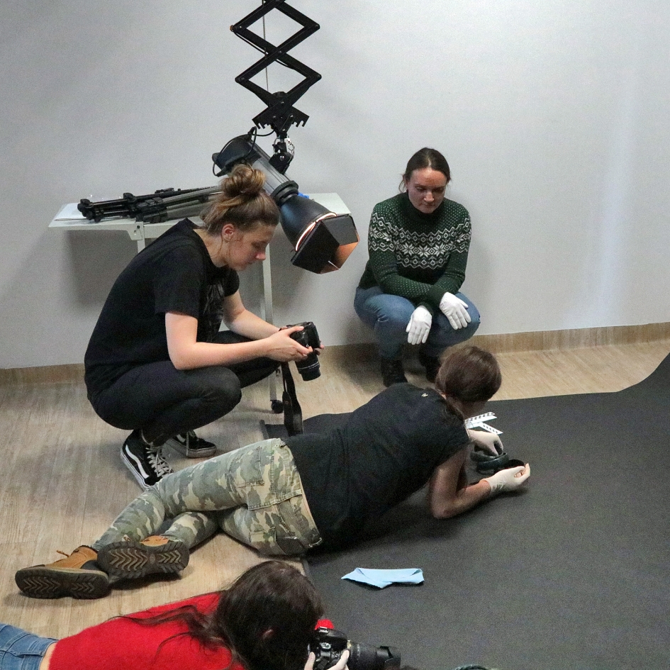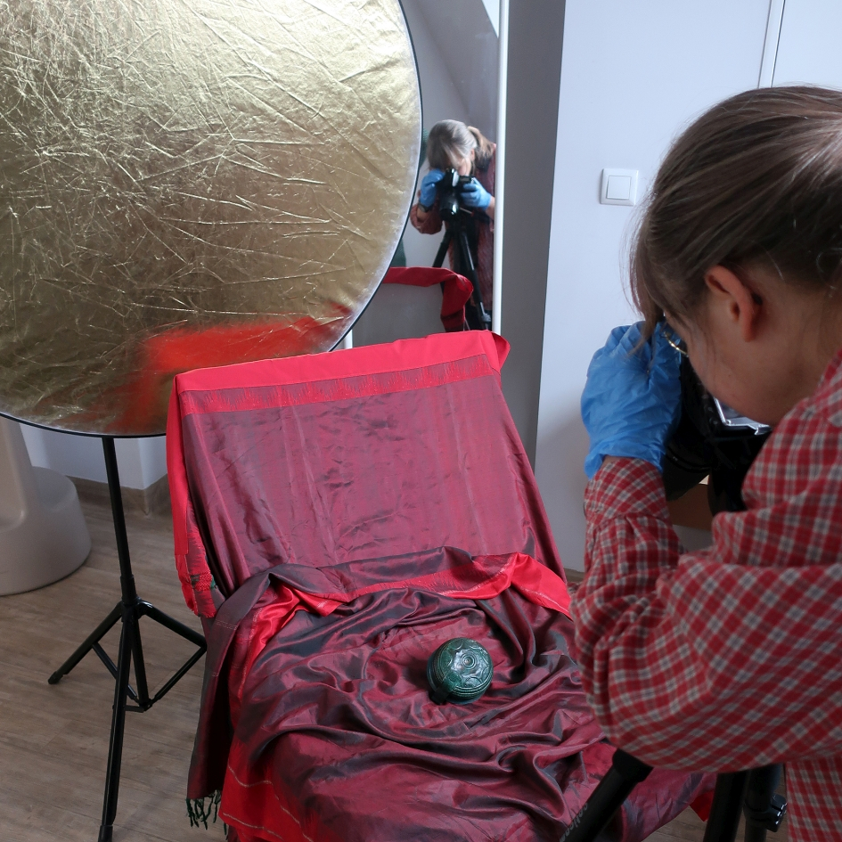 Warsztaty fotograficzne poprzedziła krótka prelekcja z pokazem zabytków, którą przygotowała i przedstawiła młodzieży Pani archeolog oraz instruktaż dotyczący założeń formalnych podczas wykonywania tego typu dokumentacji. Następnie przystąpiono do realizacji zdjęć cennych eksponatów biorąc pod uwagę wytyczne naukowo-techniczne, jak również stosując indywidualne podejście artystyczne. W skład depozytu wchodziło 10 przedmiotów wykonanych ze stopu miedzi:
