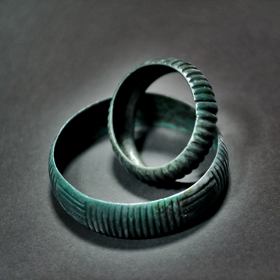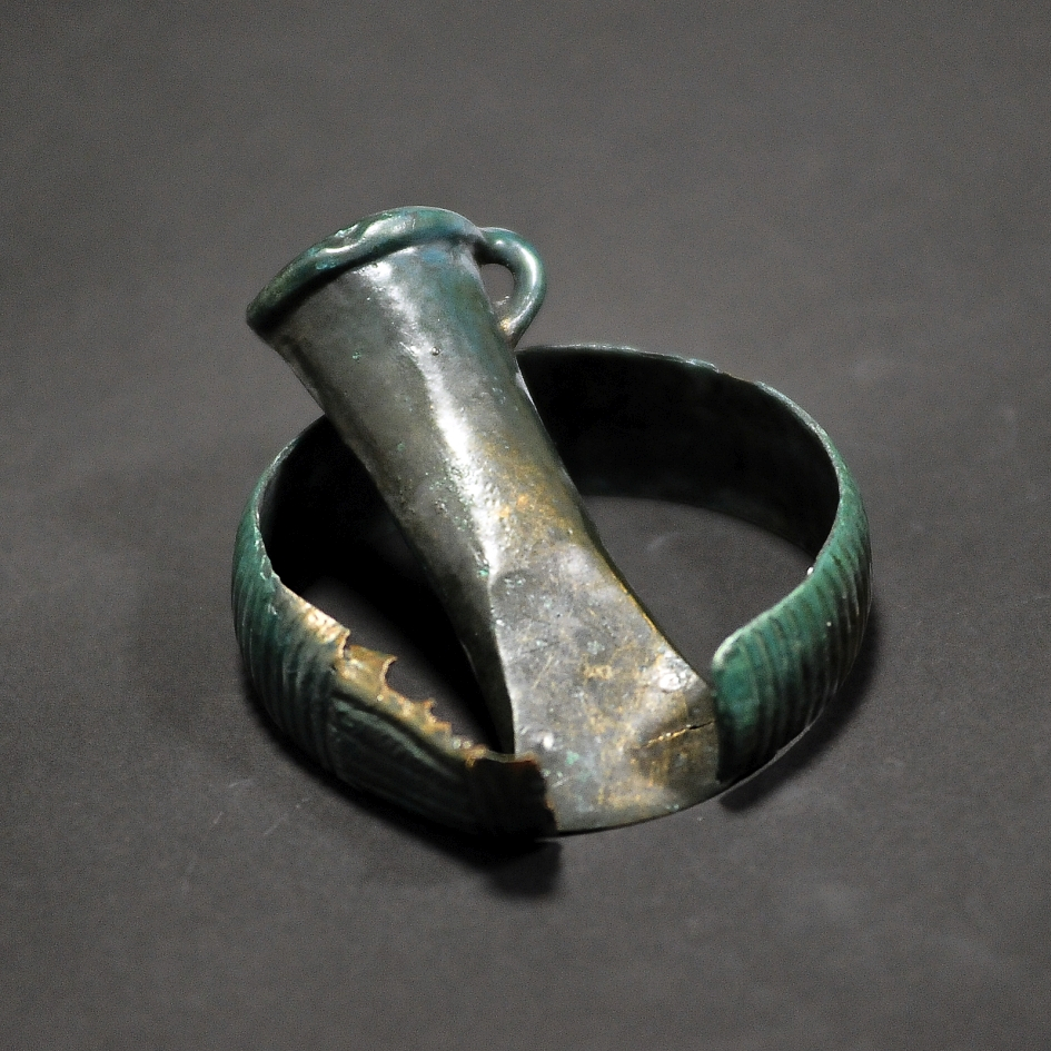 4. bransoleta z taśmy, zdobiona poprzecznymi żłobkami,