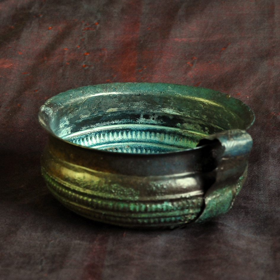 1. czarka z taśmowatym uszkiem, bogata ornamentowana, m.in. motywem siedmioramiennej gwiazdy na dnie,
