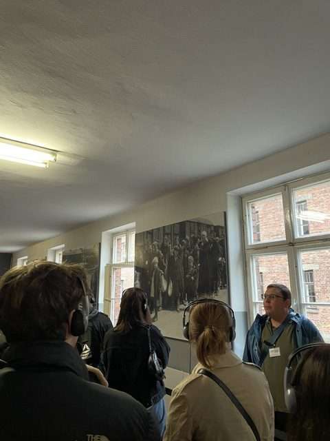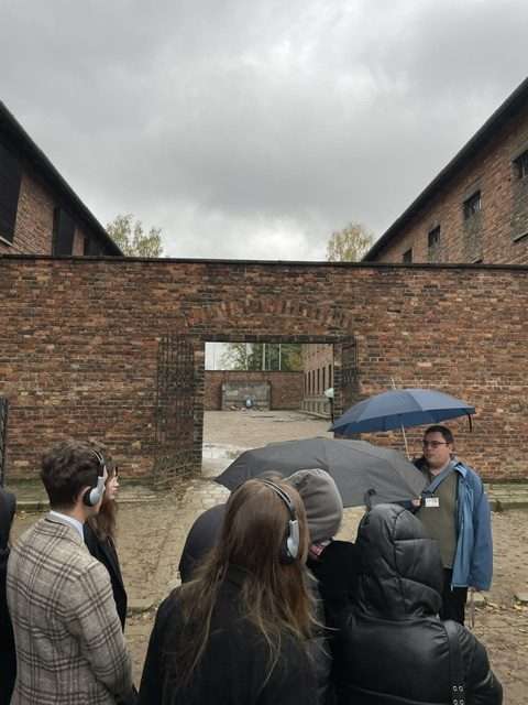 25 października 2023 roku odbył się wyjazd do Oświęcimia i pobliskiej miejscowości Brzezinki, w których część klasy 4H i 4J, pod opieką pana Bogdana Depty i pana Piotra Michalaka, miała możliwość zwiedzić Auschwitz-Birkenau – zespół niemieckich obozów koncentracyjnych, działających w trakcie II Wojny Światowej. Uczniowie rozpoczęli zwiedzanie od obozu w Oświęcimiu, gdzie mieli okazję dowiedzieć się, jakie panowały tam warunki, zobaczyć wykonane przez nazistów fotografie z tego miejsca oraz zachowane do dziś w masowych ilościach rzeczy osobiste (np. podpisane walizki, okulary, garnki). Następnie przeszli w podziemiach obok celi więziennych, m. in. celi głodowej św. ojca Maksymiliana Marii Kolbego. Na sam koniec zapalili znicz przy Ścianie Śmierci, gdzie rozstrzeliwano więźniów, oddając tym samym hołd zmarłym i w ciszy przeszli przez jedyną, niezniszczoną komorę gazową wraz z krematorium. Po zwiedzaniu KL Auschwitz udali się do KL Birkenau, gdzie rozpoczęli trasę od przejścia po rampie, na której stał jeden z wagonów, jakimi zwożono ludność do obozu. Zobaczyli Międzynarodowy Pomnik Ofiar Obozu Auschwitz-Birkenau. Zaraz obok ujrzeli ruiny, zniszczonych przed wyzwoleniem, komór gazowych i weszli do jednego z baraków kobiecych. Ten wyjazd skłonił uczniów do głębokich refleksji nad przyczynami ludobójstwa i zbrodni przeciwko ludzkości, jednocześnie nakierował na przemyślenia odnośnie sposobów zapobiegania owych sytuacji.