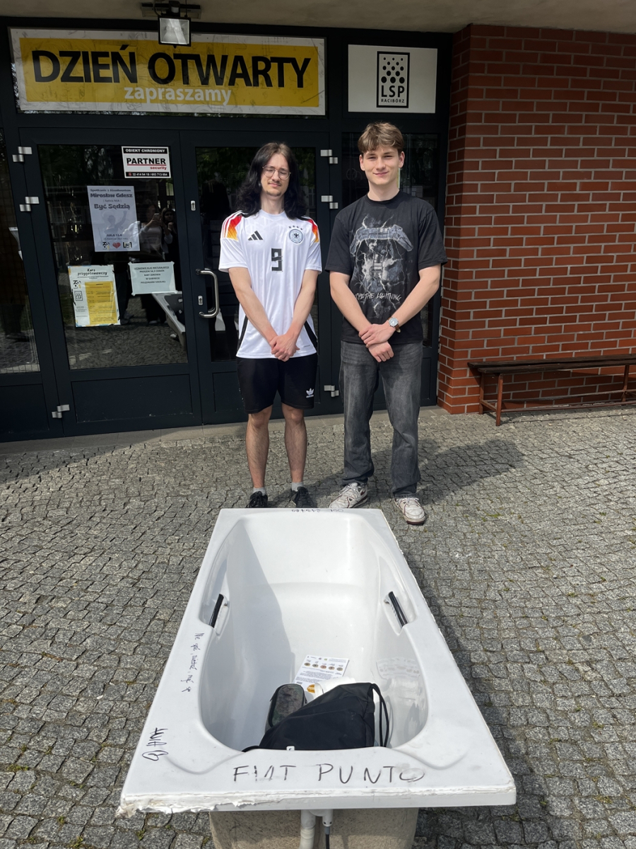 24 kwietnia w naszej szkole odbył się zorganizowany przez SU Dzień bez plecaka. Zamiast tradycyjnych tornistrów uczniowie przynieśli książki w przeróżnych rzeczach – od walizek, skrzynek i koszyków, po wózki sklepowe, transportery dla zwierząt, a nawet… wannę. Kreatywność uczestników nie miała granic i wywołała wiele uśmiechów wśród całej społeczności szkolnej.