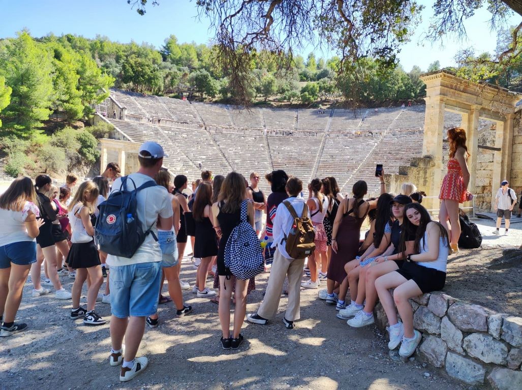 W dniach 16-23 września 50 uczniów naszej szkoły wraz z opiekunami uczestniczyło w 8-dniowej wycieczce do Grecji. Pilotem wycieczki był pan Janusz, który sprawnie przeprowadzał autokar przez kolejne kontrole graniczne i potrafił ciekawie i z humorem opowiadać o tym co było warto wiedzieć. Jako że była to impreza objazdowa, sporo czasu trzeba było spędzić w autokarze, ale dzięki temu udało się zobaczyć najciekawsze miejsca tego kraju.  Na północy, razem z przewodniczką, panią Anią, uczniowie zwiedzili stanowisko archeologiczne w Verginie (wraz z grobowcem Filipa II Macedońskiego)  a także spacerowali po Salonikach; w środkowej części kraju odwiedzili Meteory, zespół prawosławnych monasterów (klasztorów). Skarby antyku na Peloponezie pokazała pani Olimpia. Kulminacją wycieczki była wizyta na Akropolu, ale oprócz tego w programie znalazły się  ruiny antycznego Koryntu i Myken wraz z Grobem Agamemnona, teatr w Epidauros oraz krótki postój pod Termopilami, miejscem sławnej bitwy króla Leonidasa i jego Spartan. Oprócz tego uczniowie podziwiali arcydzieło XIX-wiecznej inżynierii, czyli Kanał Koryncki oraz mieli okazję   poczuć wakacyjnego ducha w kurortach Nafplio i Paralia a w Lutraki udało im się zanurzyć w Morzu Jońskim. Rzecz jasna, nie obyło się bez przygód i niespodzianek, ale mimo to ( a może właśnie dzięki temu) wycieczka na długo zostanie w pamięci jej uczestników.