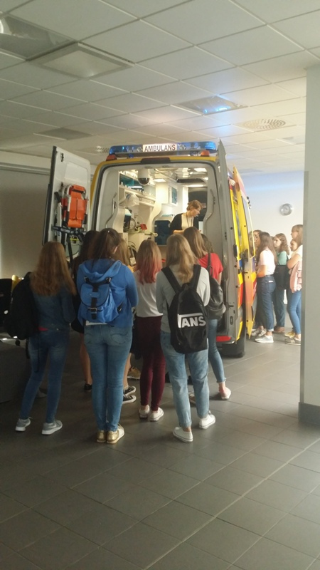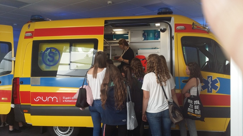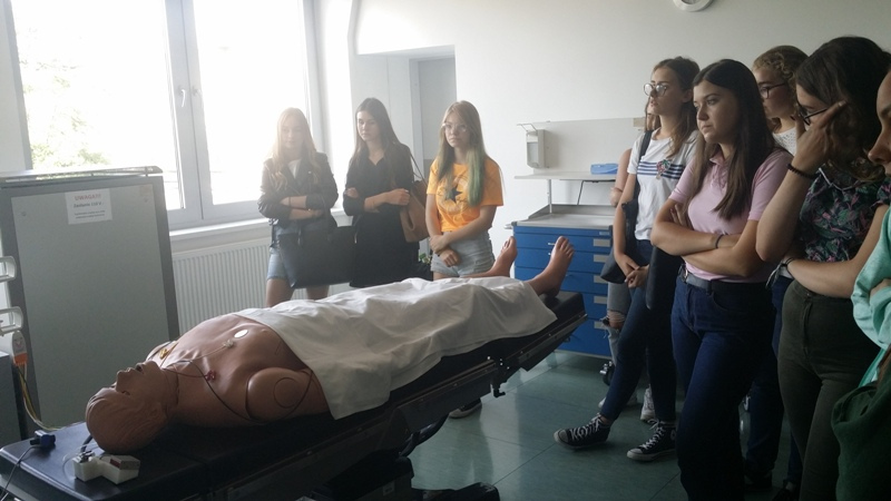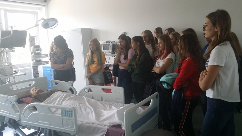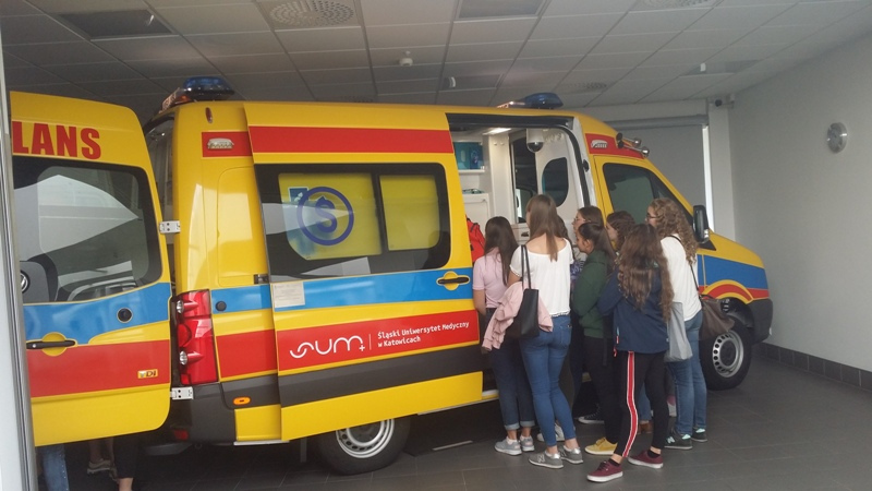 W dniu 18 września uczniowie klasy o profilu medycznym odwiedzili niesamowite Centrum Dydaktyki i Symulacji Medycznej na Śląskim Uniwersytecie Medycznym w Katowicach. Infrastruktura Centrum umożliwia odtworzenie warunków pracy prawdziwego szpitala. Do dyspozycji studentów jest prawdziwy ambulans wyposażony zgodnie z obecnymi standardami. Oddział SOR odtworzony w placówce zawiera 4 w pełni wyposażone stanowiska intensywnego nadzoru. Utworzono w nim również sale porodową, pediatryczną, intensywnej terapii oraz blok operacyjny. Na każdej z sal znajduje się autentyczny sprzęt medyczny oraz wyspecjalizowany symulator (m.in. kobiety rodzącej, dziecka i niemowlęcia oraz osoby dorosłej). Posiadają one liczne funkcje, od najbardziej oczywistych, jak unoszeni się klatki piersiowej podczas oddychania czy reagowanie źrenic na światło, aż po możliwość pocenia się, łzawienia i krwawienia. Zobaczyliśmy na własne oczy, że zajęcia prowadzone metodą symulacji medycznej przyczyniają się do zmian w sposobie uczenia się, jak również wpływają na zmianę zachowania uczących się tam osób.